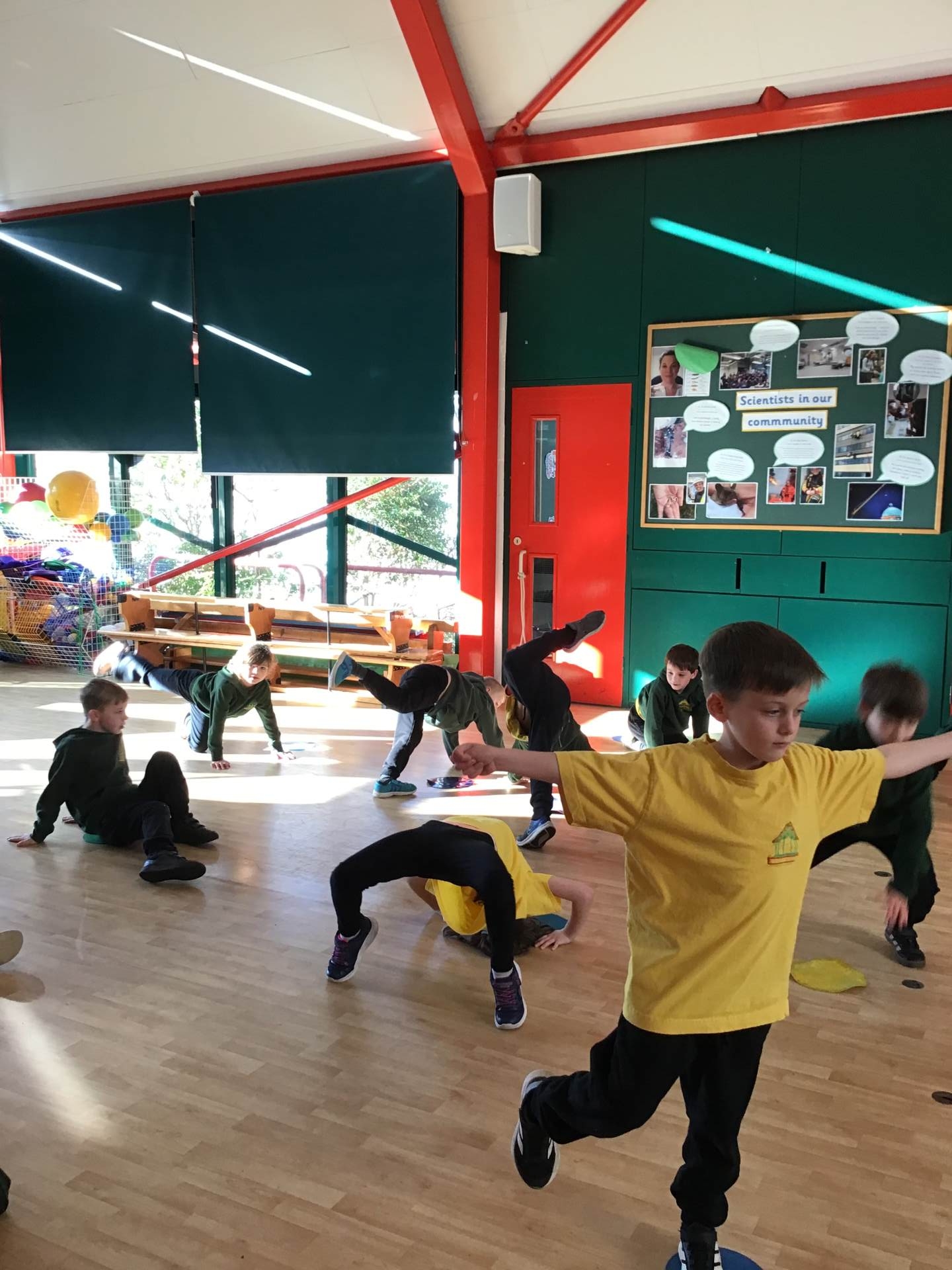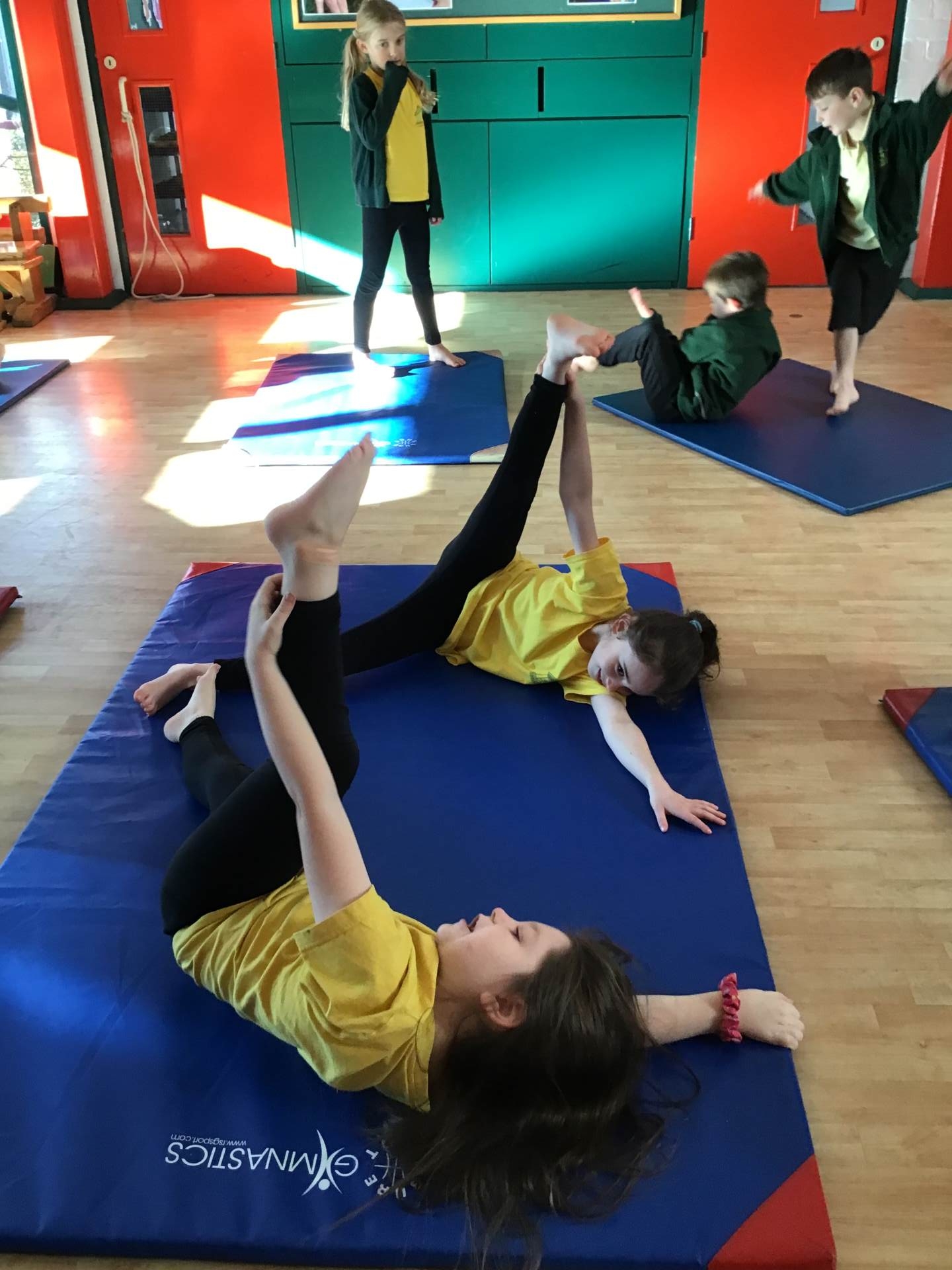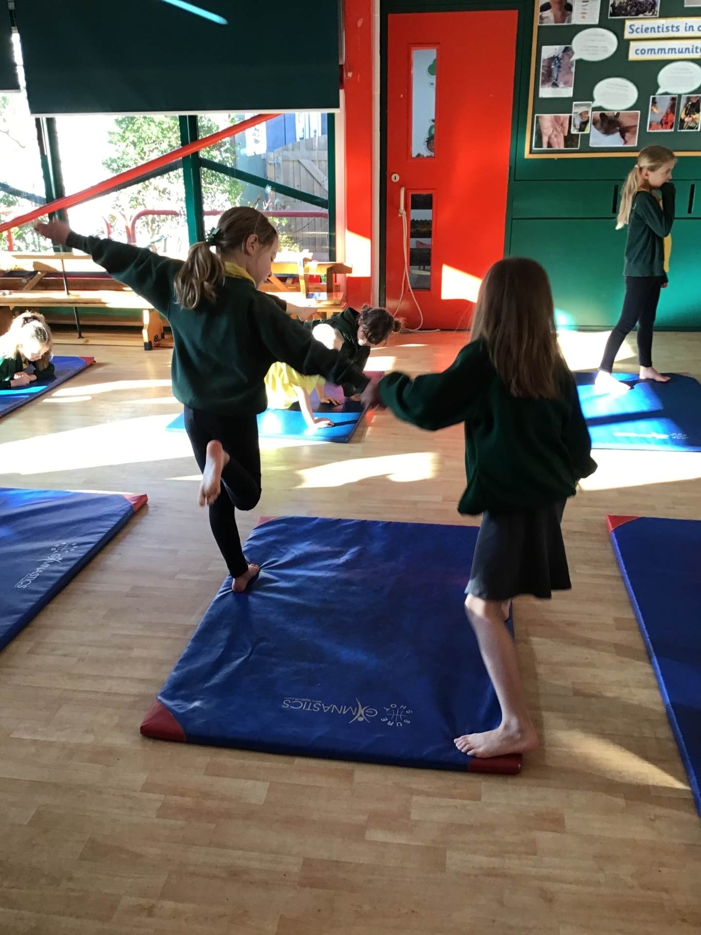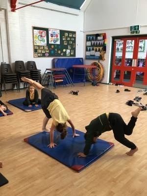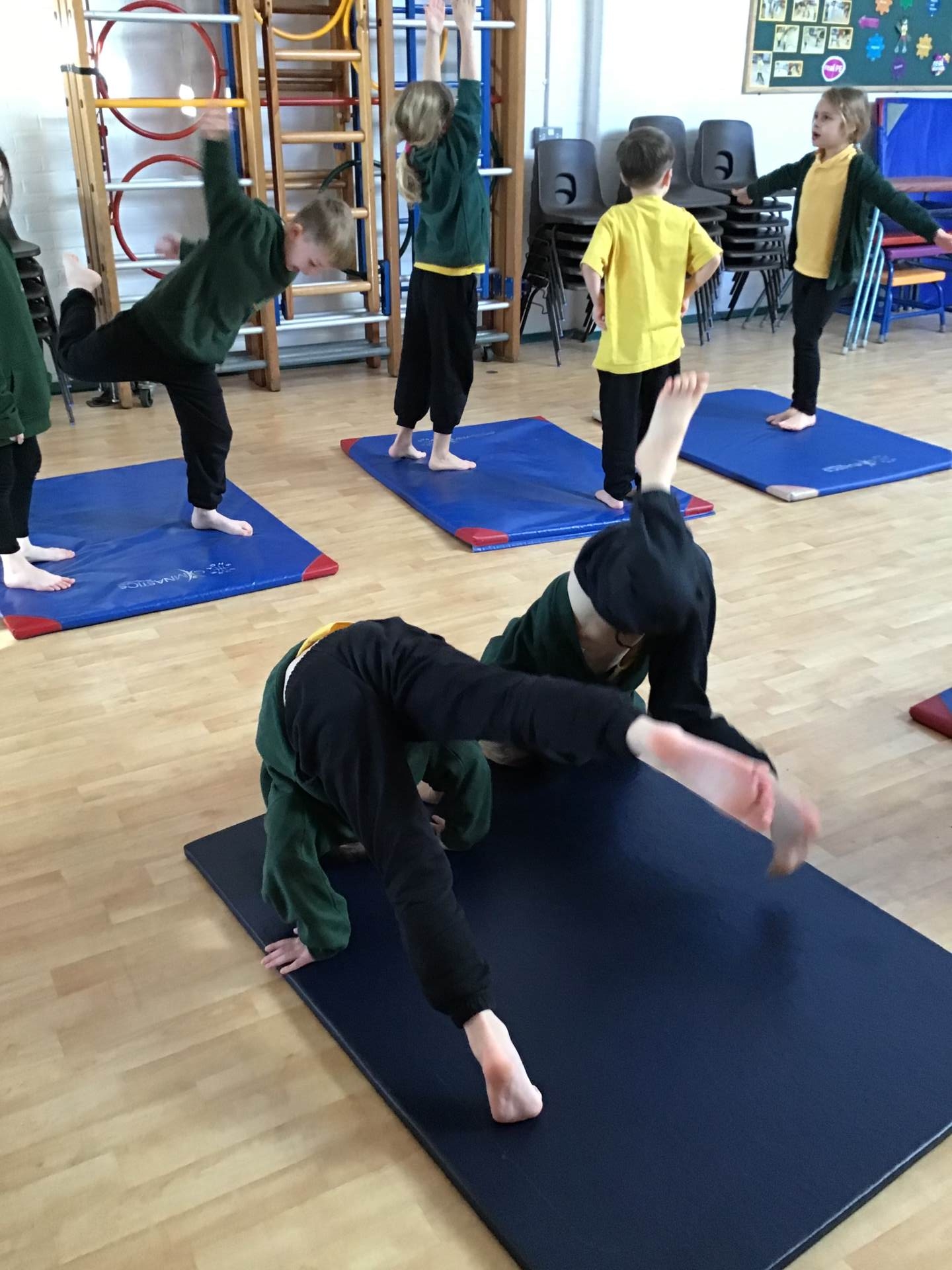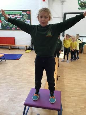In P.E. we carried on practicing jumping, balancing and gymnastics.