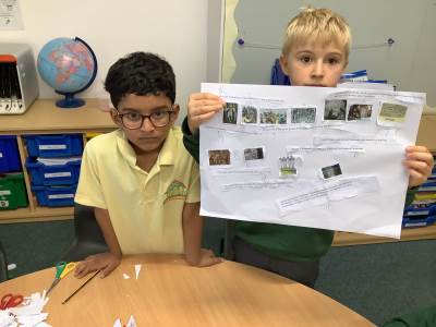 In Science, our focus has been on life cycles in the topic Animals Including Humans. The children sequenced the stages of frogs, butterflies, chickens and humans, using the correct scientific vocabulary. They also investigated the basic needs for survival, finding out that all living things need food, water and air to stay alive. The children asked thoughtful questions and used iPads to research fascinating facts about different animals.