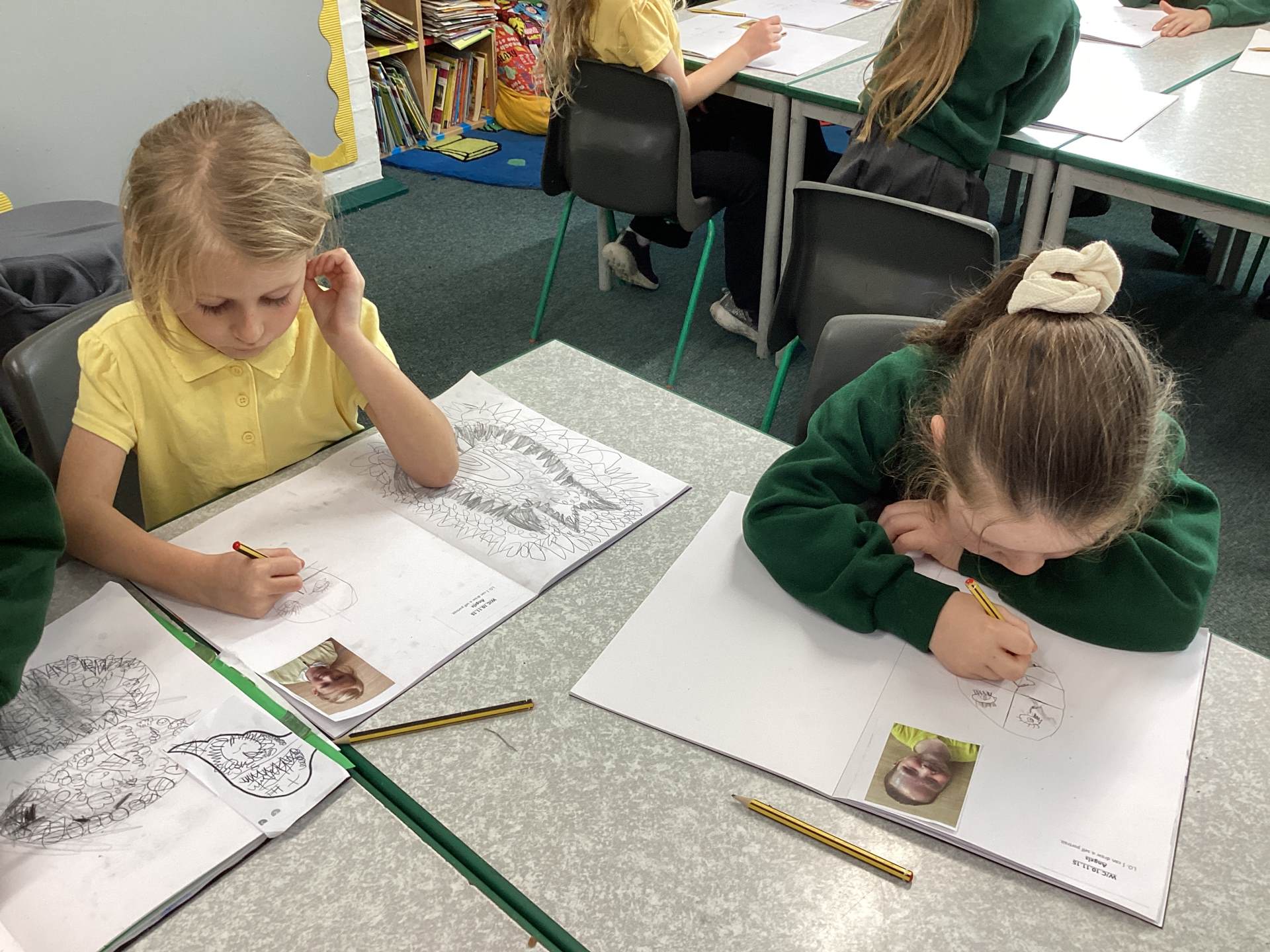 In Art, we learnt how to draw self-portraits. We had to concentrate carefully and follow instructions closely. It was a real challenge, but everyone persevered and produced amazing artwork.