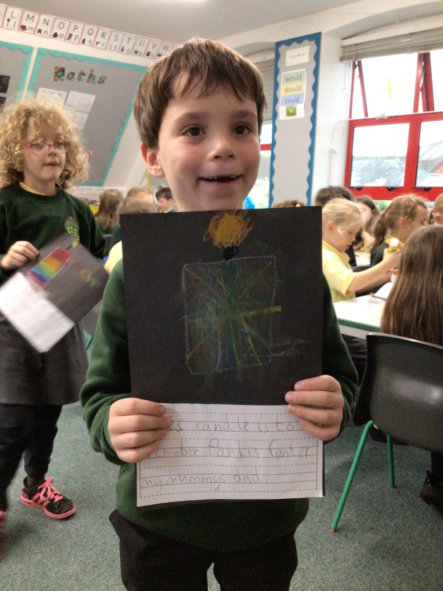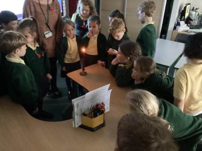 On Tuesday, we observed a two-minute silence to remember those who have died in wars. In RE, we learnt that candles can also be used as a symbol of remembrance. We lit a candle, reflected quietly on people and animals we wanted to remember and then created beautiful wax pastel drawings of candles.