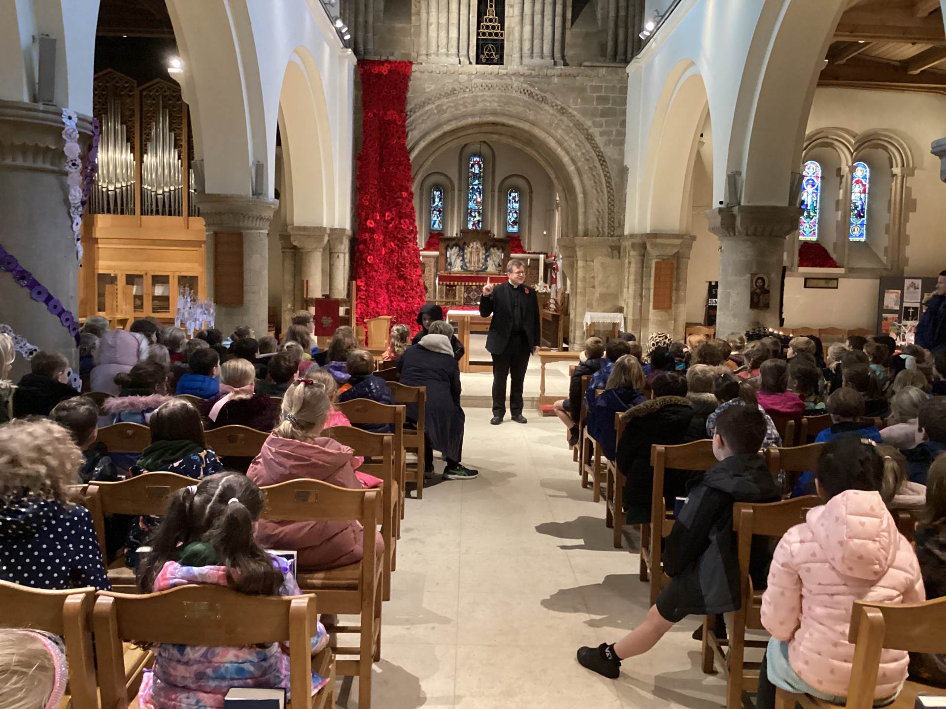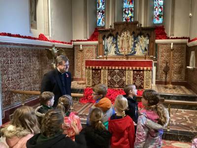 Finally, we enjoyed visiting St Peter’s Church to see the incredible display of knitted poppies. Rev Will explained the meaning behind the poppies, helping us reflect further on remembrance.