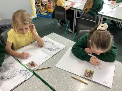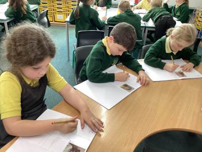 In Art, the children started their new topic “Angels.” Inspired by An Angel Like Me and the paintings of Fra Angelico, they practised careful observational drawing, studying the details of wings, robes and features using pencils, pens and biros.