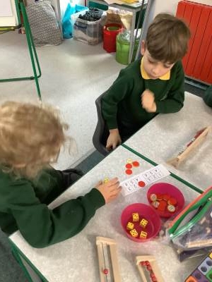In Maths we have been thinking about what makes up a ten and our multiples of tens. We are starting to add and subtract a ten from a number.
