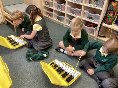 In Music, we were using glockenspiels to learn to play more musical notes. We are starting to learn how to play tunes using both high and low notes. As well as this we are practising for our Christmas concert!
