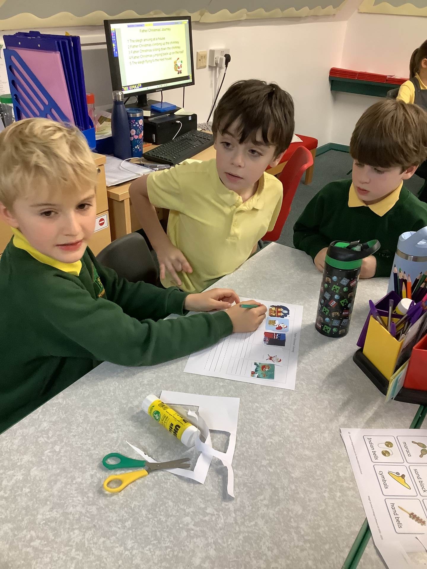 Our topic this half term in Music is ‘Christmas is Coming!’ This week we enjoyed listening to Sleigh Ride by Leroy Anderson, identifying the steady beat. We began by tapping the beat on our thighs. When we were confident with the steady beat we used musical instruments. Half the class used wood blocks, wooden agogôs and guiros to represent the horses’ hooves whilst the other half shook bells to represent the bells on the sleigh. It was lots of fun!