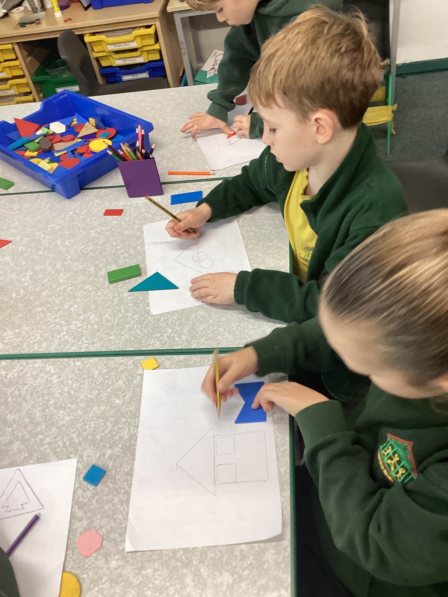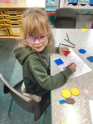 In maths we have been exploring lots of 2D and 3D shapes. We have learned to name them, count their sides, corners and faces, and notice the shapes hidden inside bigger shapes. The children especially enjoyed finding real-life examples in the classroom, such as cuboid cereal boxes and cylinder glue sticks, and talking about what makes each shape special.