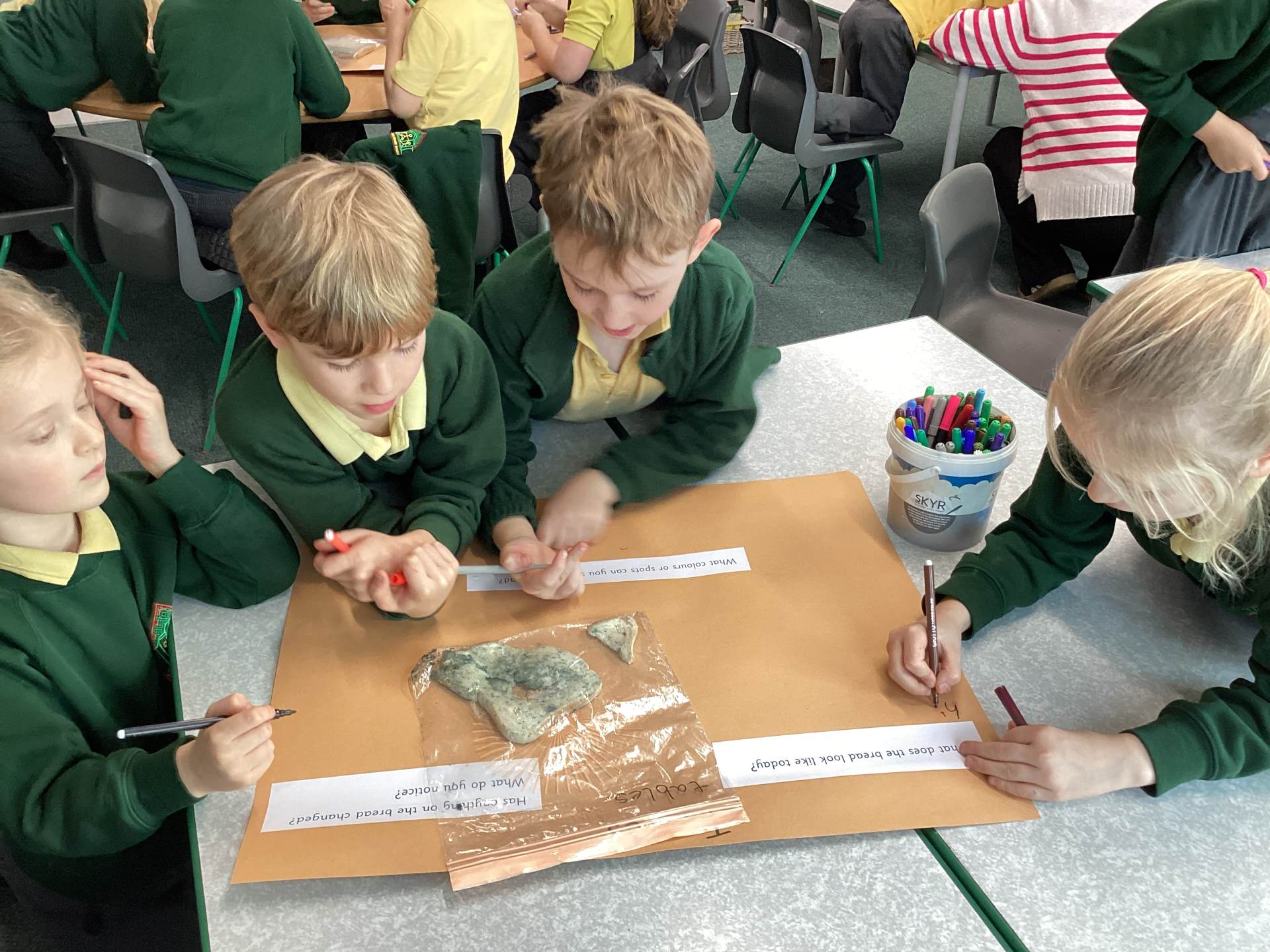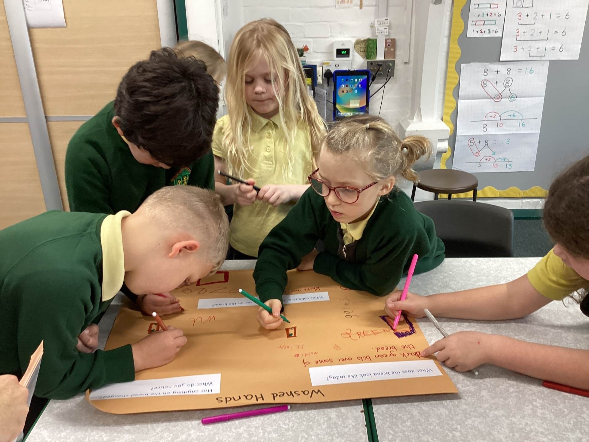 In science we checked our mouldy bread investigation to see where the most germs had grown. The children were amazed (and a little horrified!) to discover that the iPad and the classroom table were the “mouldiest”, which helped us talk about why washing our hands and cleaning shared equipment is so important.