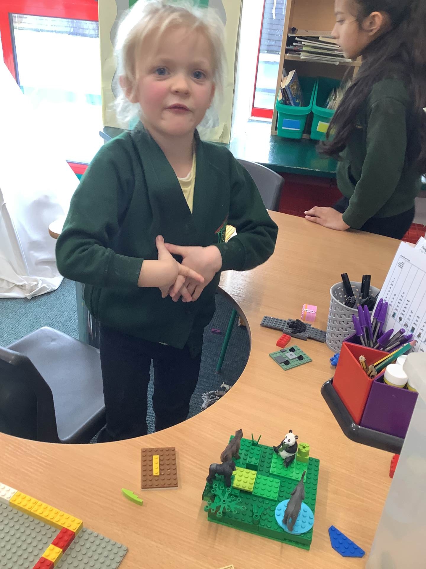 In Science, we have been learning about Living Things and their Habitats. We worked in groups to finds out information to help us to identify animals which live in different habitats and why. We used the iPads and information books to help us to find the answers to our questions about a Penguin, Camel, Cheetah and a Toucan. We then built Biomes for these animals using Lego. We thought carefully about what their environment might look like.