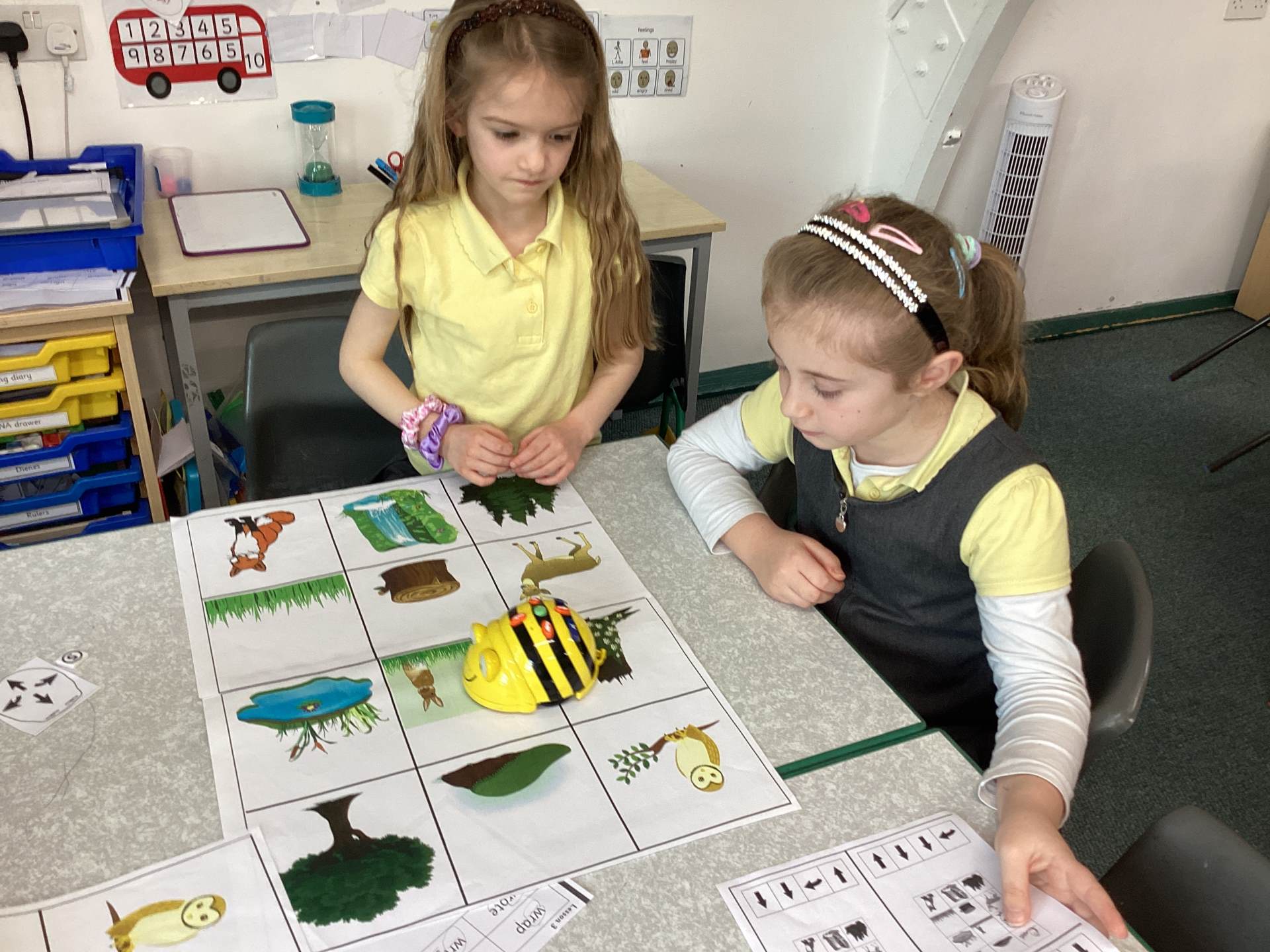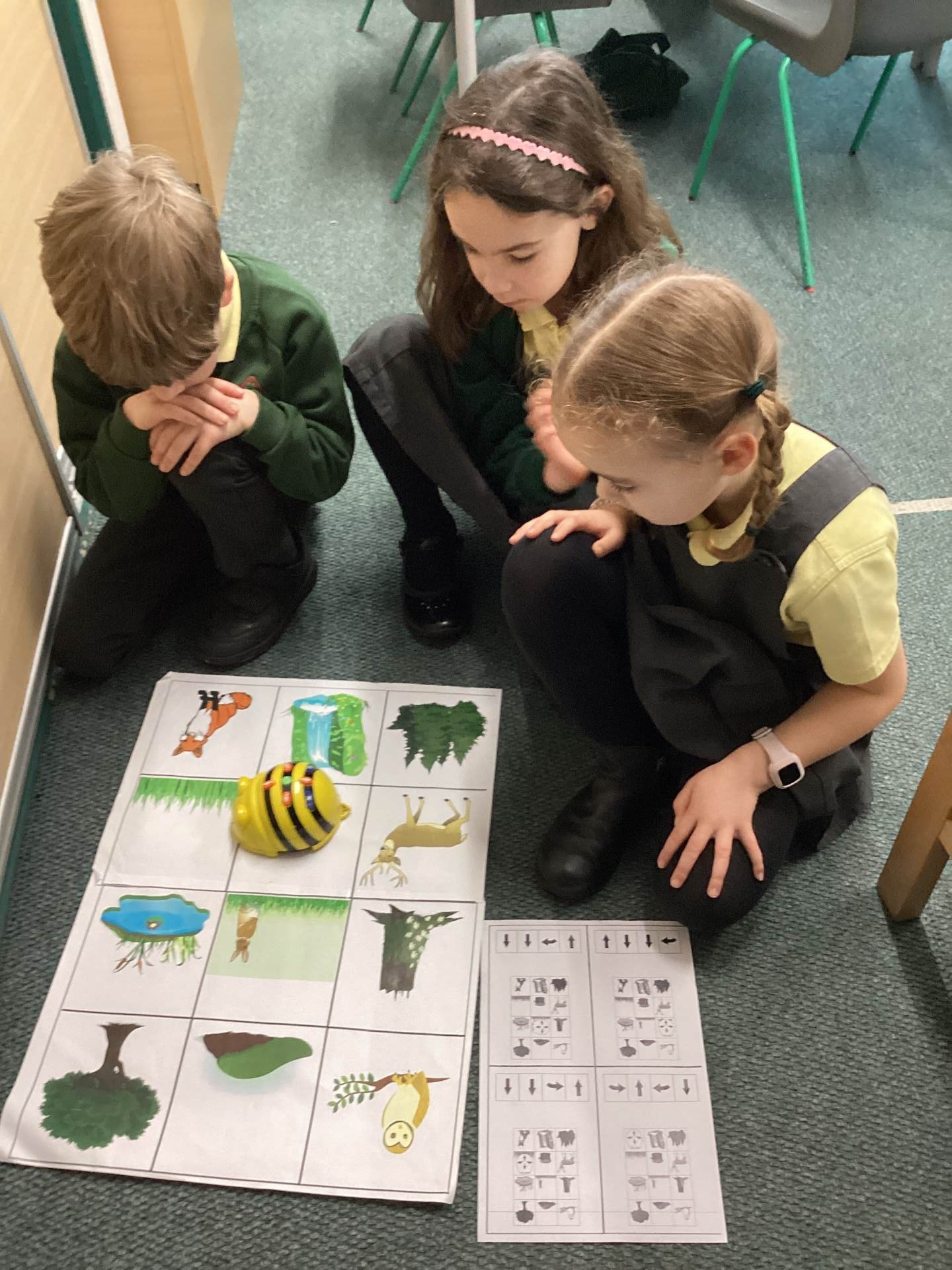 In Computing we have been continuing to explore our Robot Algorithms by making predictions using a ‘paper bot’ Beebot to map out the route that we think it will take. We used maps to enable us to follow a step-by-step program and identify what the outcome will be. We then used the real Beebots to test to see that our predictions were right or not.