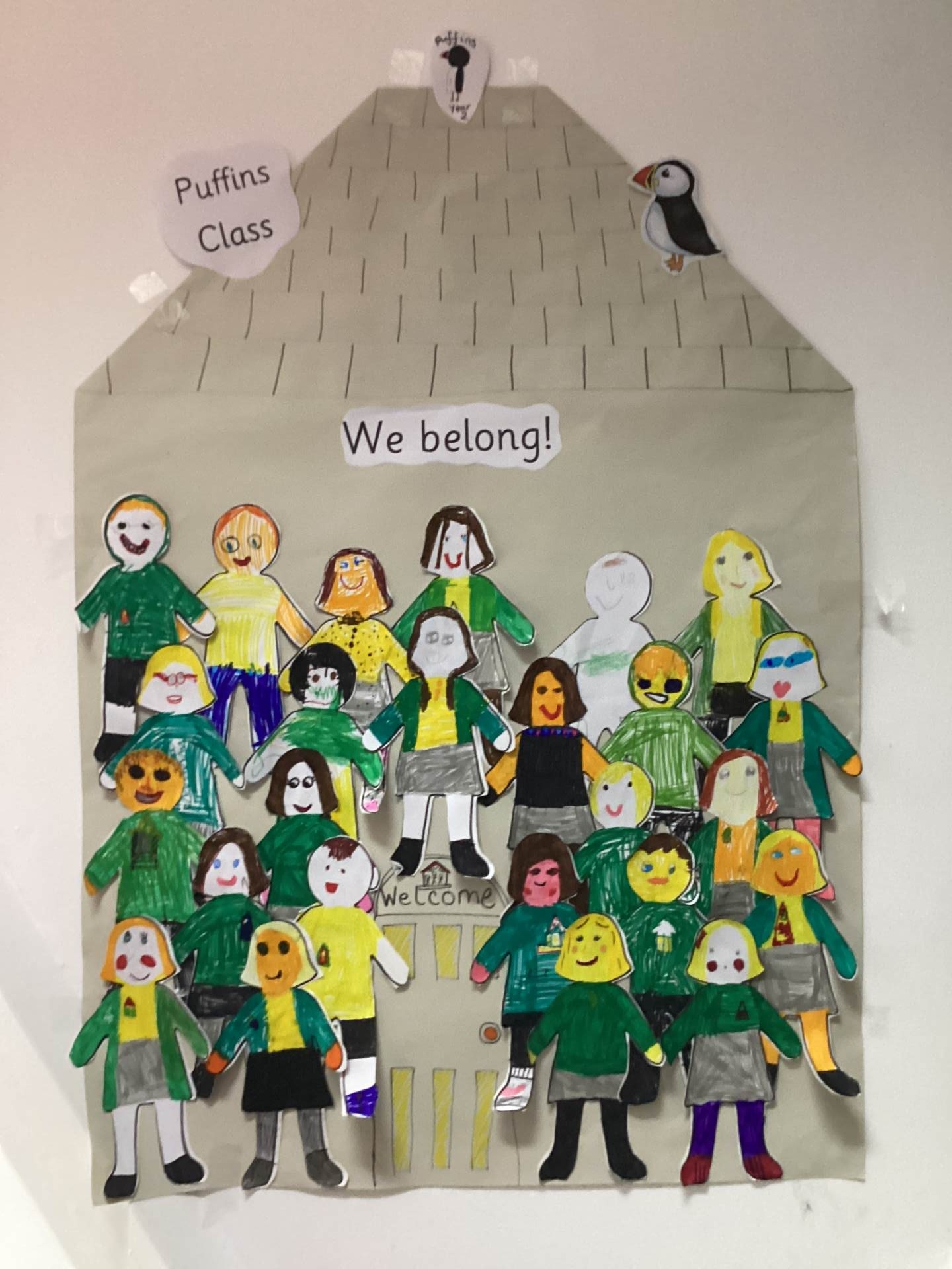 This week was Children’s Mental Health week. We started the week by thinking about the word ‘belonging’ and what it means to us. We created a class display which we then put in the Year 2 area to show that we belong not just in our class, but in Year 2 too. Throughout the week we had some mindful moments, like Cosmic Yoga, mindful colouring whilst listening to calm music and even having time in the library to sit and quietly enjoy a book. We finished the week by wearing our scarf to school.