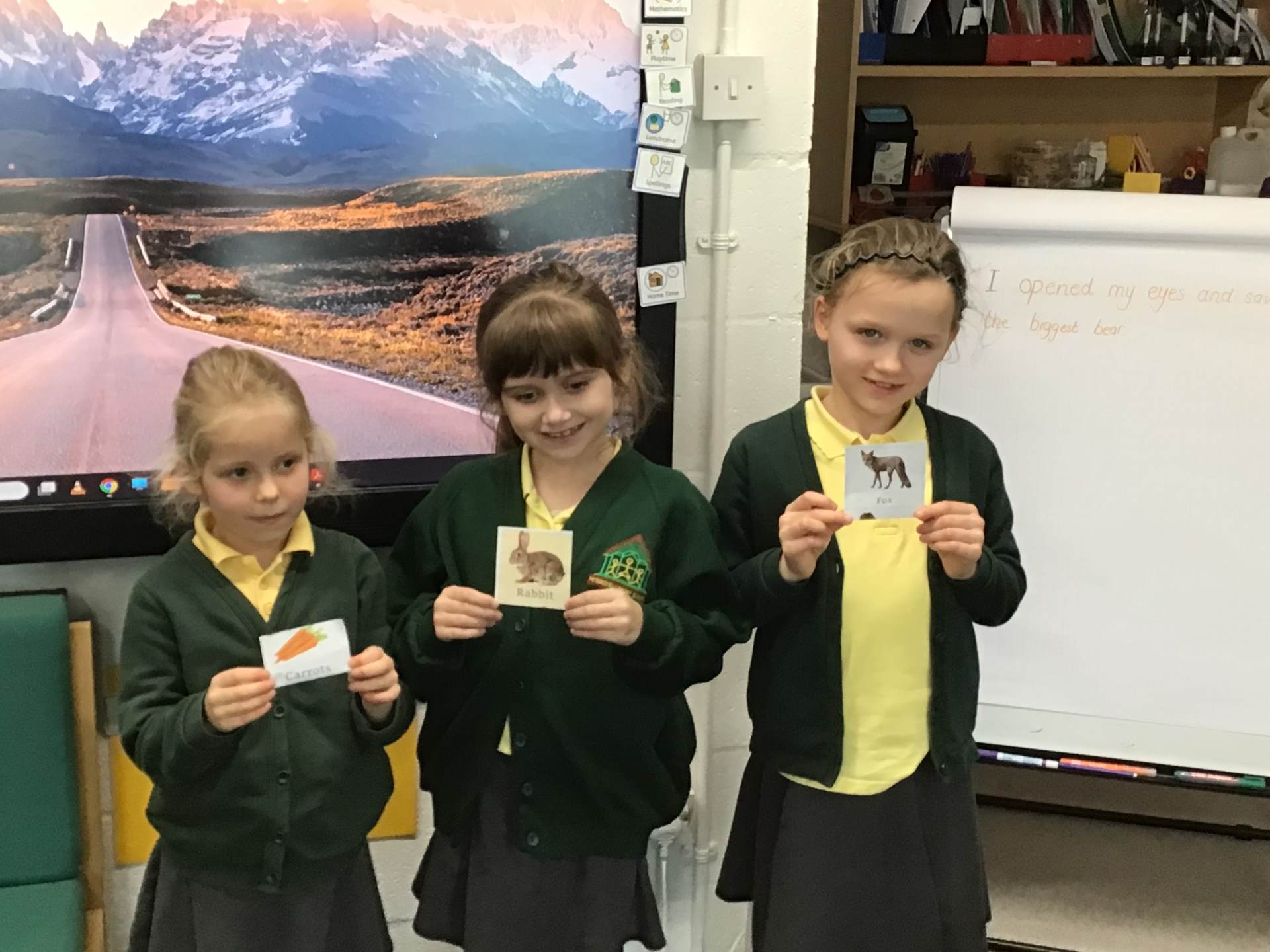We have been learning about food chains in Science. We played a game where we had to match food to the animals to create a small food chain. We had fun and realised that many animals eat the same thing.