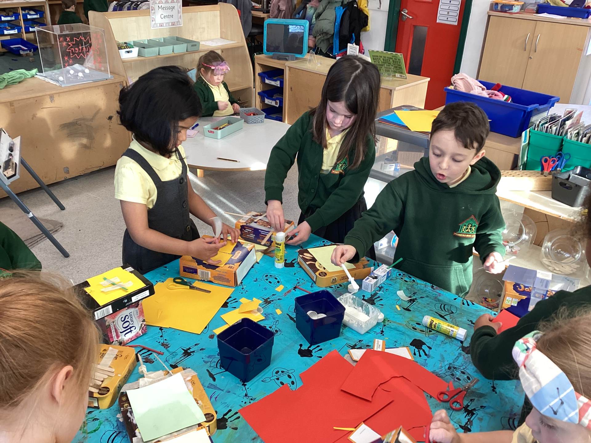We completed our first Star Challenge by building a house for the monster from the book Not Now Bernard. Some children chose to work on their own, while others enjoyed working together in groups.