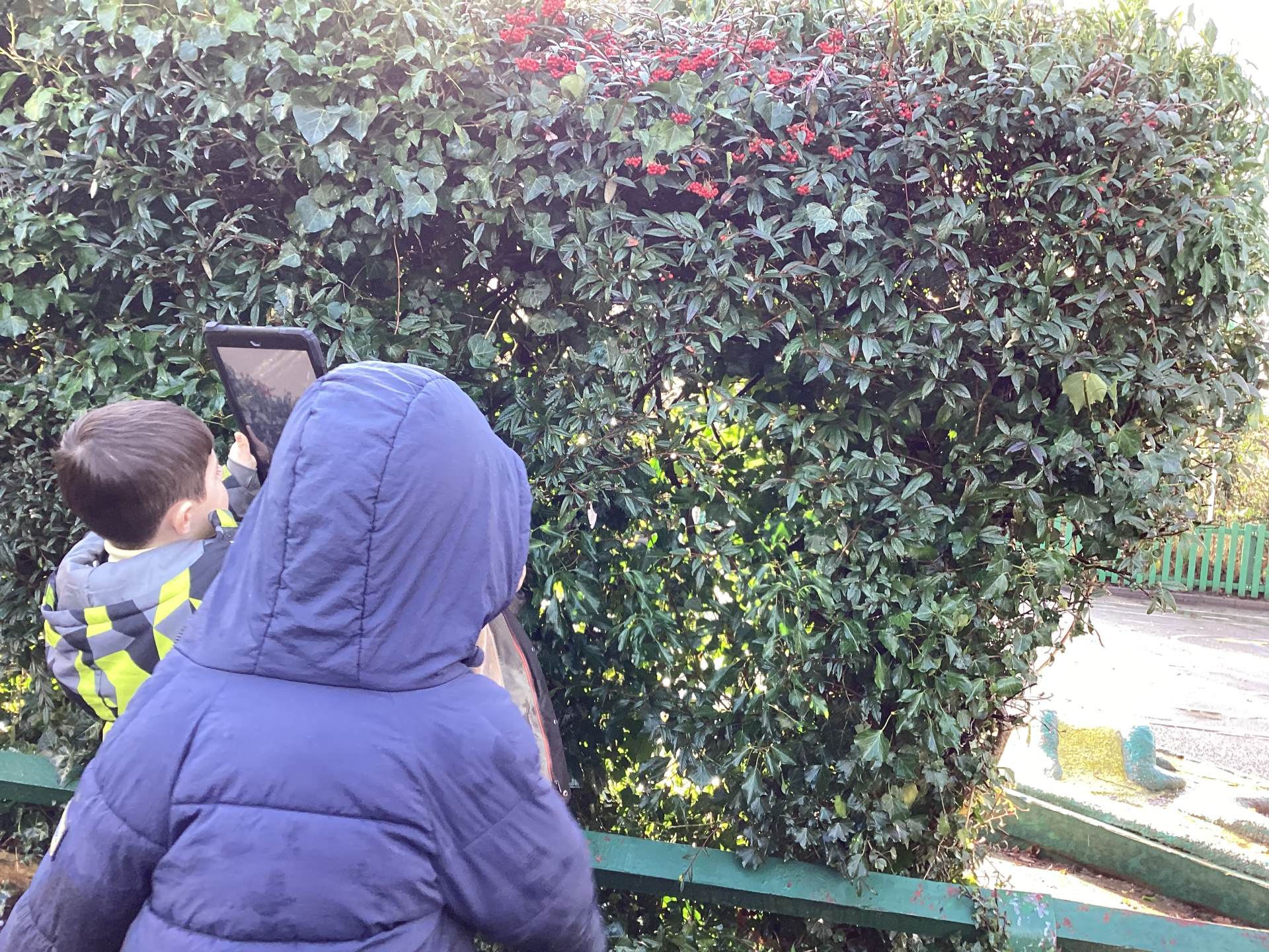 At the end of the week we learnt about the signs of winter, and went for a walk around the school grounds to spot some of the things we had been learning about. We noticed bare trees, berries, new growth on some of the plants and some trees that were still green. We took some photos using the iPads of the things we spotted!
