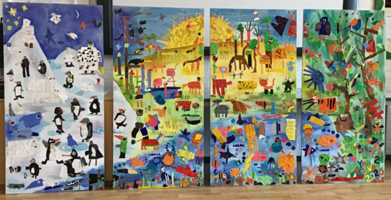 Mural created by Year 2 pupils with Vicki Ostersen from Tree Frog Art