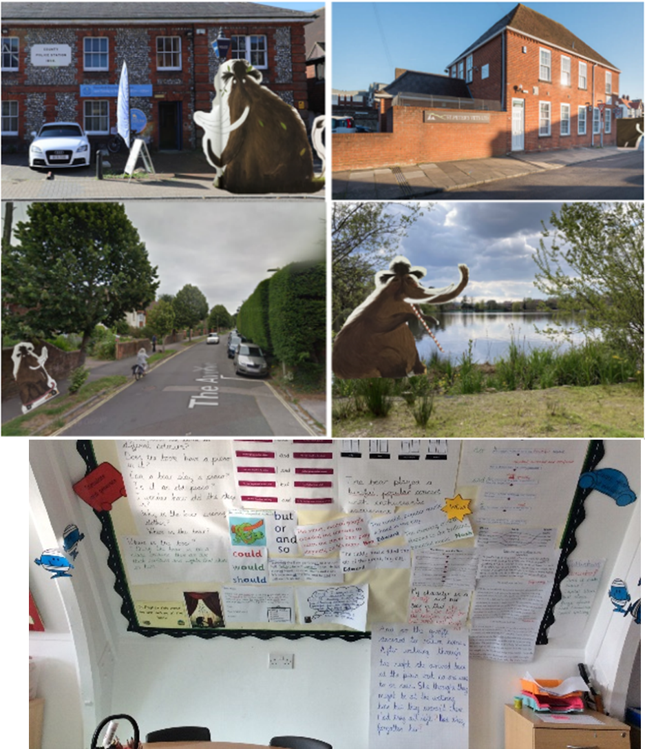 Each learning journey incorporate learning across a range of the subjects taught in each year group and enable the children to use and apply their prior learning as well as their new learning in a range of contexts. They culminate in the production of a written outcome. These are for a real and specific purpose and audience – for example, children in Year 2 write a description of a Woolly Mammoth after it had escaped from Petersfield Museum and been spotted around the town!