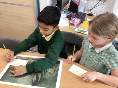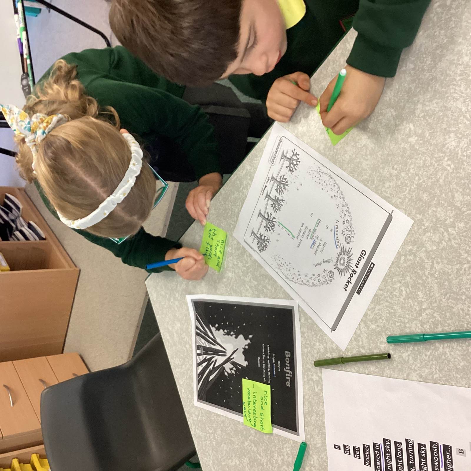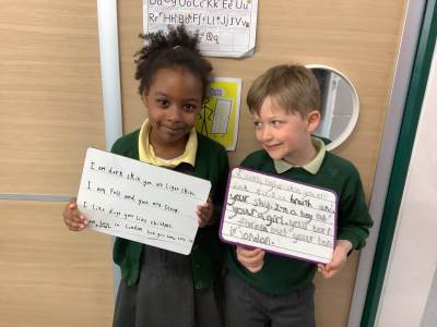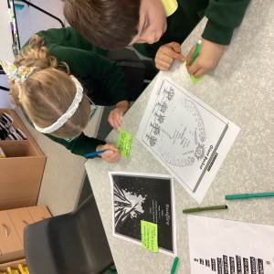 This week we have learnt through poetry in English, using November Nights Countdown as inspiration. The children performed verses with expression, explored nouns, adjectives and verbs, and created their own descriptive firework phrases such as sparkling sparklers and fierce flames.