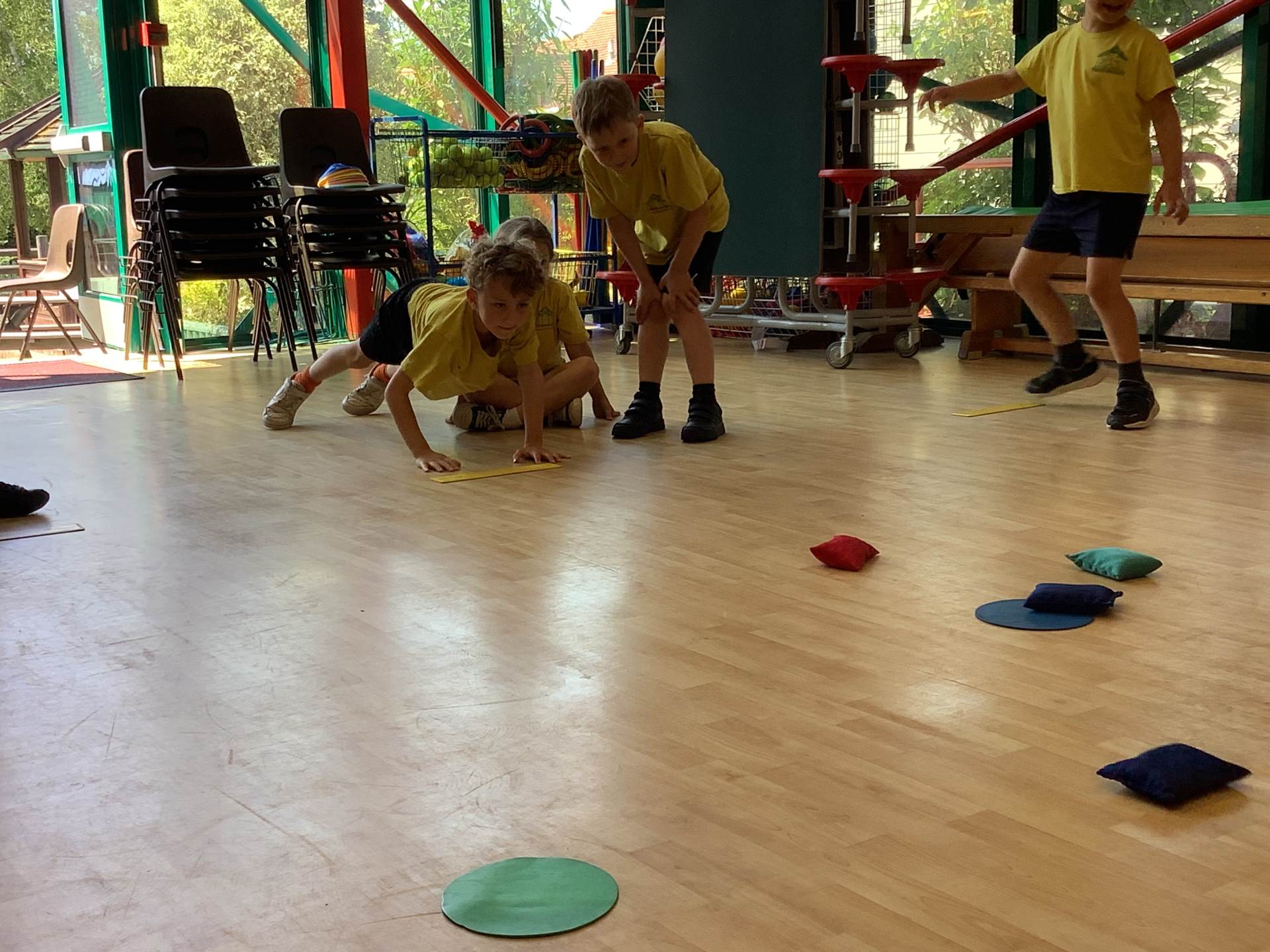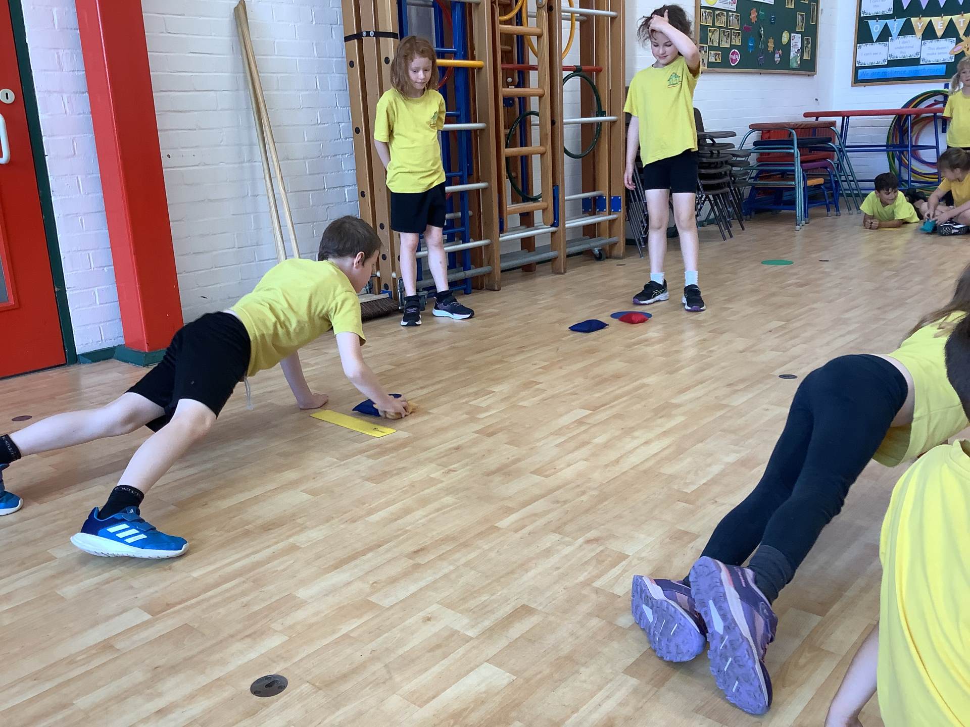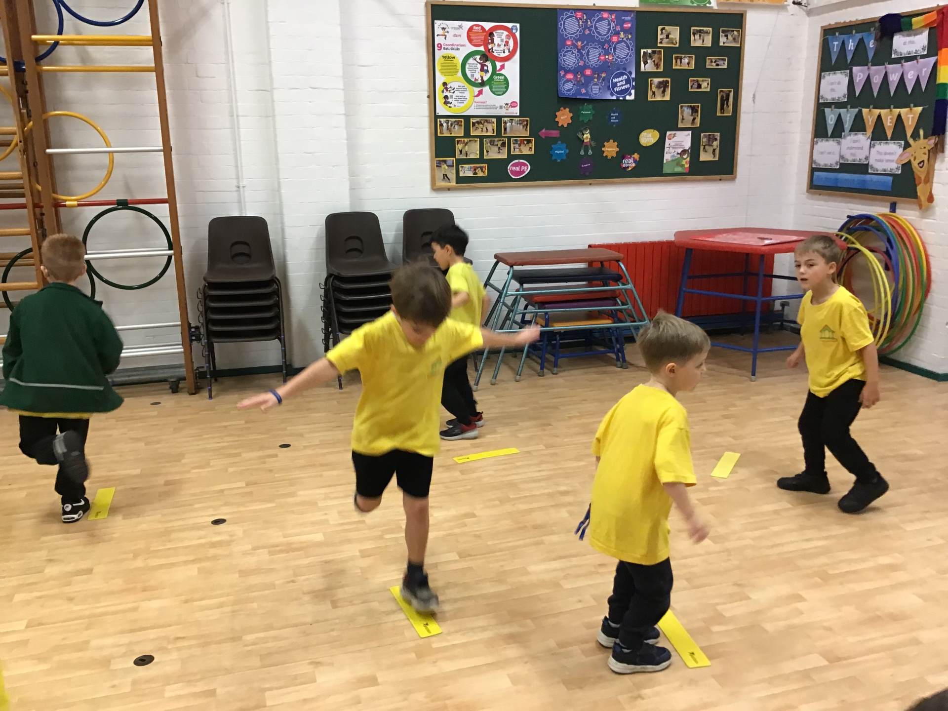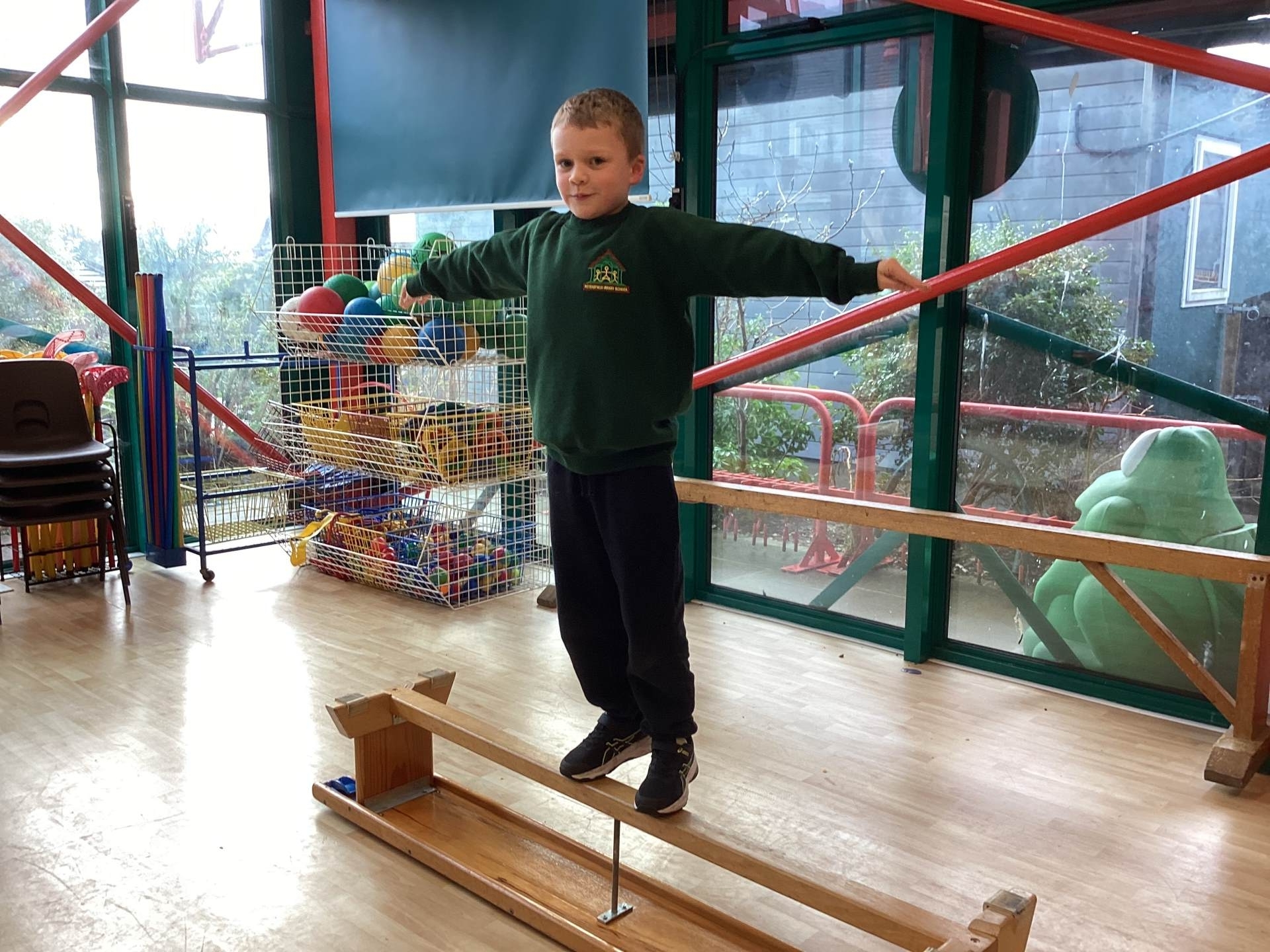 In P.E., we focused on balance and coordination. We challenged ourselves to walk across a beam while balancing a quoit on our heads – it was tricky but lots of fun! Everyone tried their best and showed great determination.