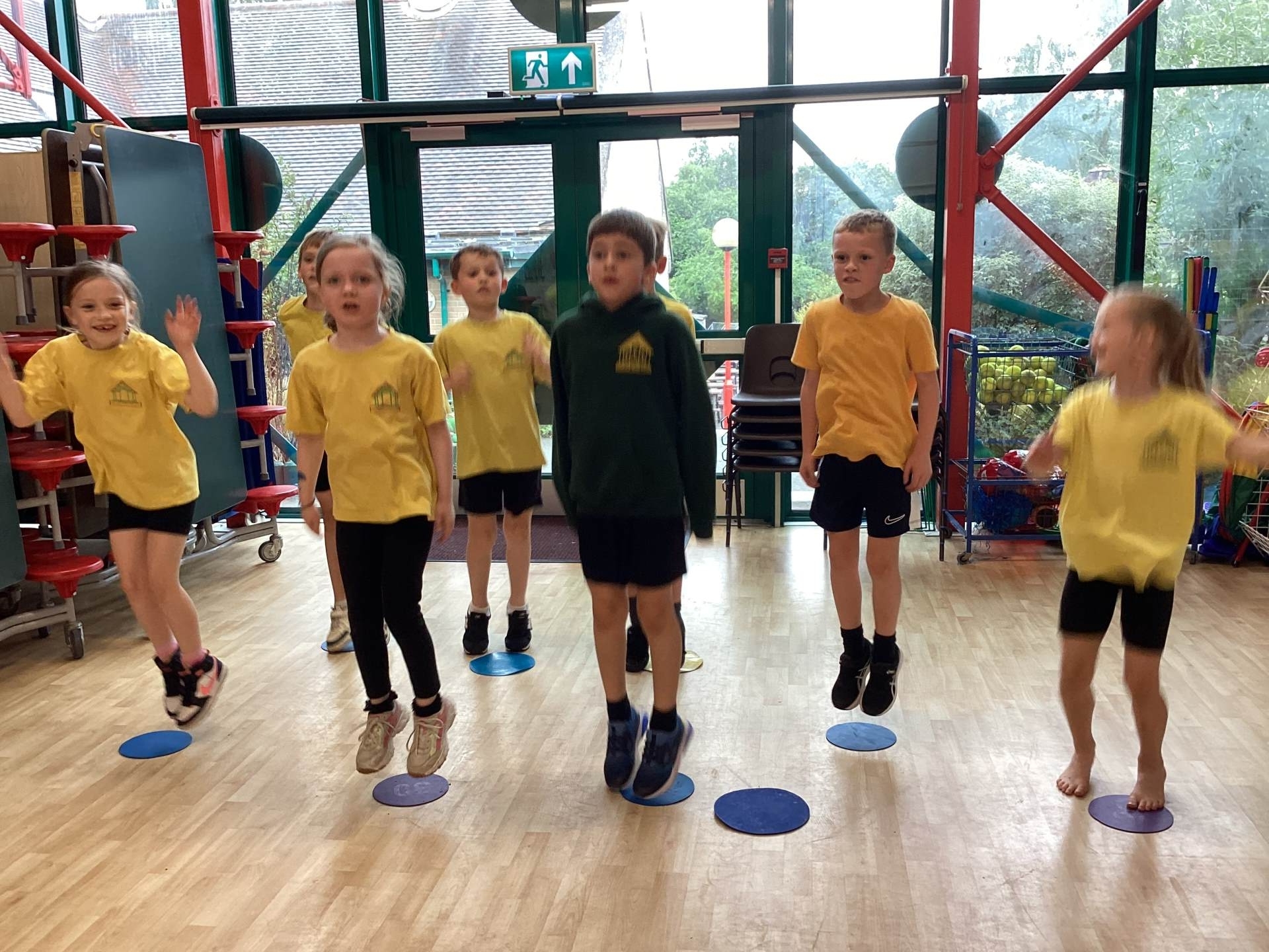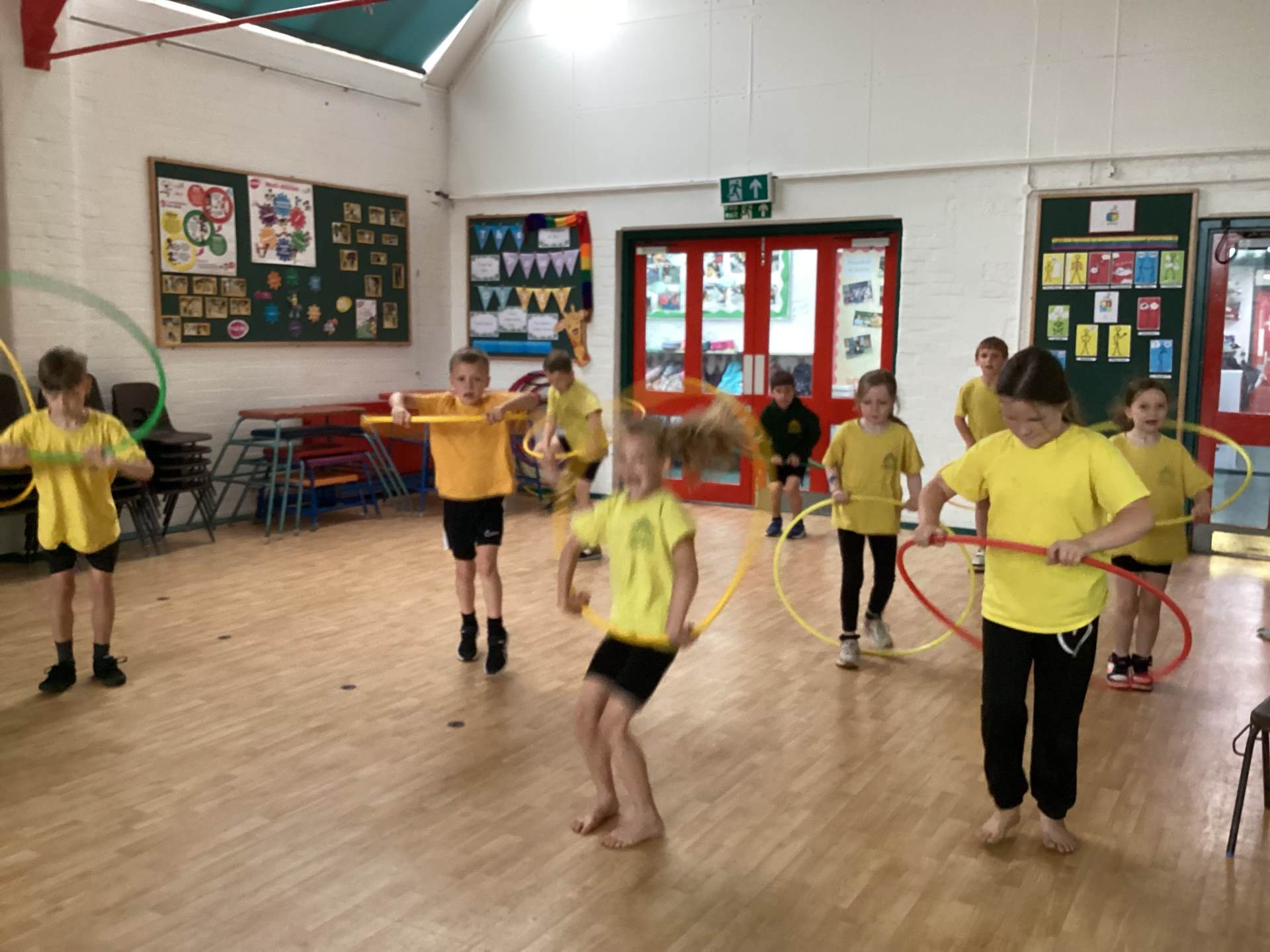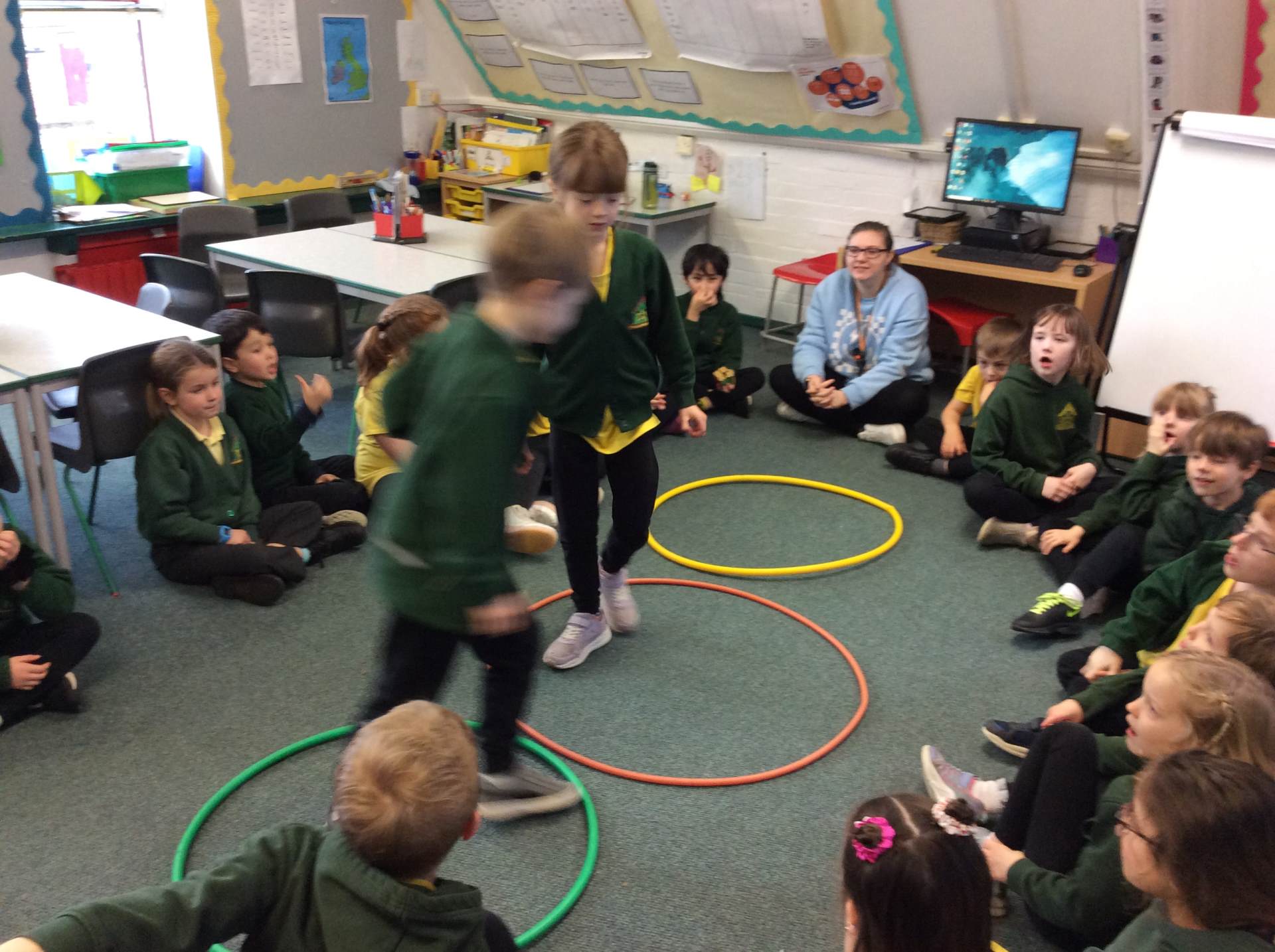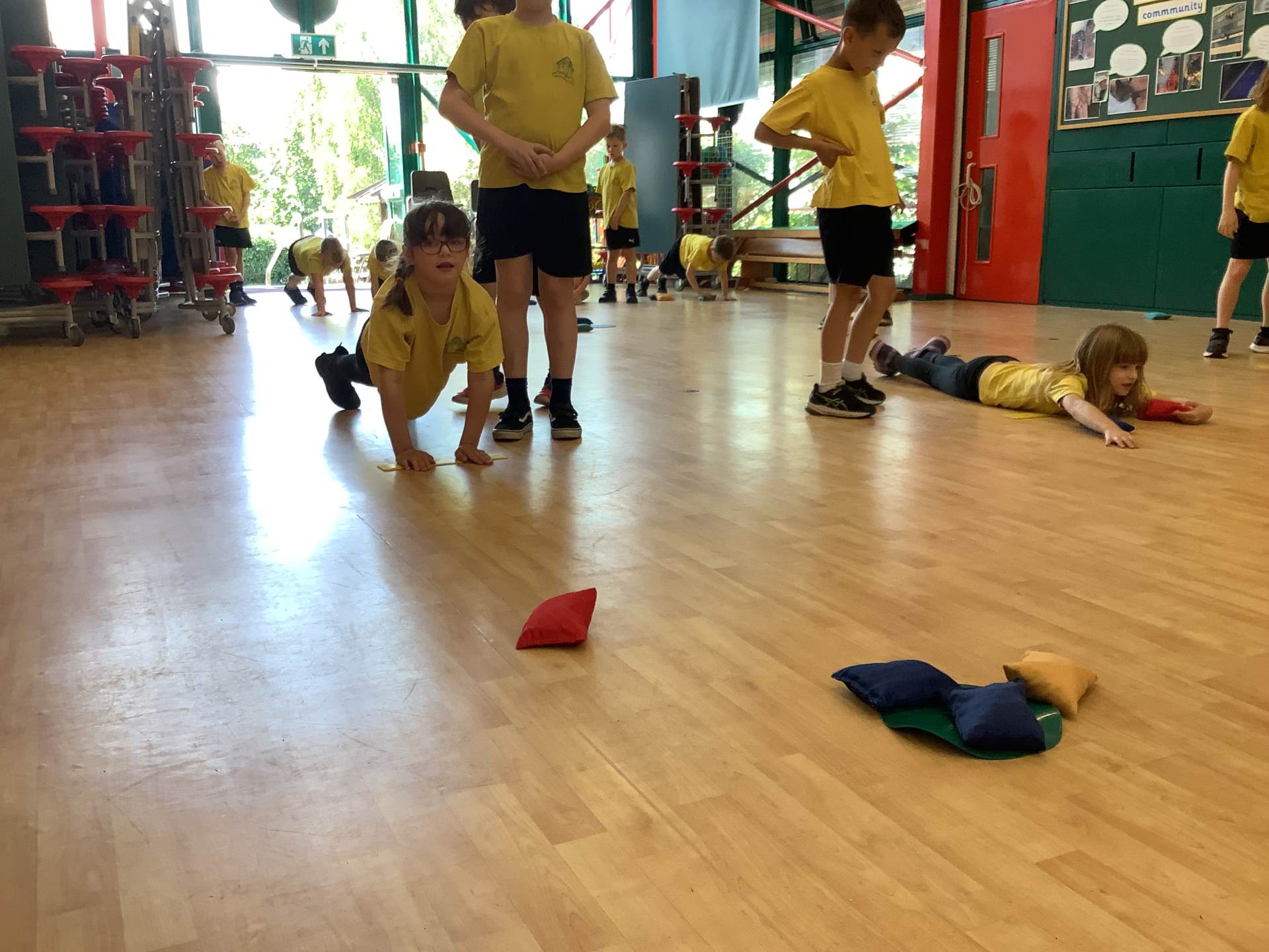 In P.E., we focused on balance and coordination. We challenged ourselves to walk across a beam while balancing a quoit on our heads – it was tricky but lots of fun! Everyone tried their best and showed great determination.