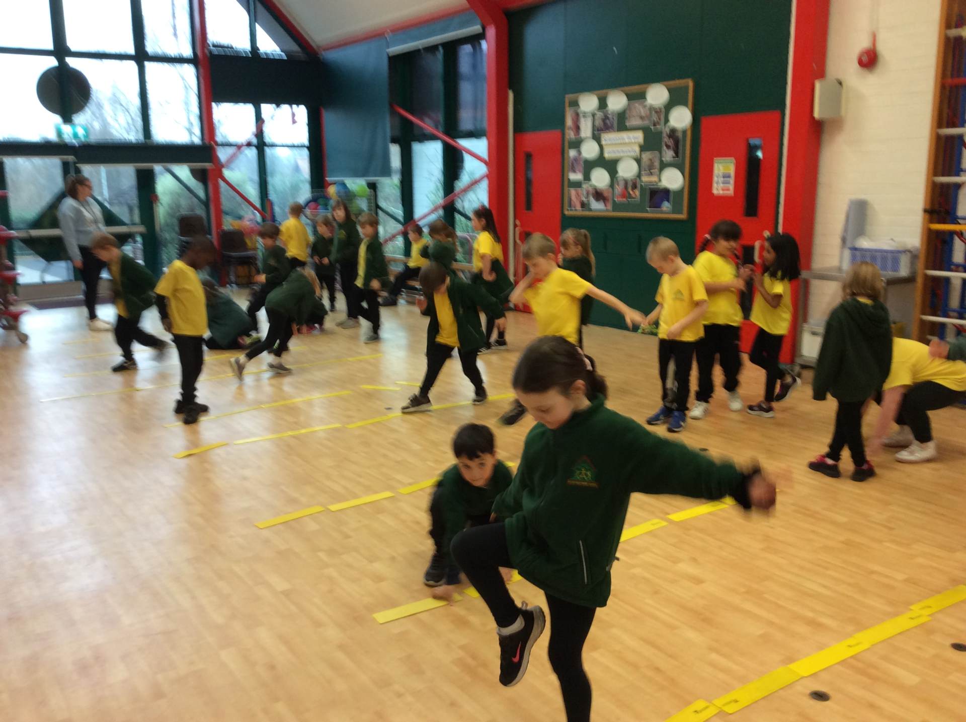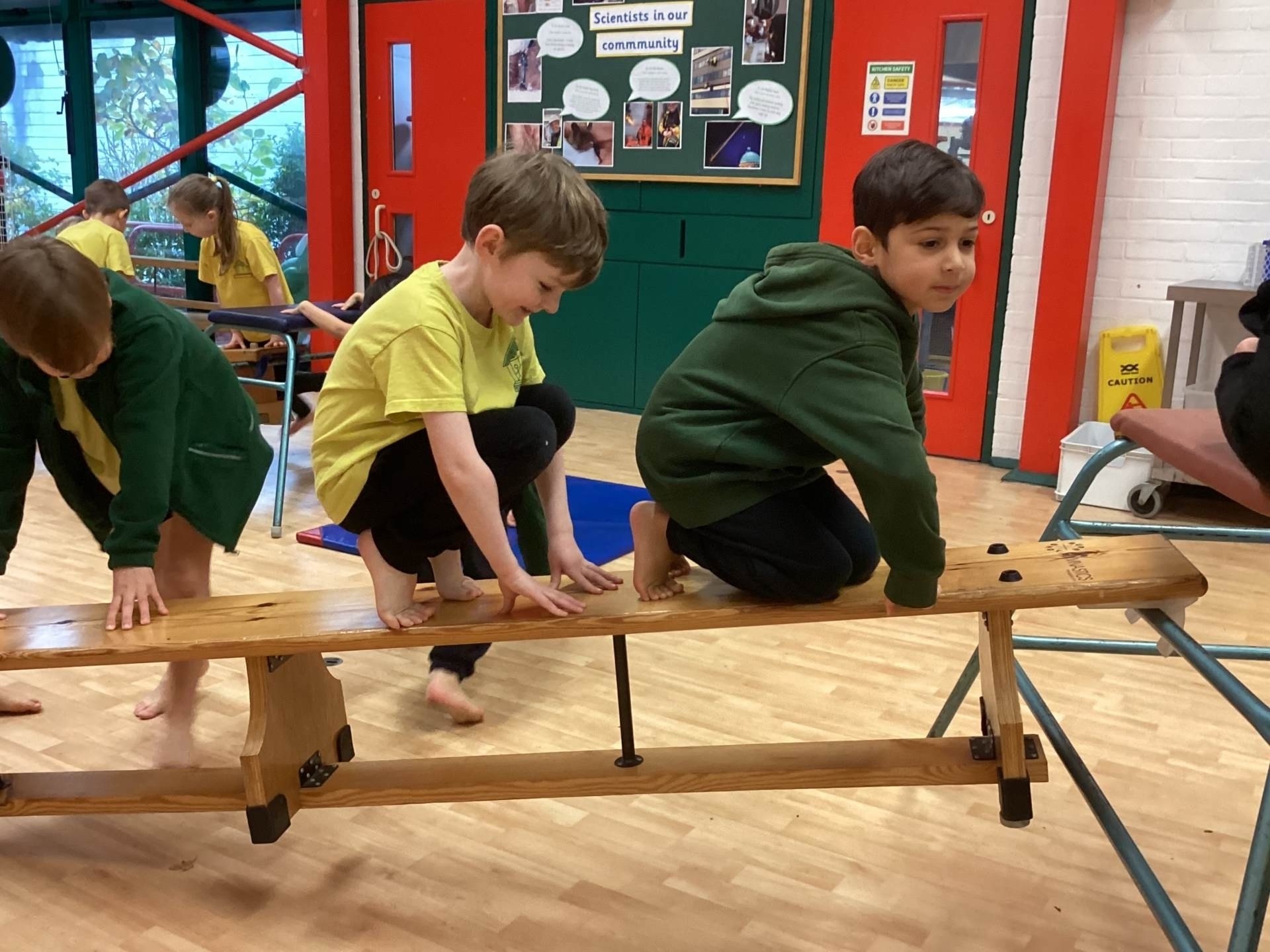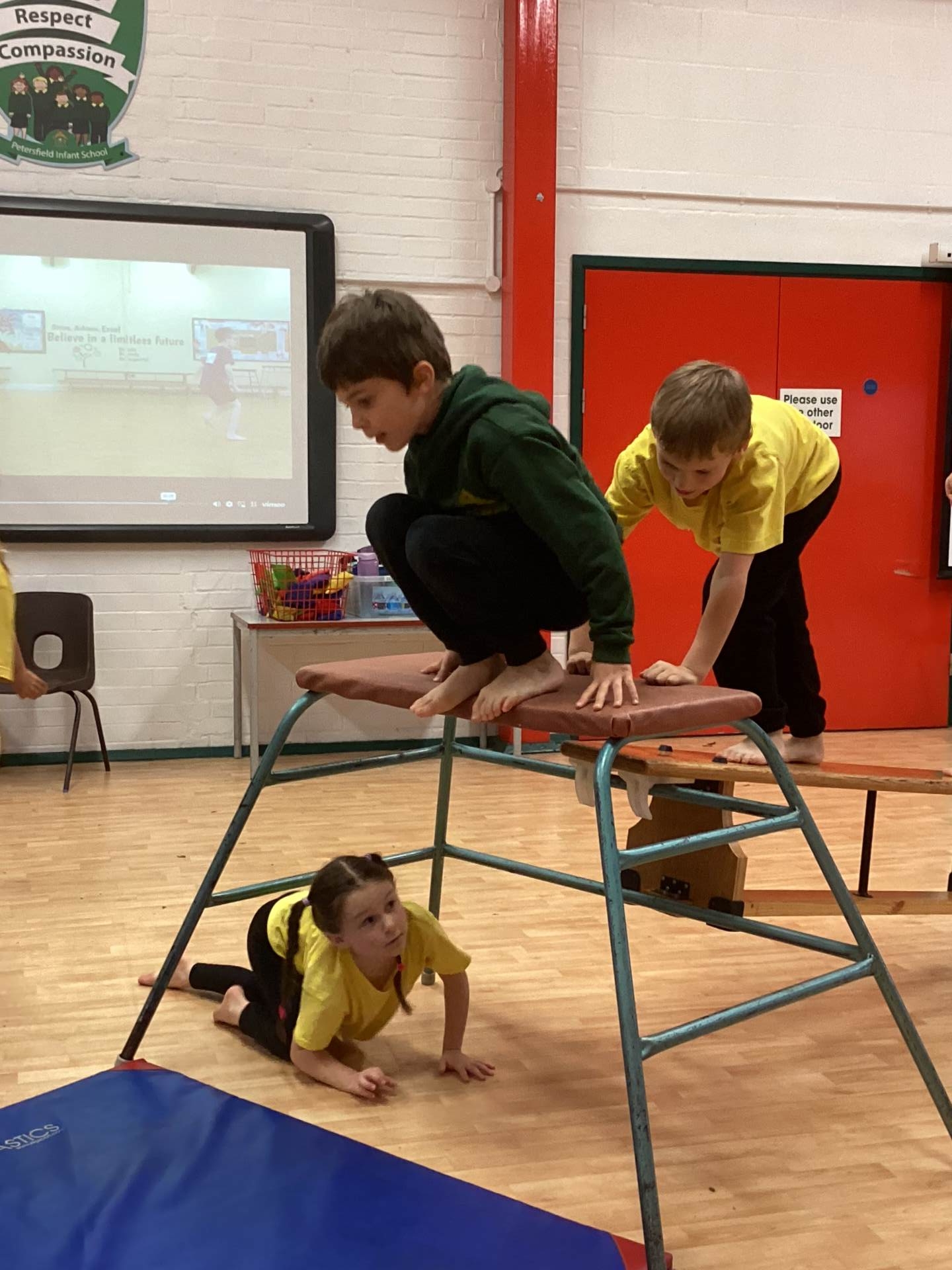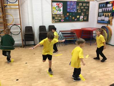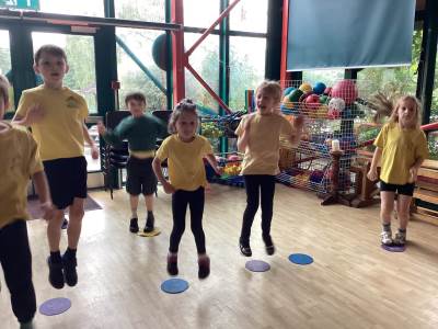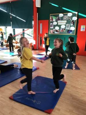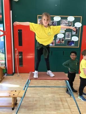In P.E. we carried on practicing jumping, balancing and gymnastics.