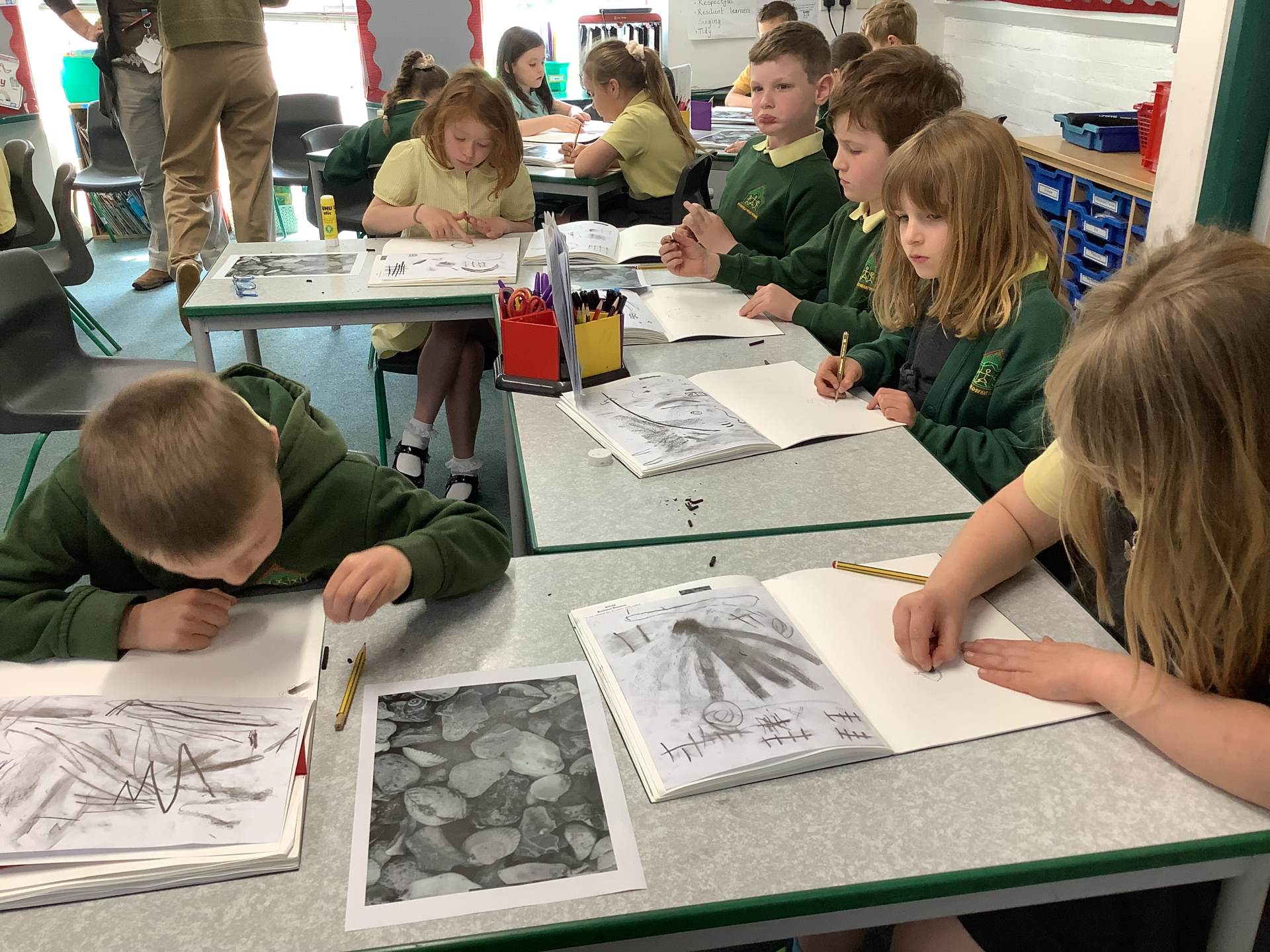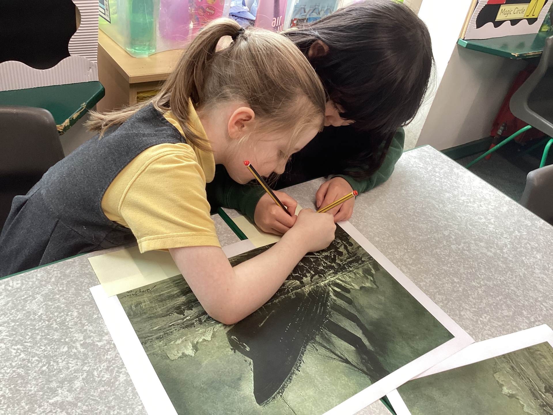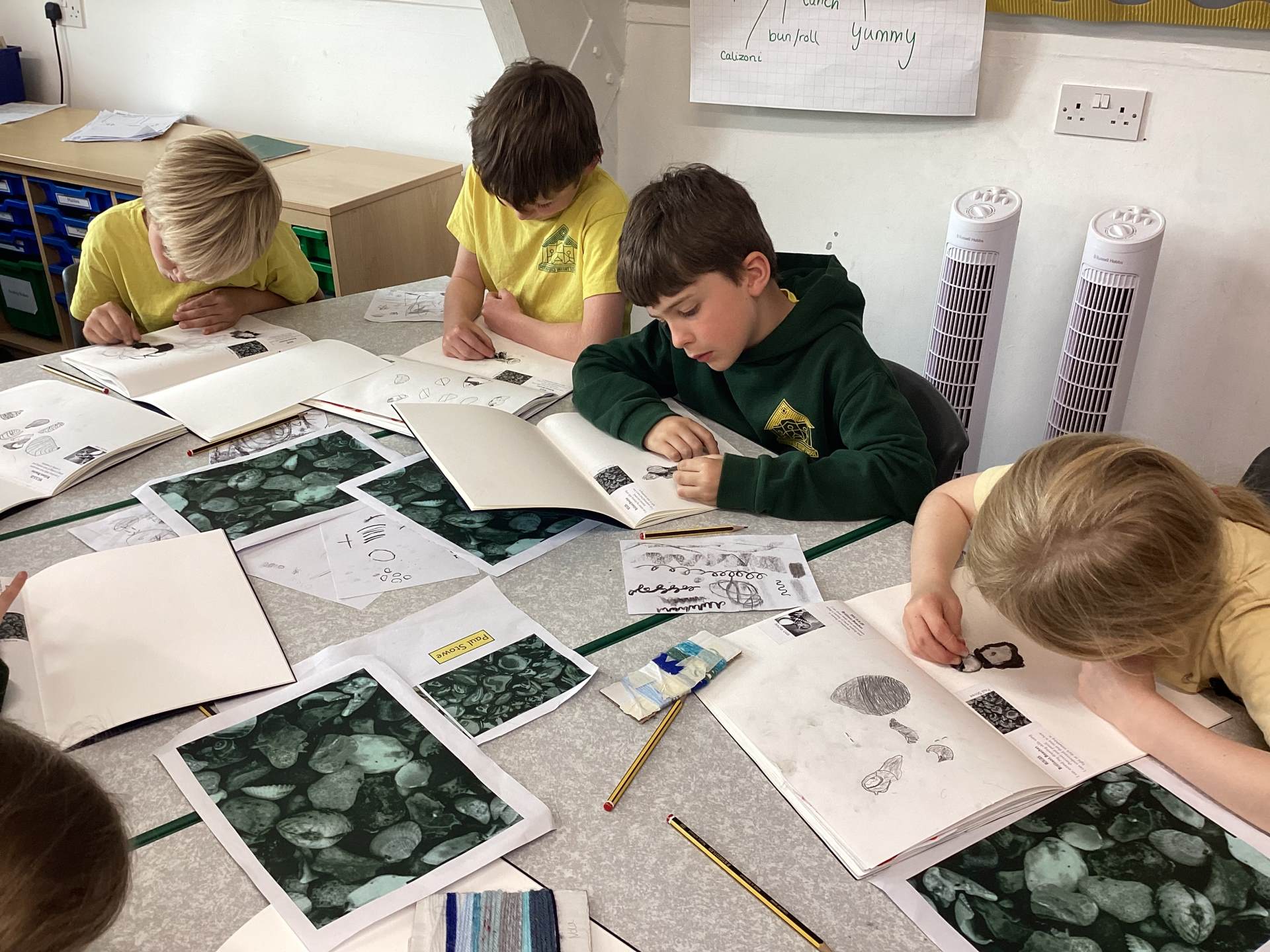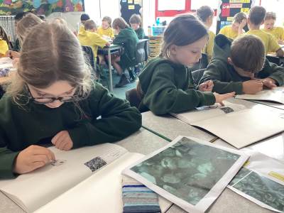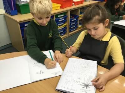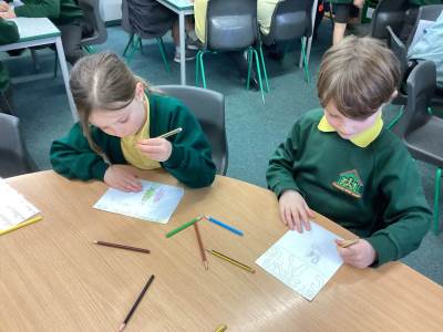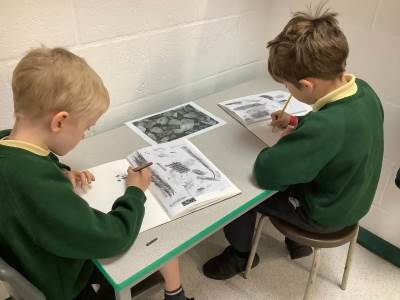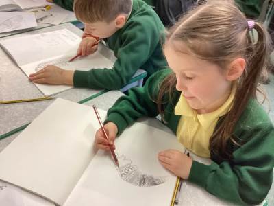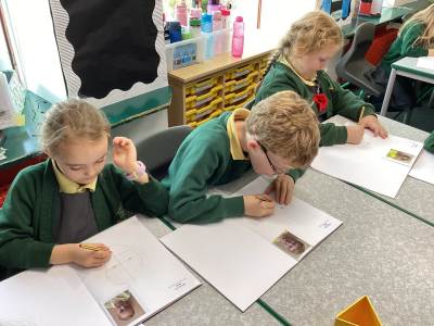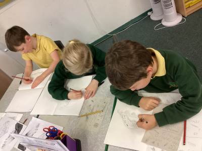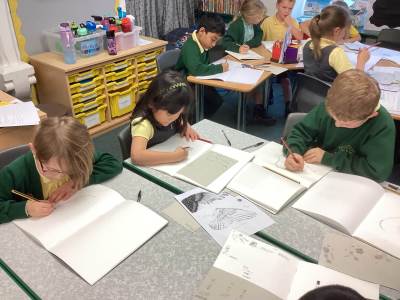 In Art, the children started their new topic “Angels.” Inspired by An Angel Like Me and the paintings of Fra Angelico, they practised careful observational drawing, studying the details of wings, robes and features using pencils, pens and biros.