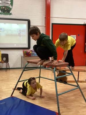 In PE we have been revising our gymnastic shapes – star, pike, straight and tuck. We then had a go on making these shapes on the PE equipment. We started by making a shape, we then travelled along the equipment and made a different shape in the middle and then at the end. We made sure that we were using the equipment safely and sensibly.