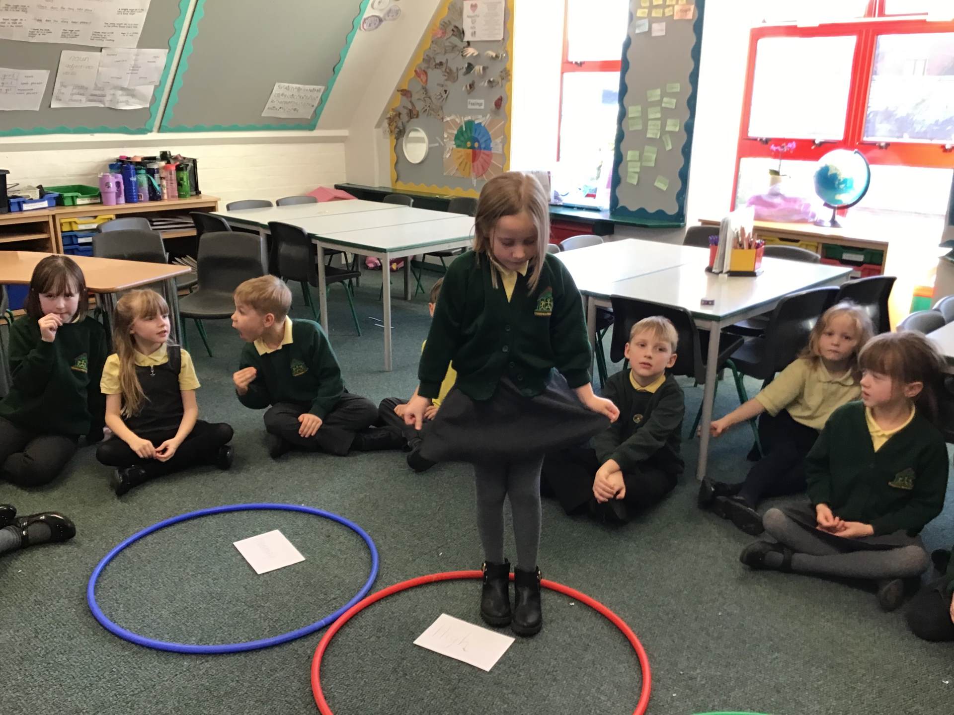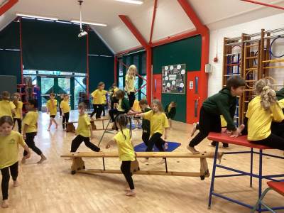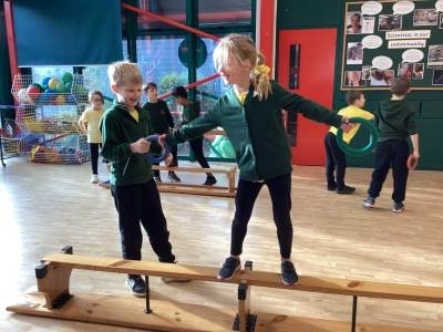 In PE we have been developing and honing our balancing skills on low apparatus. In Gym we’ve been exploring the jumps we have learnt with hand apparatus such as hoops, skipping ropes and balls. We had to use our resilience when jumping with skipping ropes and hoops because it was very tricky!