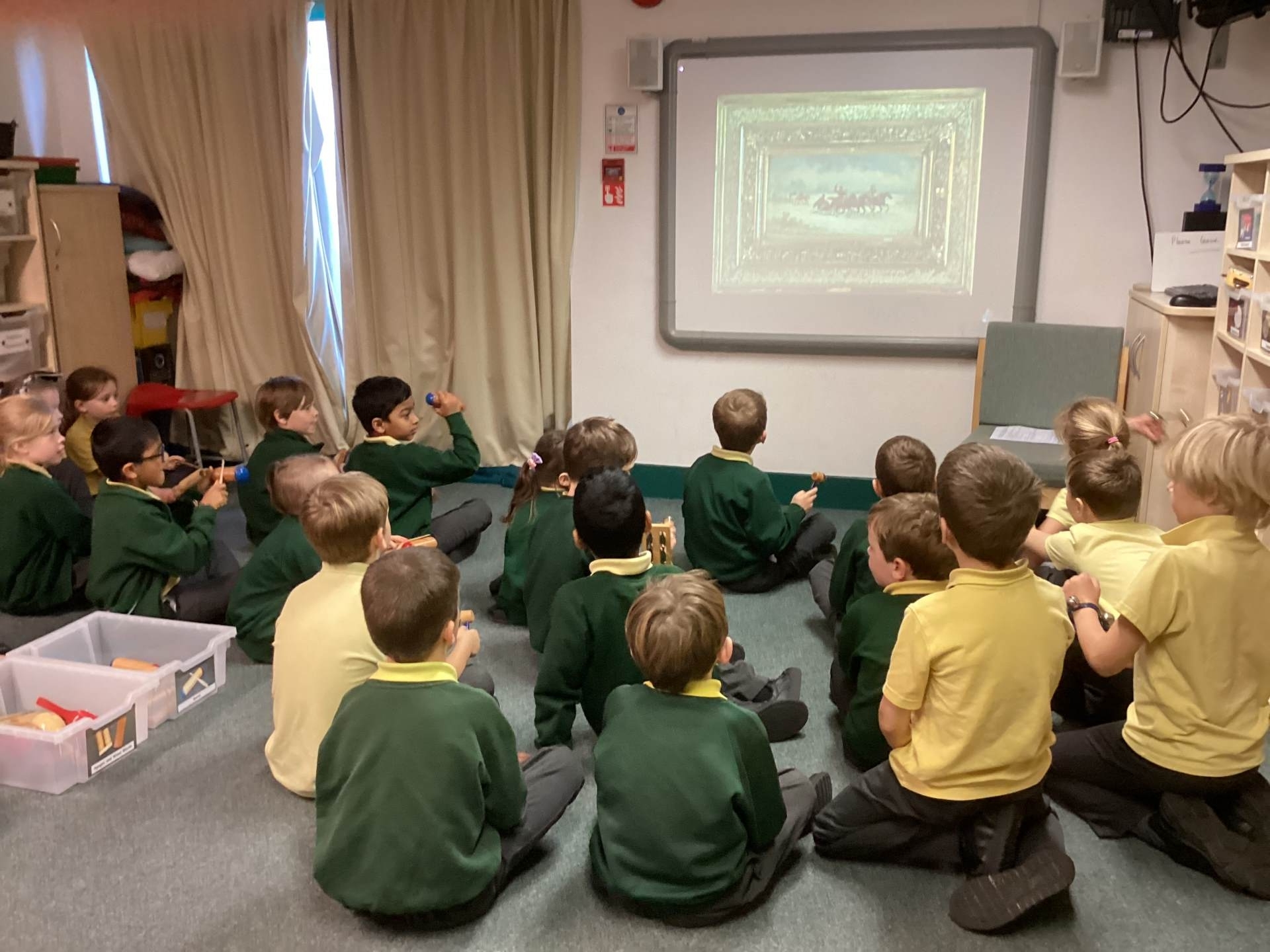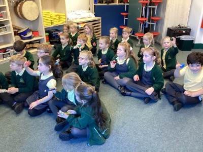 Our topic this half term in Music is ‘Christmas is Coming!’ This week we enjoyed listening to Sleigh Ride by Leroy Anderson, identifying the steady beat. We began by tapping the beat on our thighs. When we were confident with the steady beat we used musical instruments. Half the class used wood blocks, wooden agogôs and guiros to represent the horses’ hooves whilst the other half shook bells to represent the bells on the sleigh. It was lots of fun!