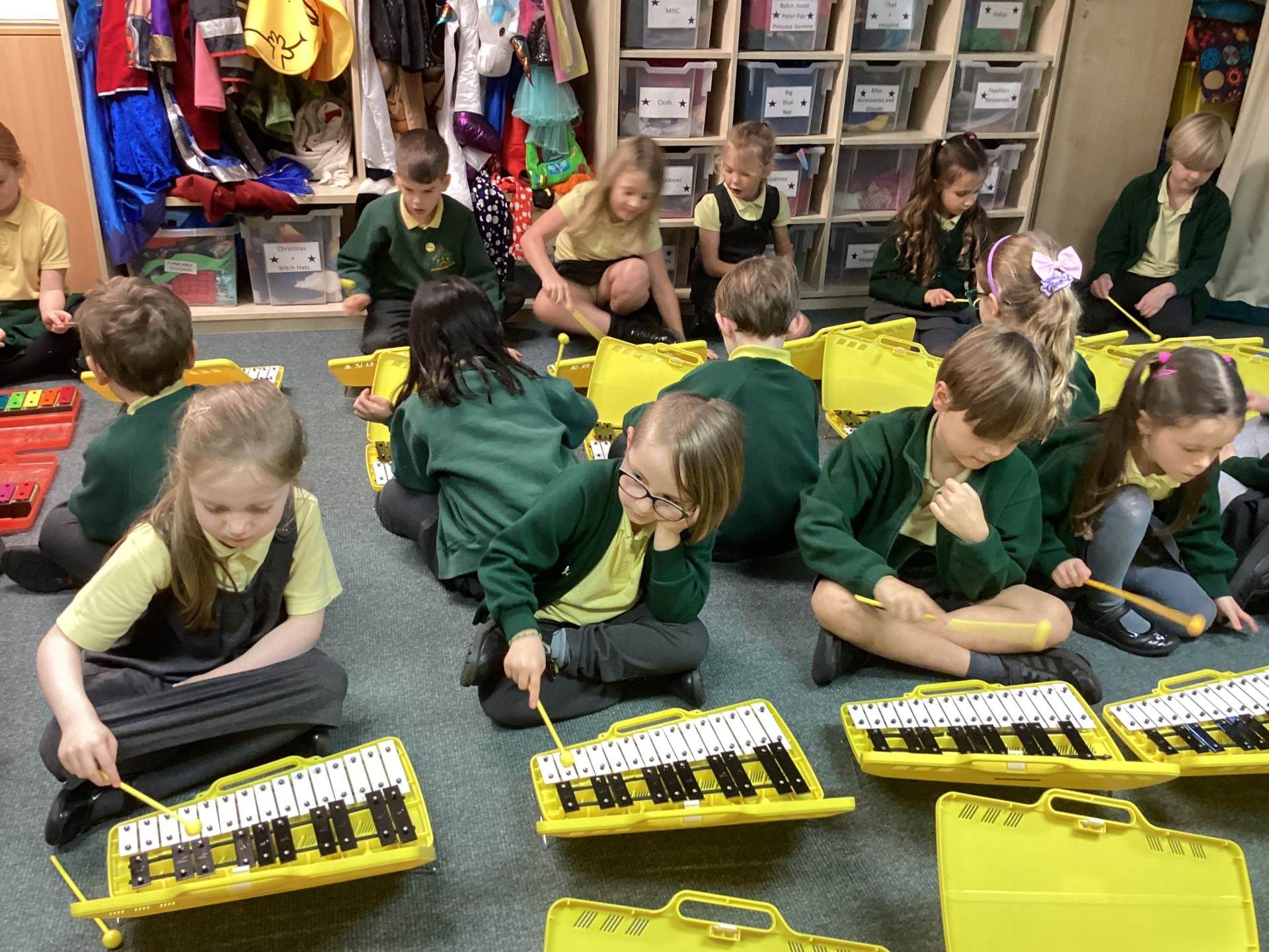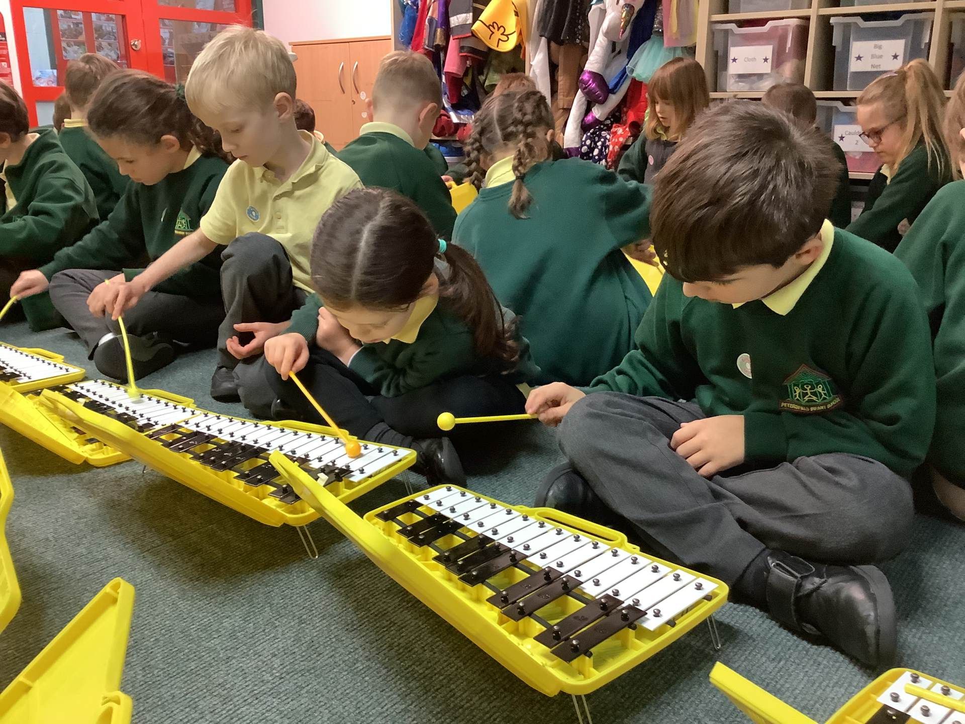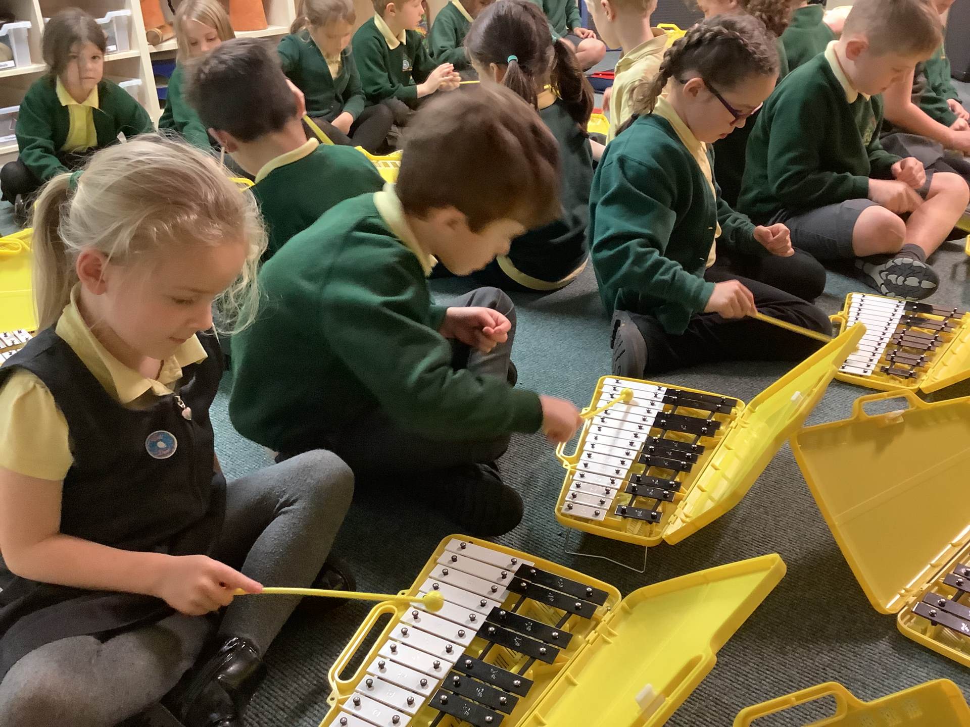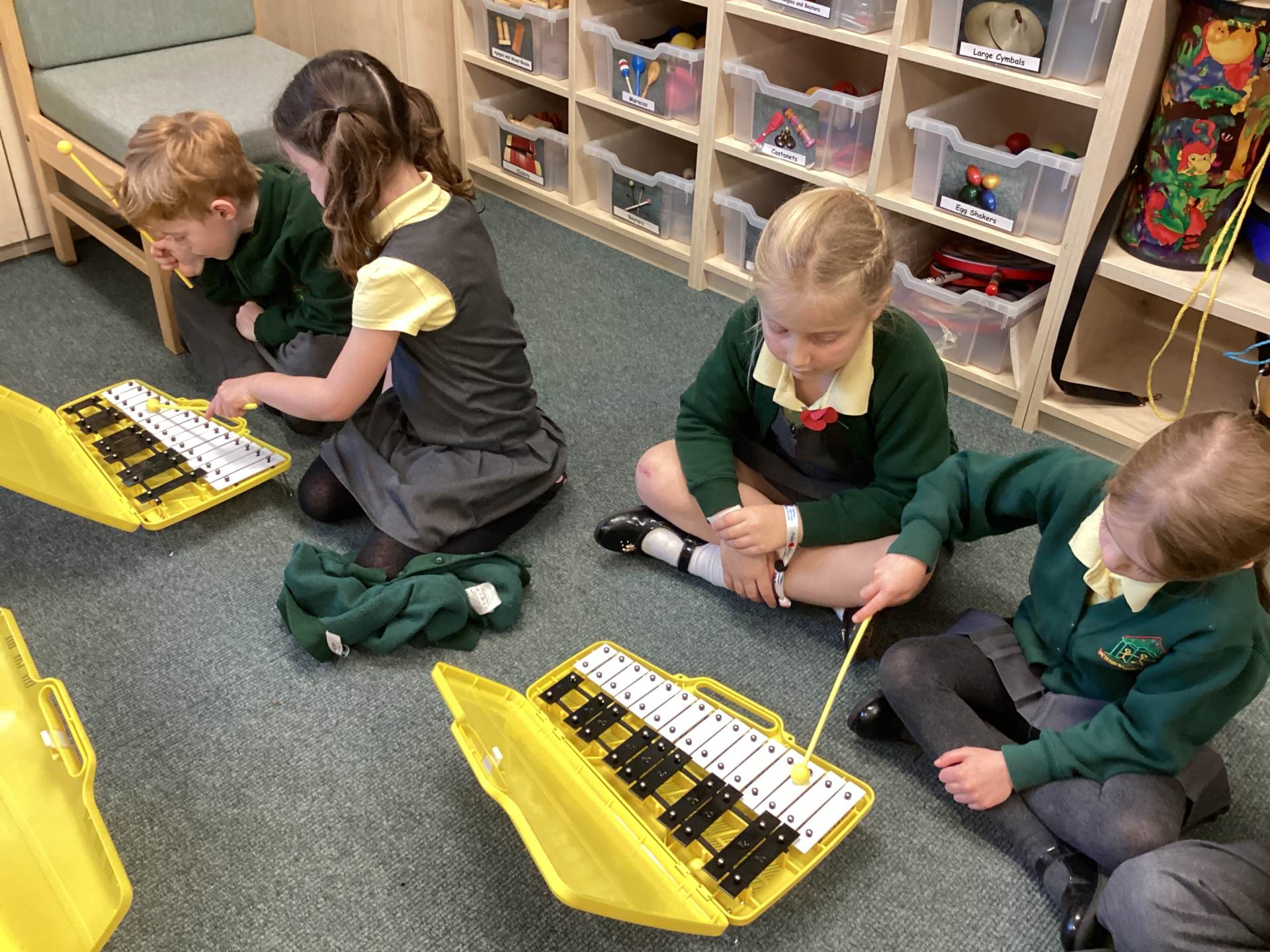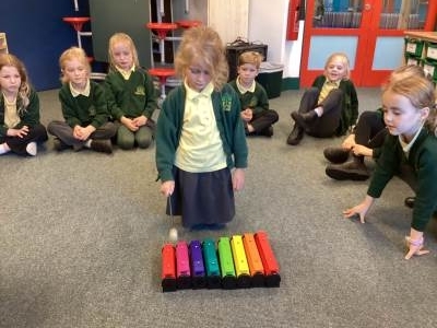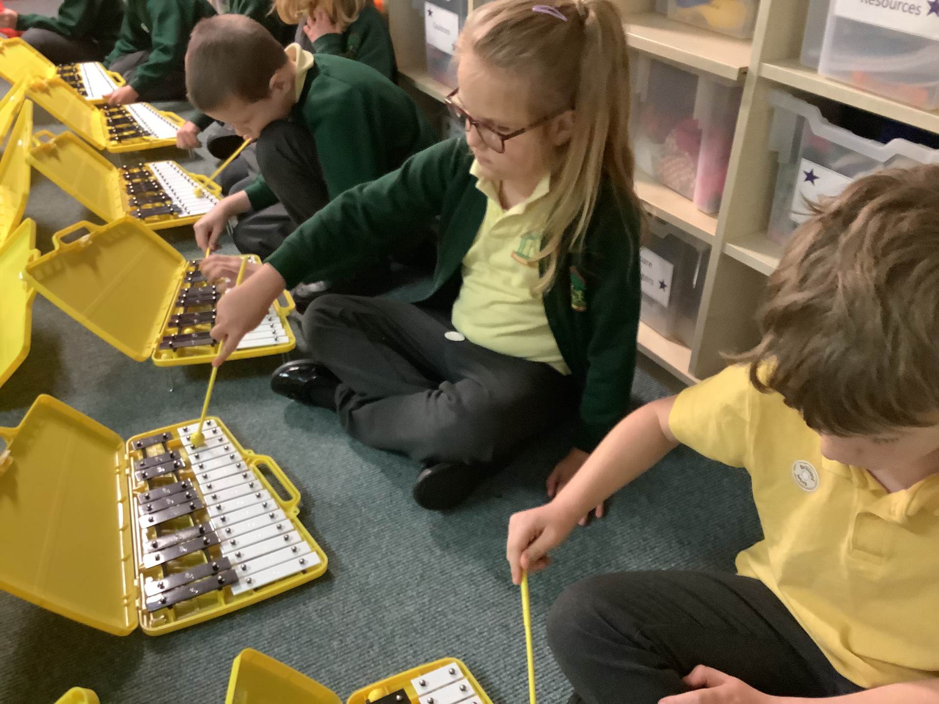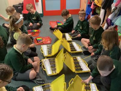 In Music, we had fun playing the glockenspiels. We discovered that the longer bars on the left make the lower notes and explored different ways to play, such as climbing up and down the notes, sliding between them, and even jumping over some!