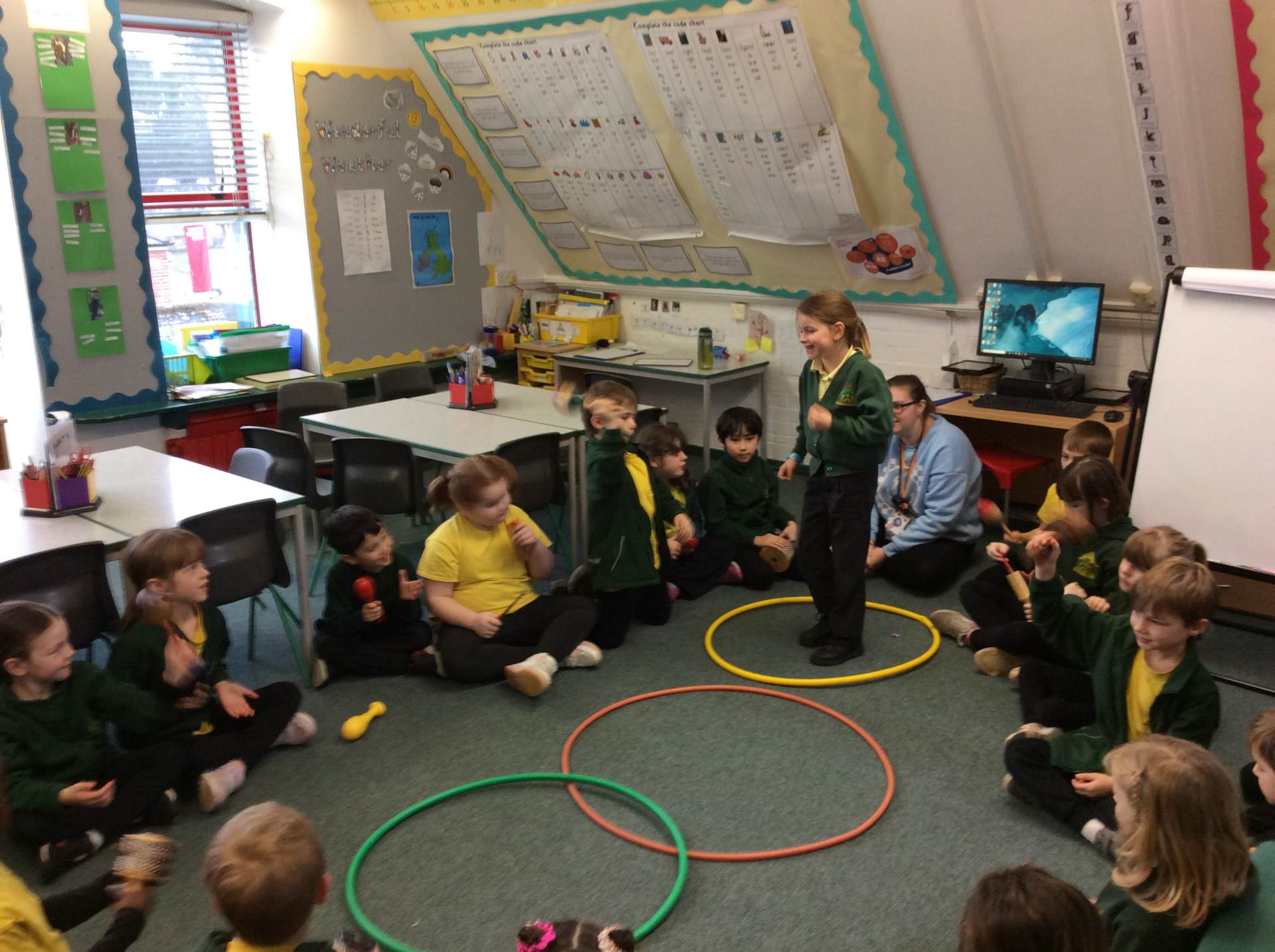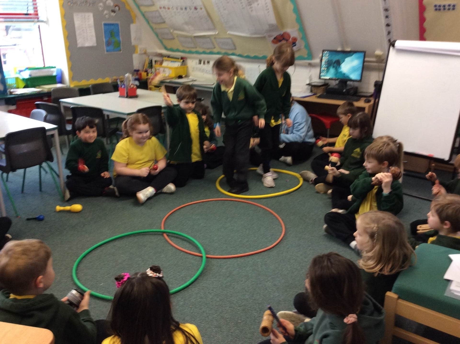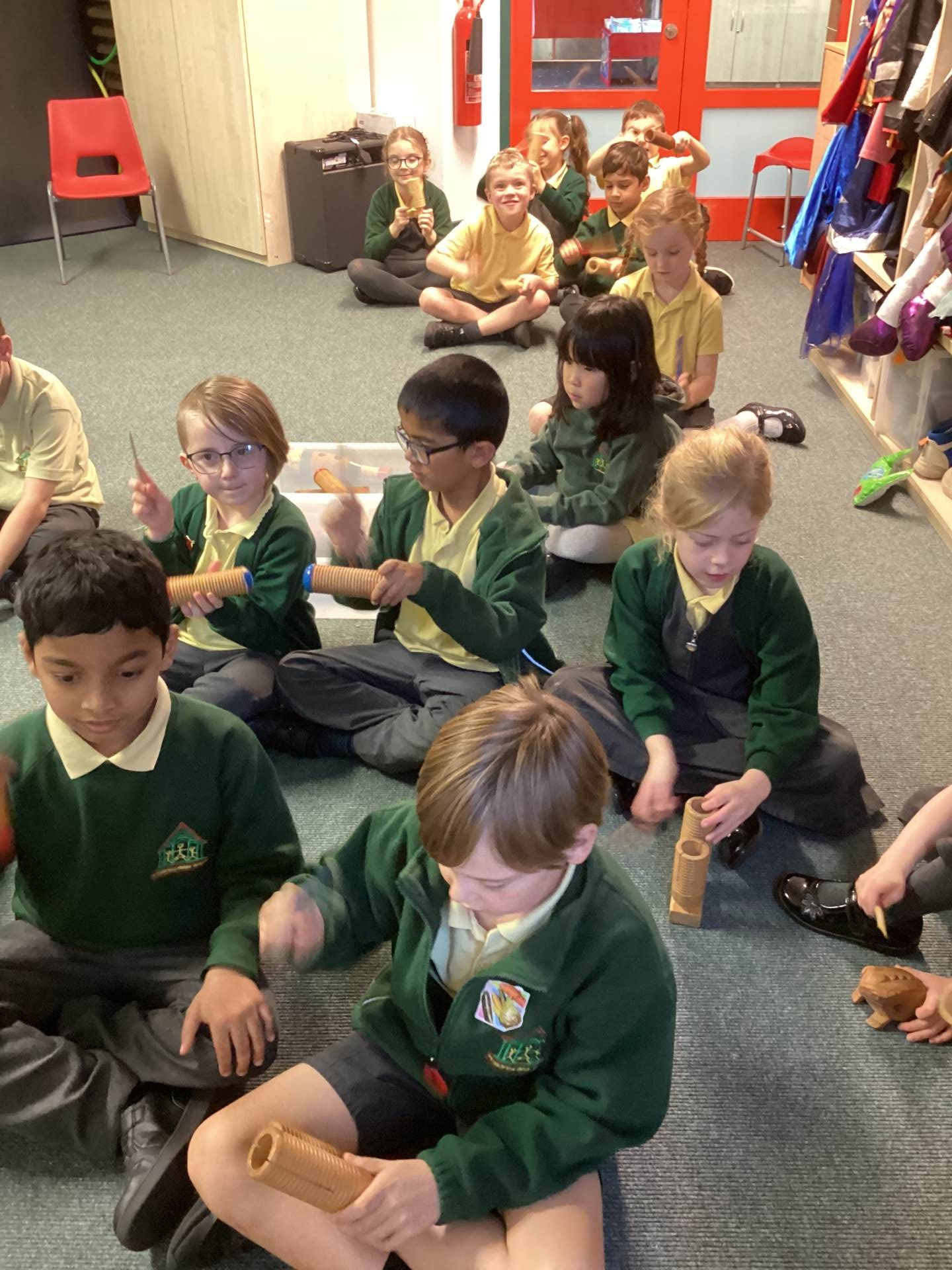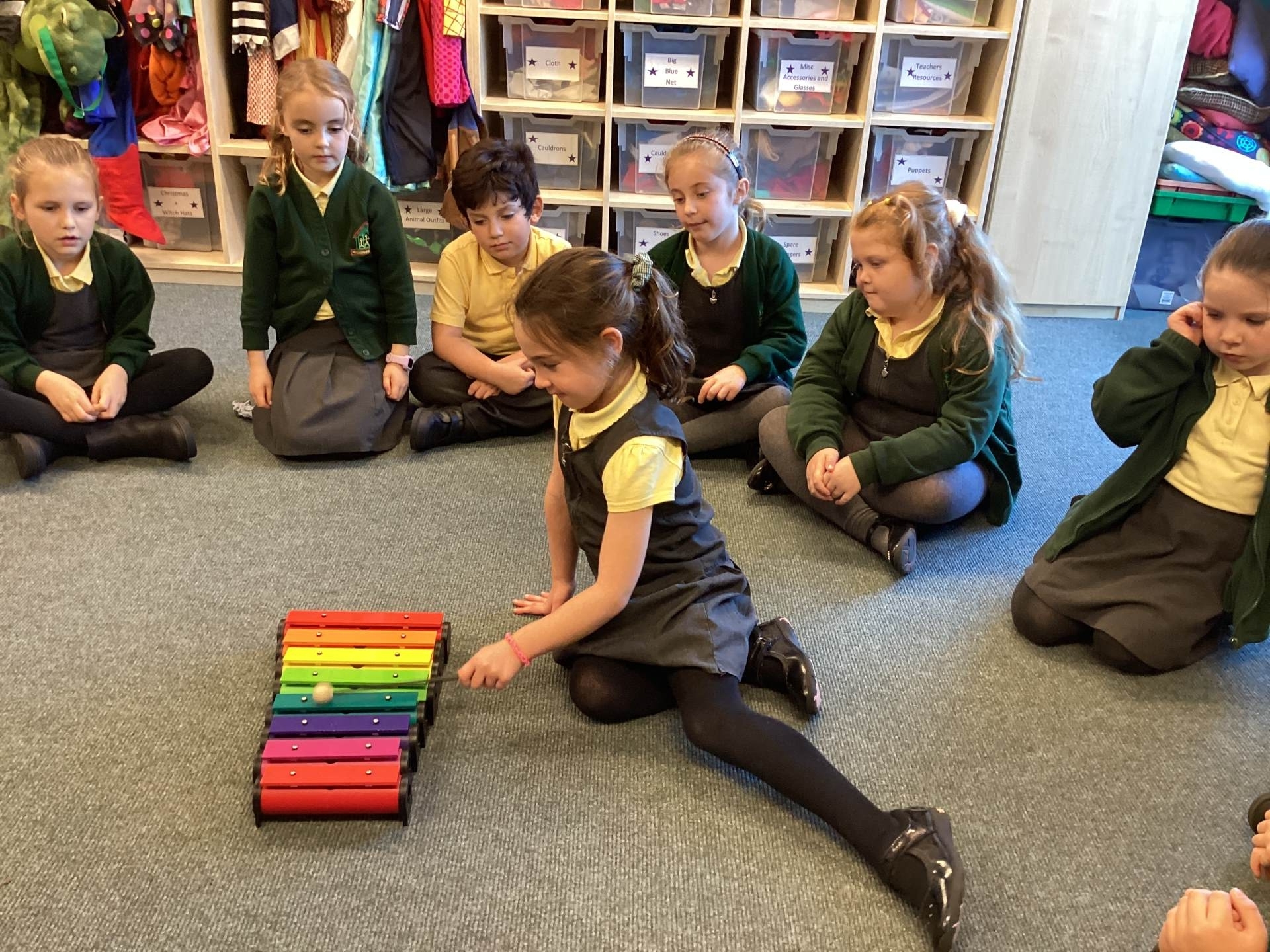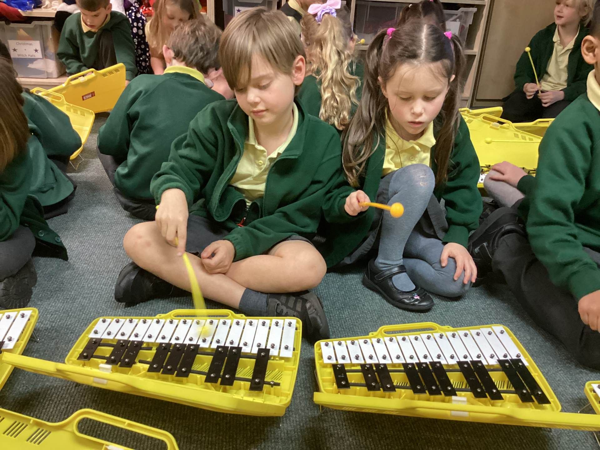 In Music, we had fun playing the glockenspiels. We discovered that the longer bars on the left make the lower notes and explored different ways to play, such as climbing up and down the notes, sliding between them, and even jumping over some!