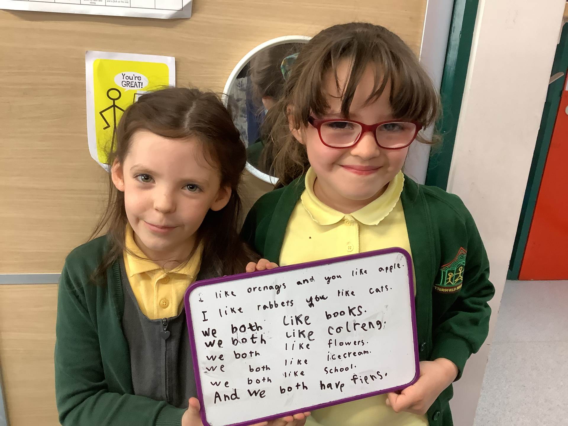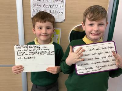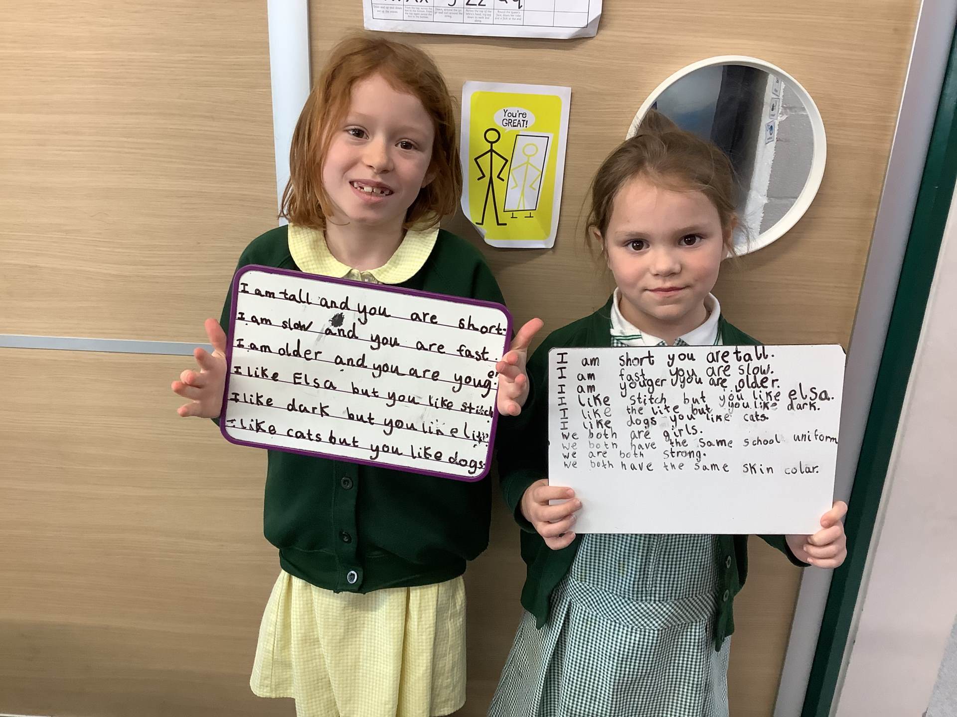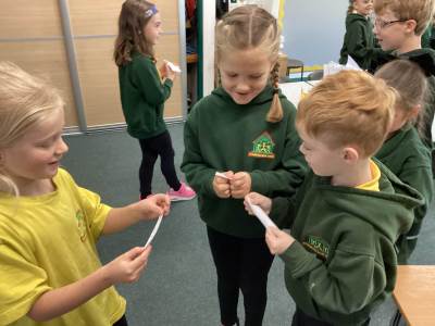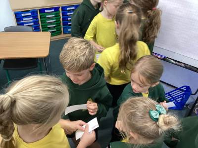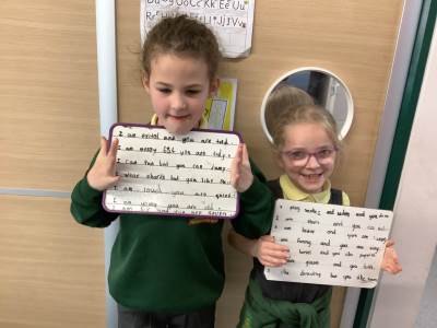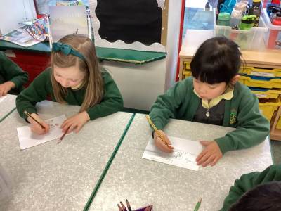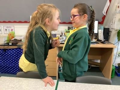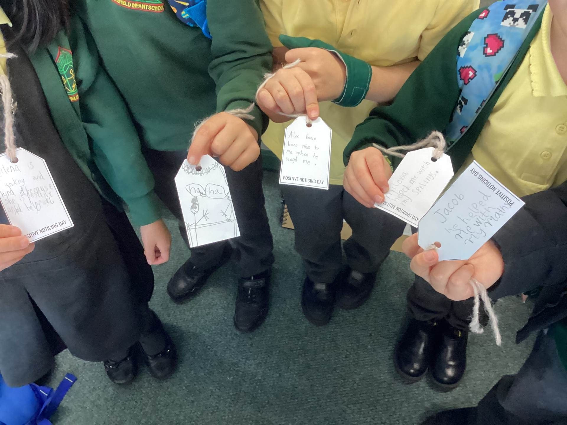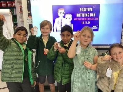Wednesday was Positive Noticing Day. We were all spotted making the right choices - being kind, respectful to our friends and adults as well as showing resilience in our learning. We enjoyed writing a label for our friend on which we described what positive things we have noticed about them. We wore the labels home with pride.