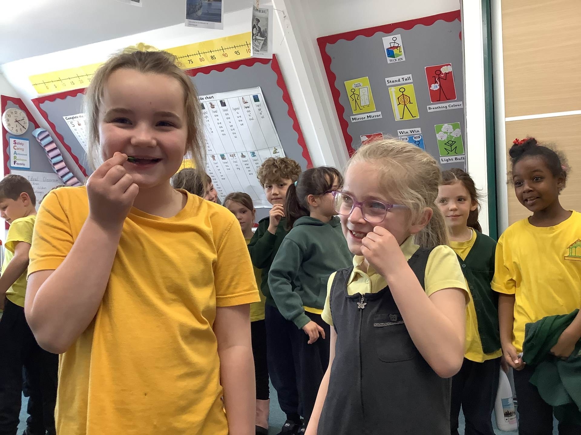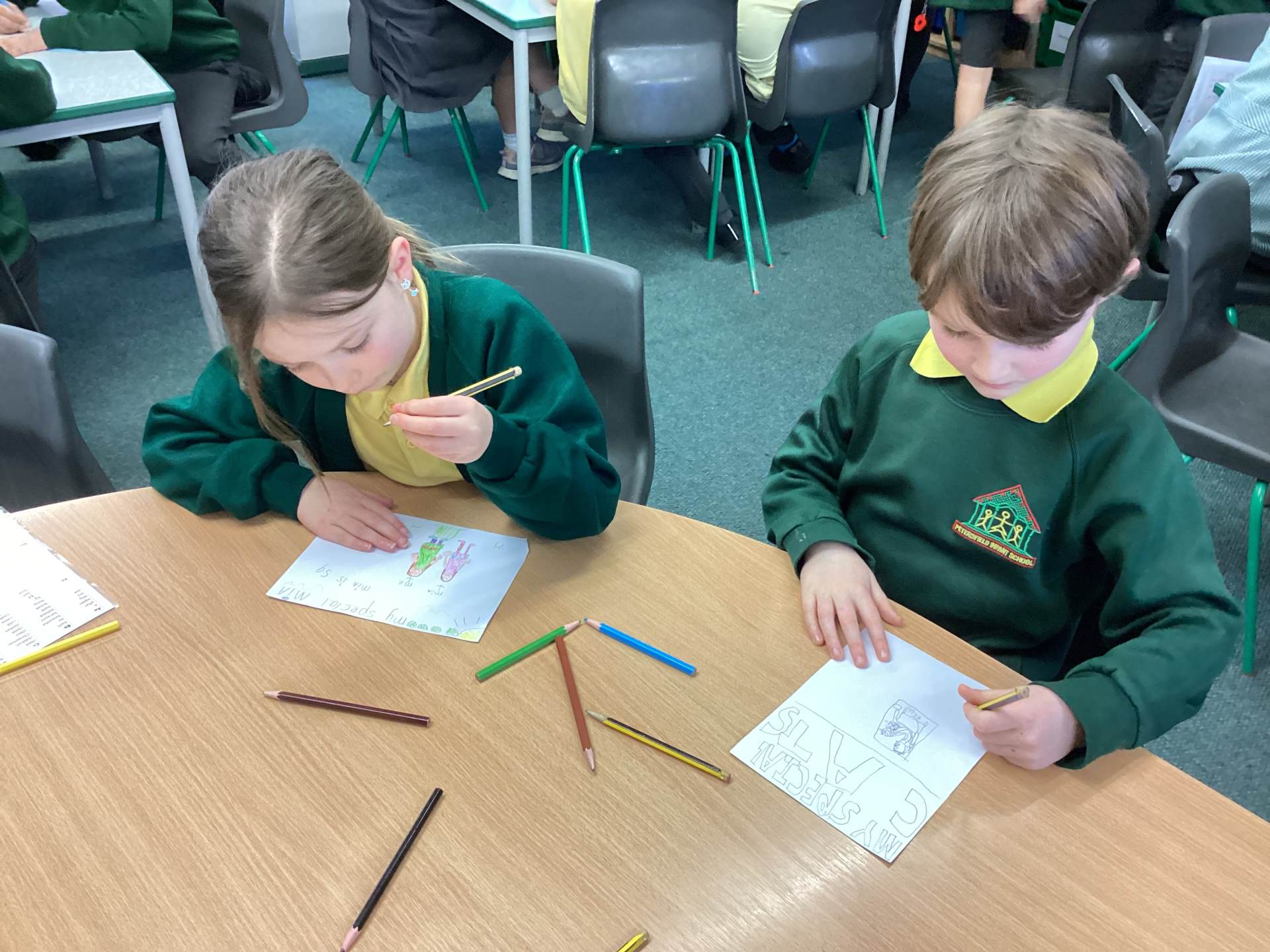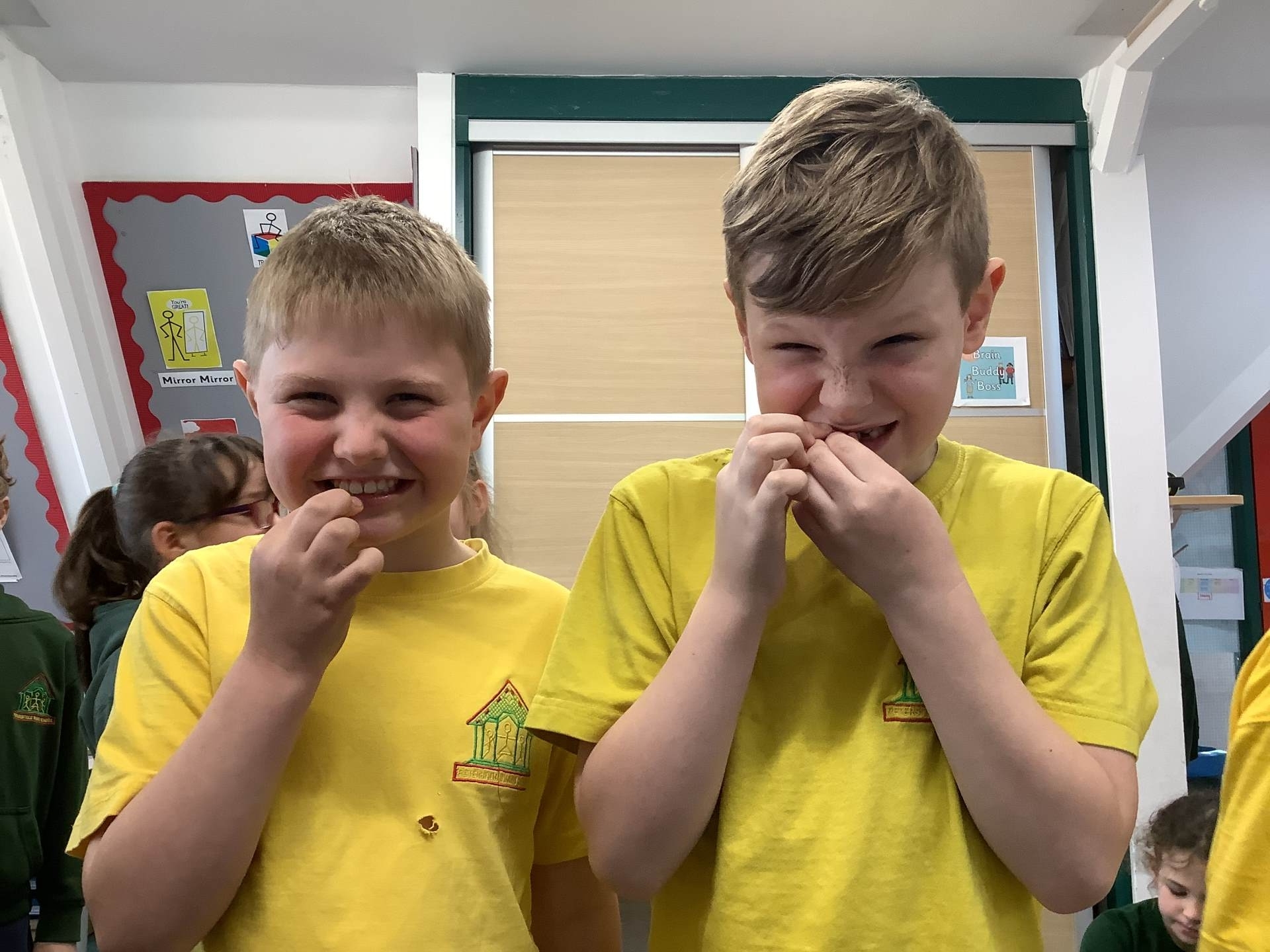 Wednesday was Positive Noticing Day. We were all spotted making the right choices - being kind, respectful to our friends and adults as well as showing resilience in our learning. We enjoyed writing a label for our friend on which we described what positive things we have noticed about them. We wore the labels home with pride.