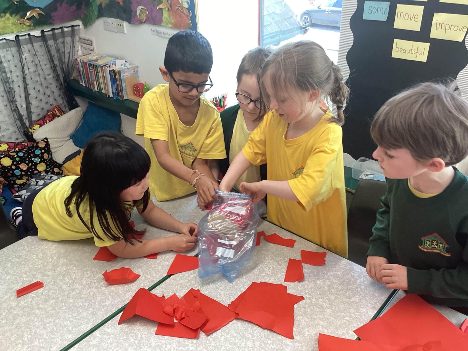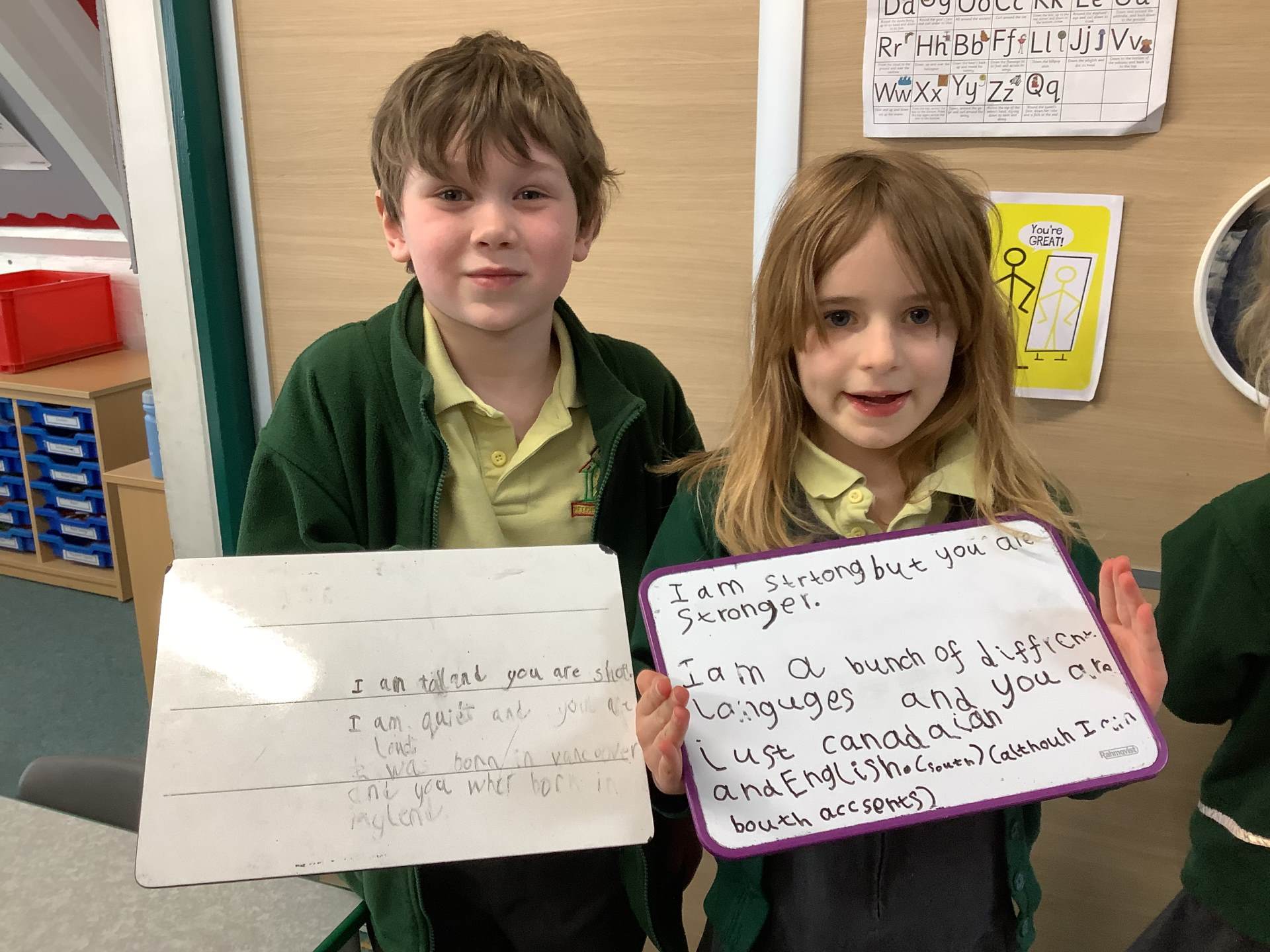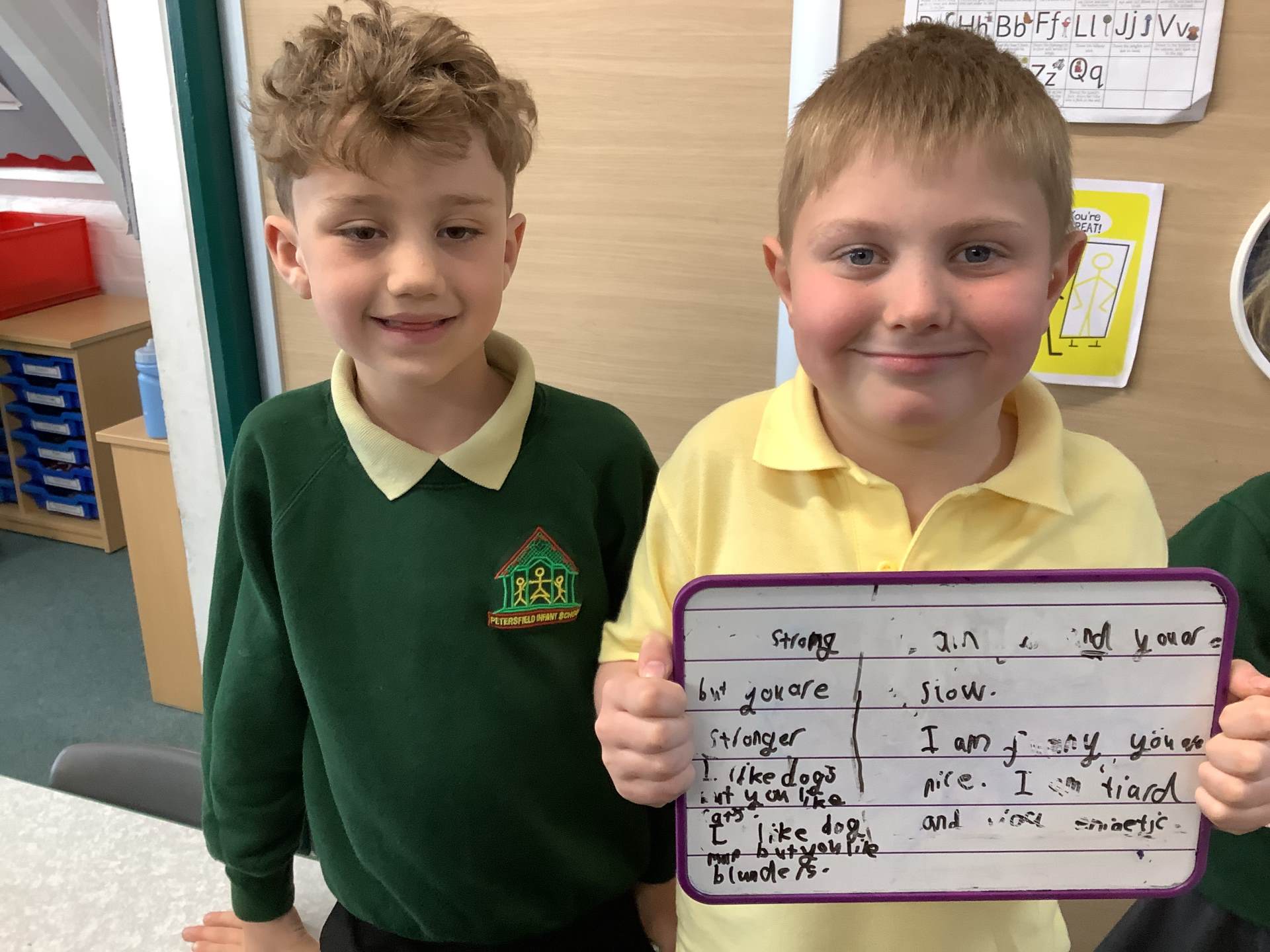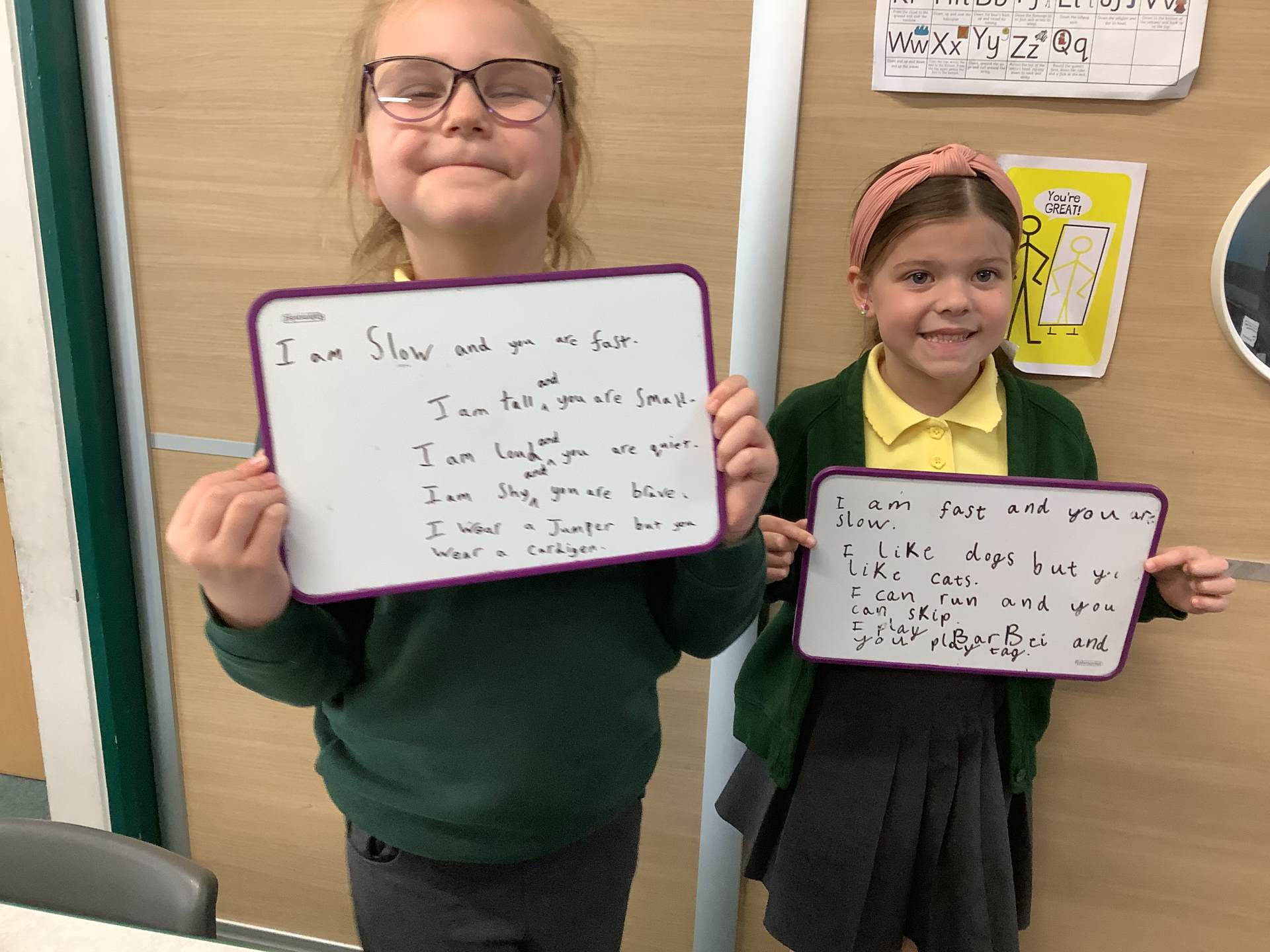 Wednesday was Positive Noticing Day. We were all spotted making the right choices - being kind, respectful to our friends and adults as well as showing resilience in our learning. We enjoyed writing a label for our friend on which we described what positive things we have noticed about them. We wore the labels home with pride.