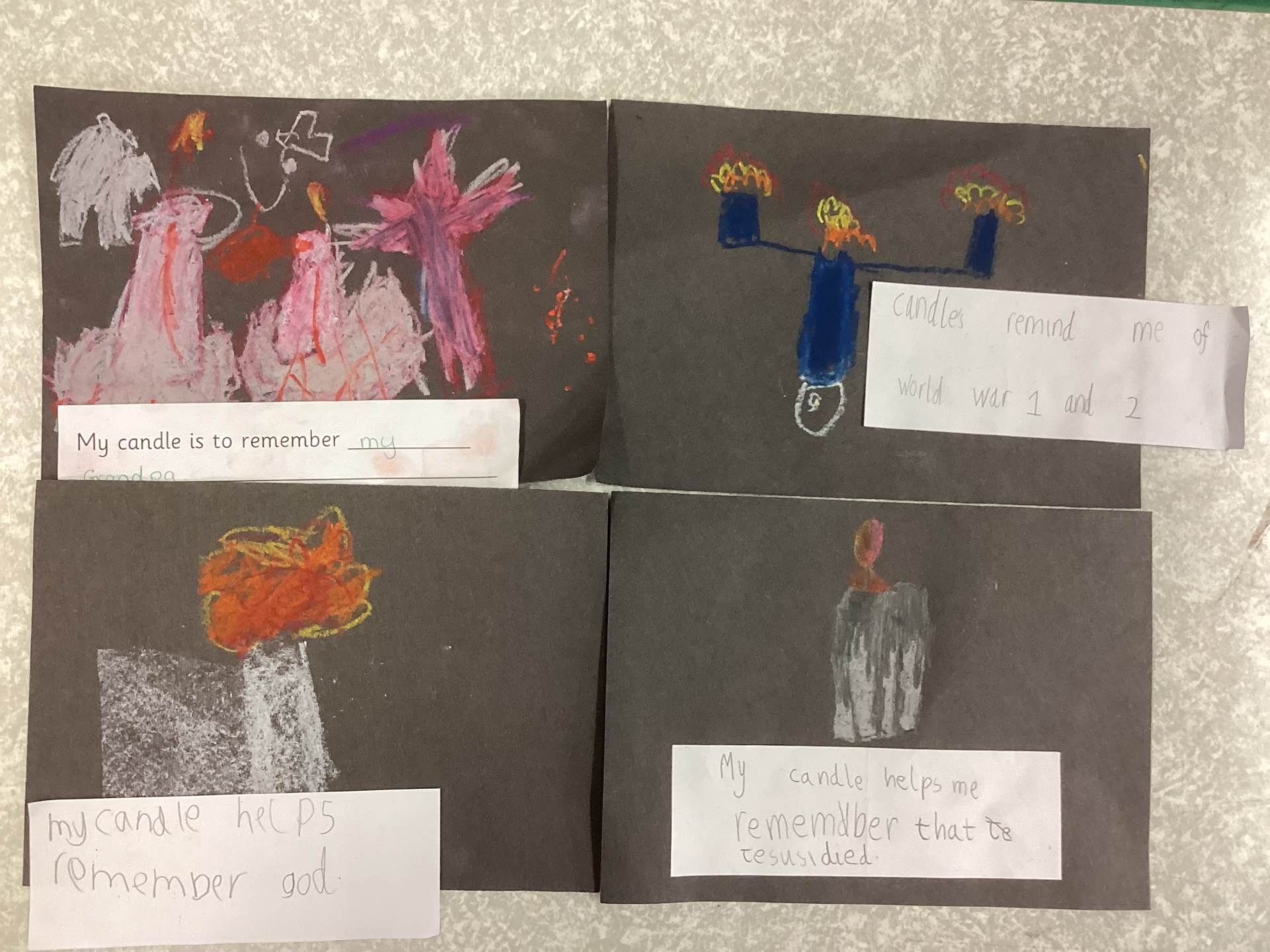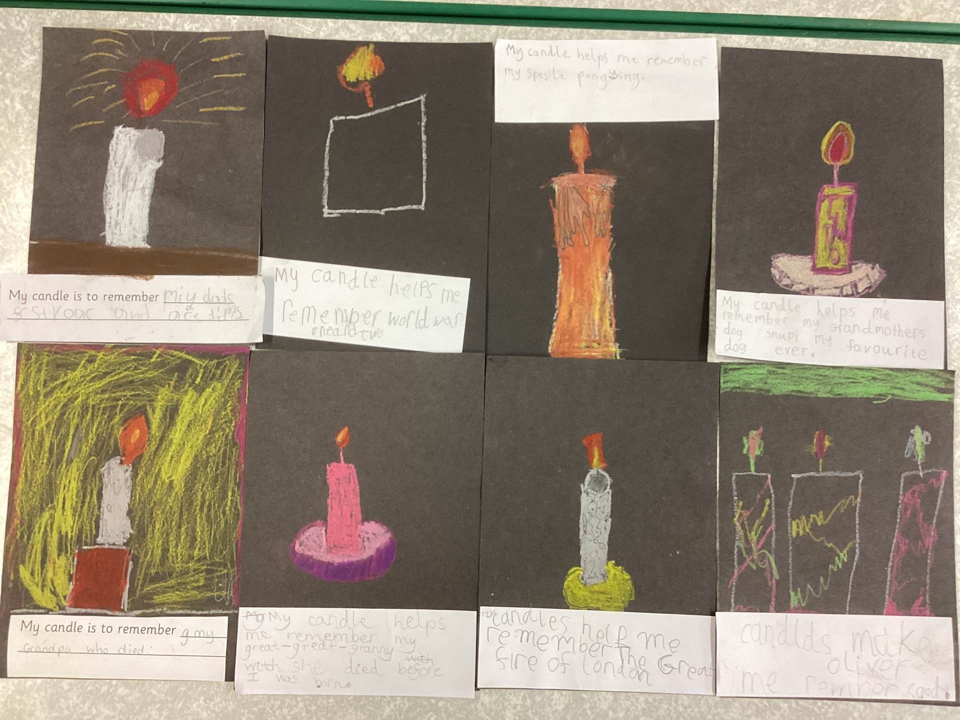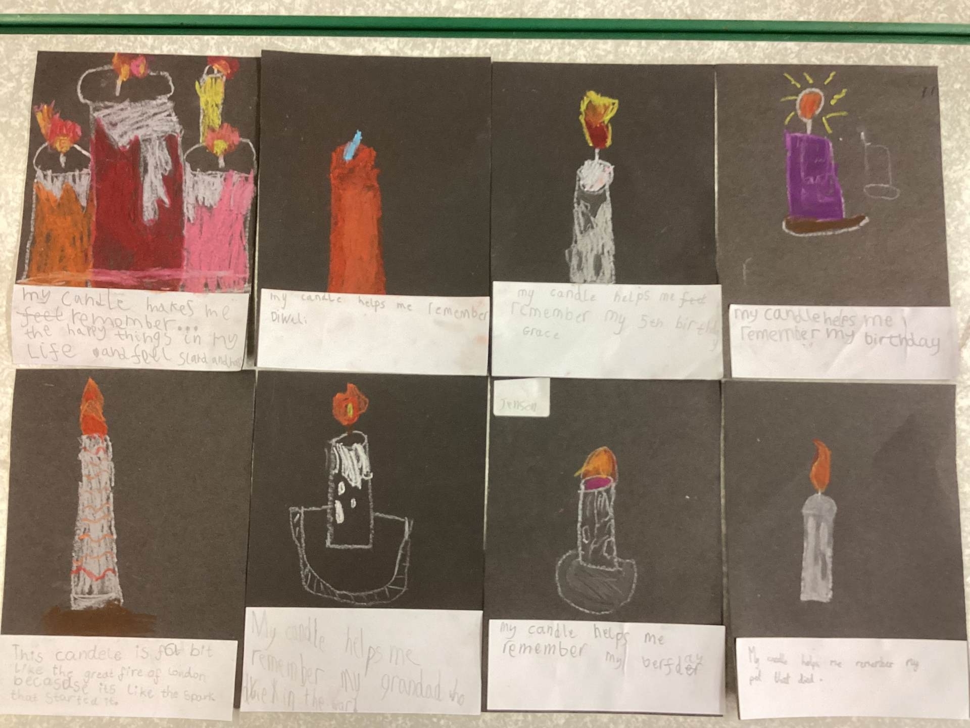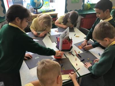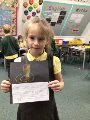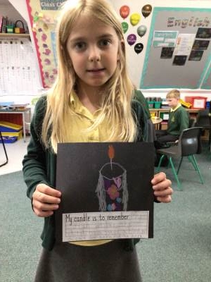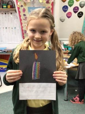 On Tuesday, we observed a two-minute silence to remember those who have died in wars. In RE, we learnt that candles can also be used as a symbol of remembrance. We lit a candle, reflected quietly on people and animals we wanted to remember and then created beautiful wax pastel drawings of candles.