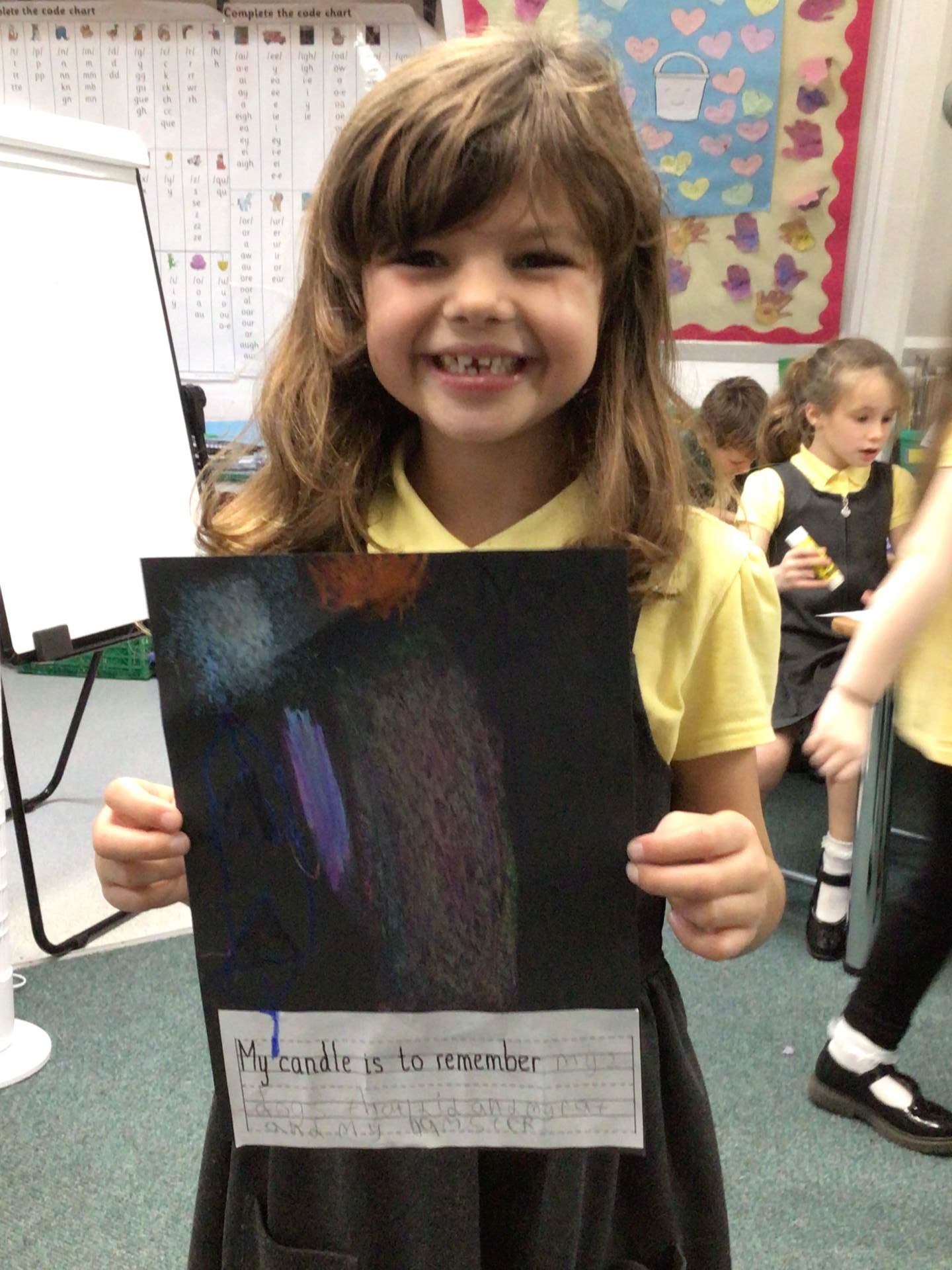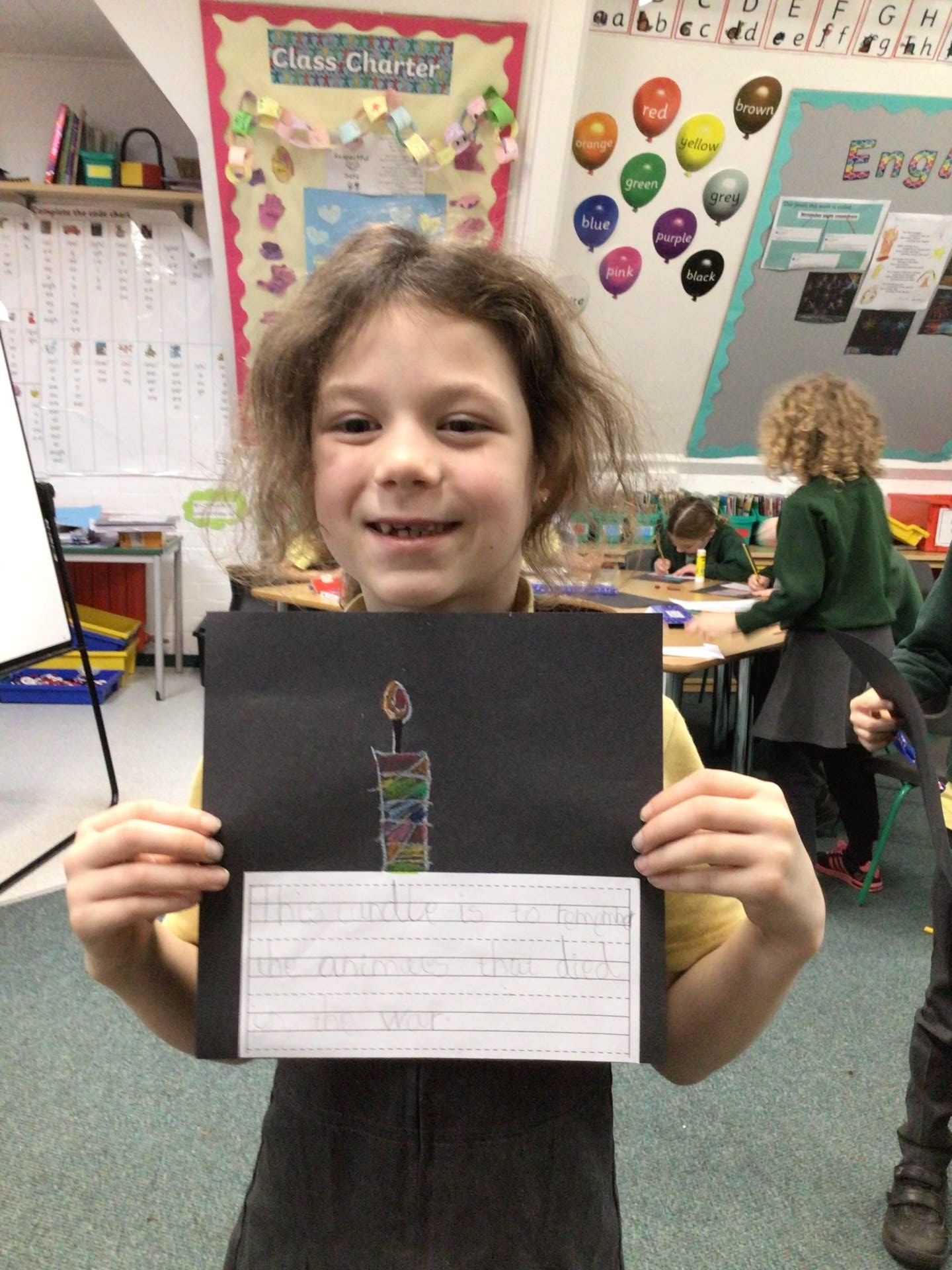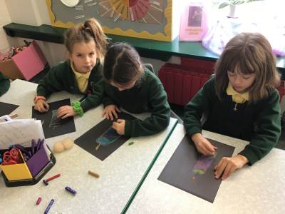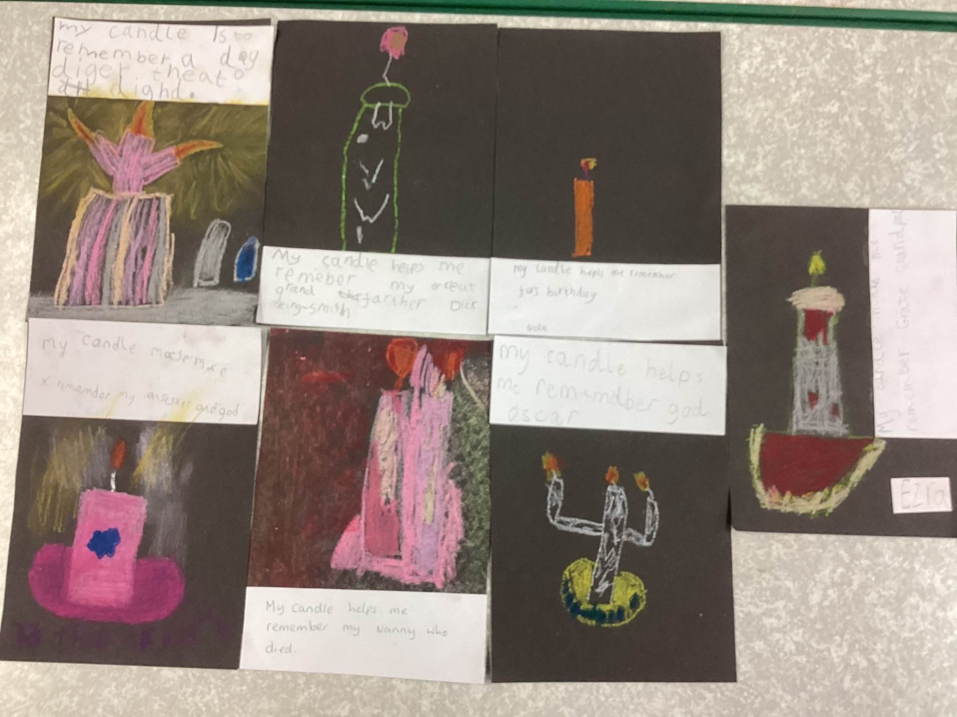 On Tuesday, we observed a two-minute silence to remember those who have died in wars. In RE, we learnt that candles can also be used as a symbol of remembrance. We lit a candle, reflected quietly on people and animals we wanted to remember and then created beautiful wax pastel drawings of candles.