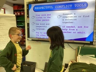 Did you know that it’s Anti-bullying week? The Anti-bullying Alliance chose the theme of ‘respect’ this year. We used class discussions and drama to practice some respectful tools we could use during a conflict. We all decided that the tools matched some of our Trick Box tricks, such as Win Win and Breathing Colour.