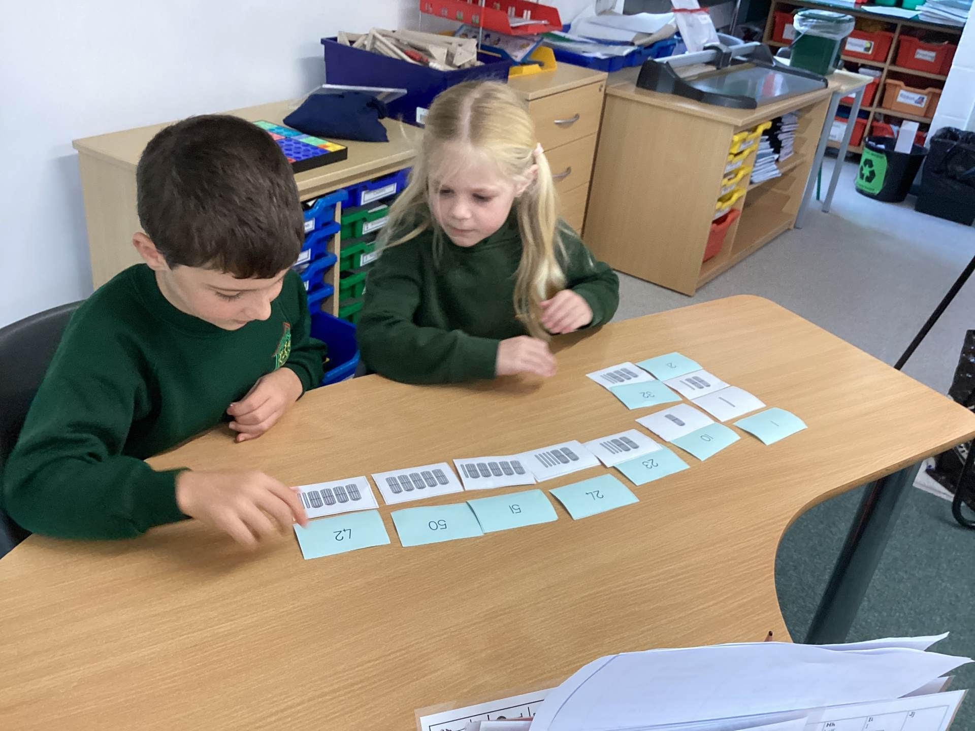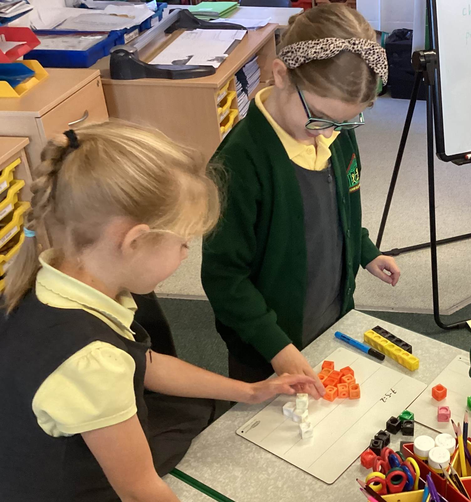 In Maths, we have been learning about subtraction as difference and solving problems such as, “A teacher has 8 children and 2 pencils. How many more pencils will she need?” We have used resources including multilink and Cuisenaire rods to support our learning.