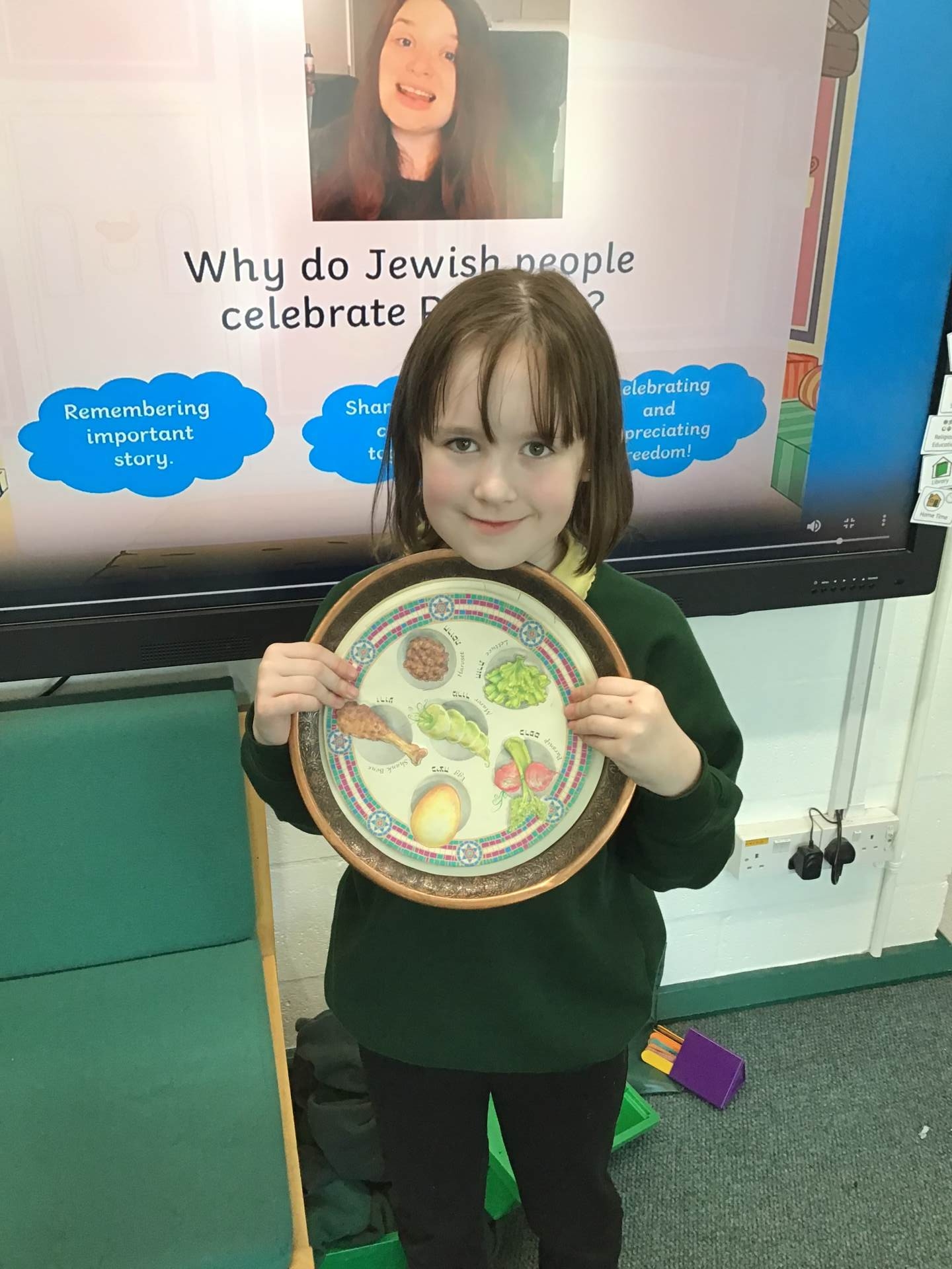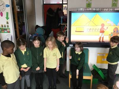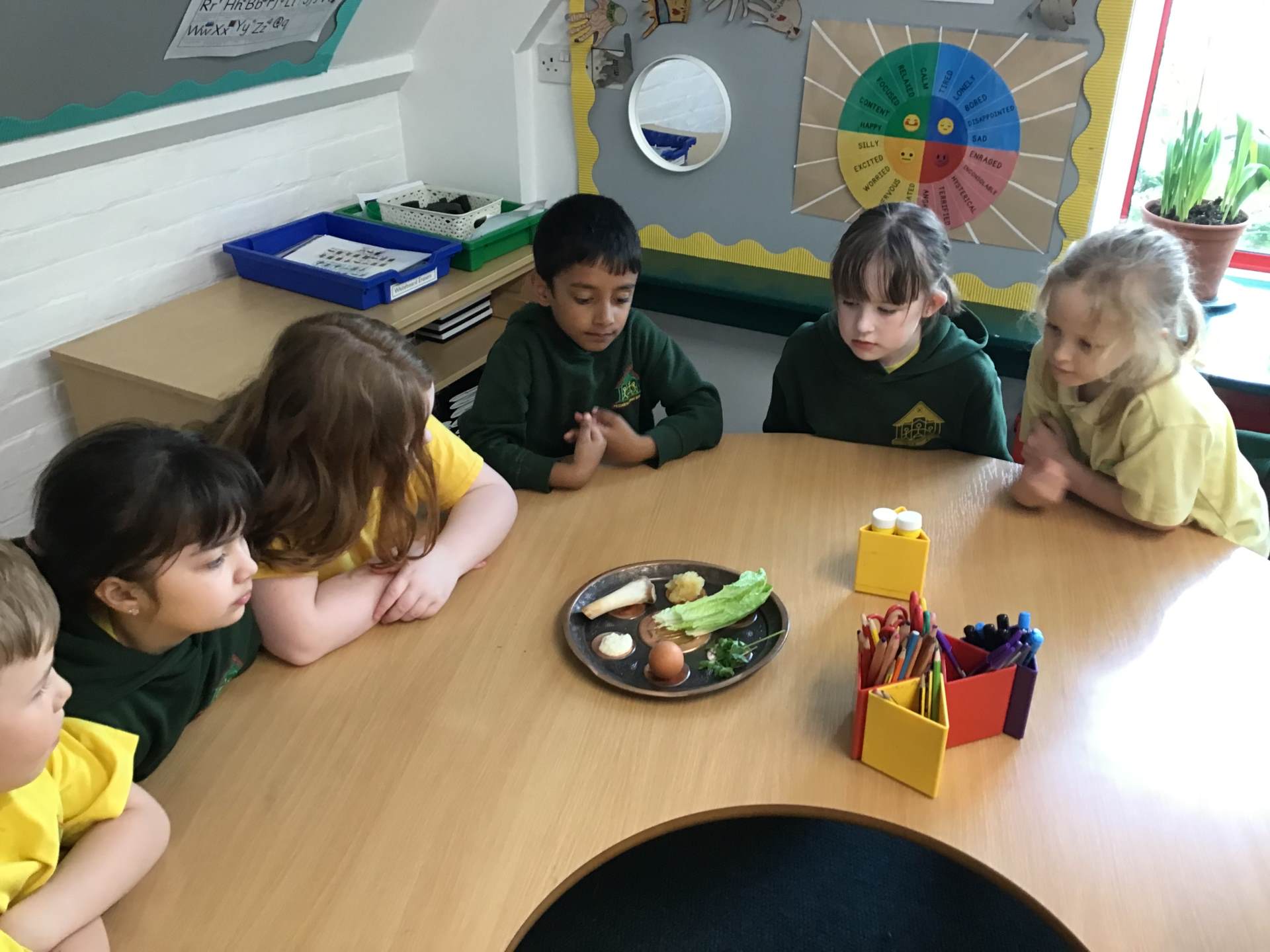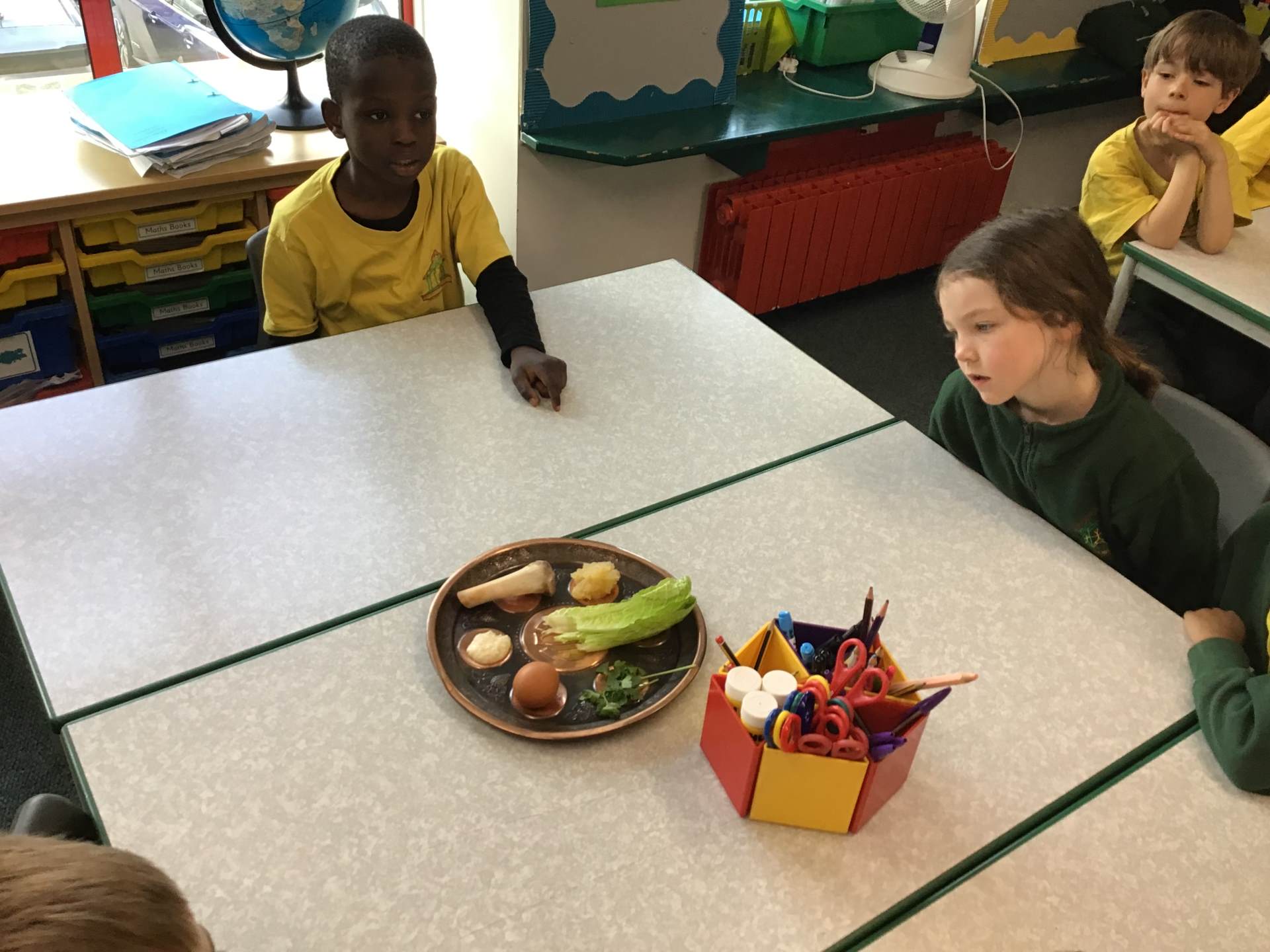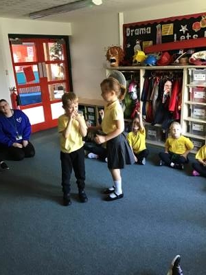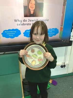 In RE one class started our new topic on ‘Passover’. They used drama to learn about the story. They learnt that Jews use a special Seder plate to help them remember all the parts of the story.