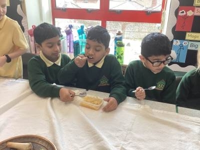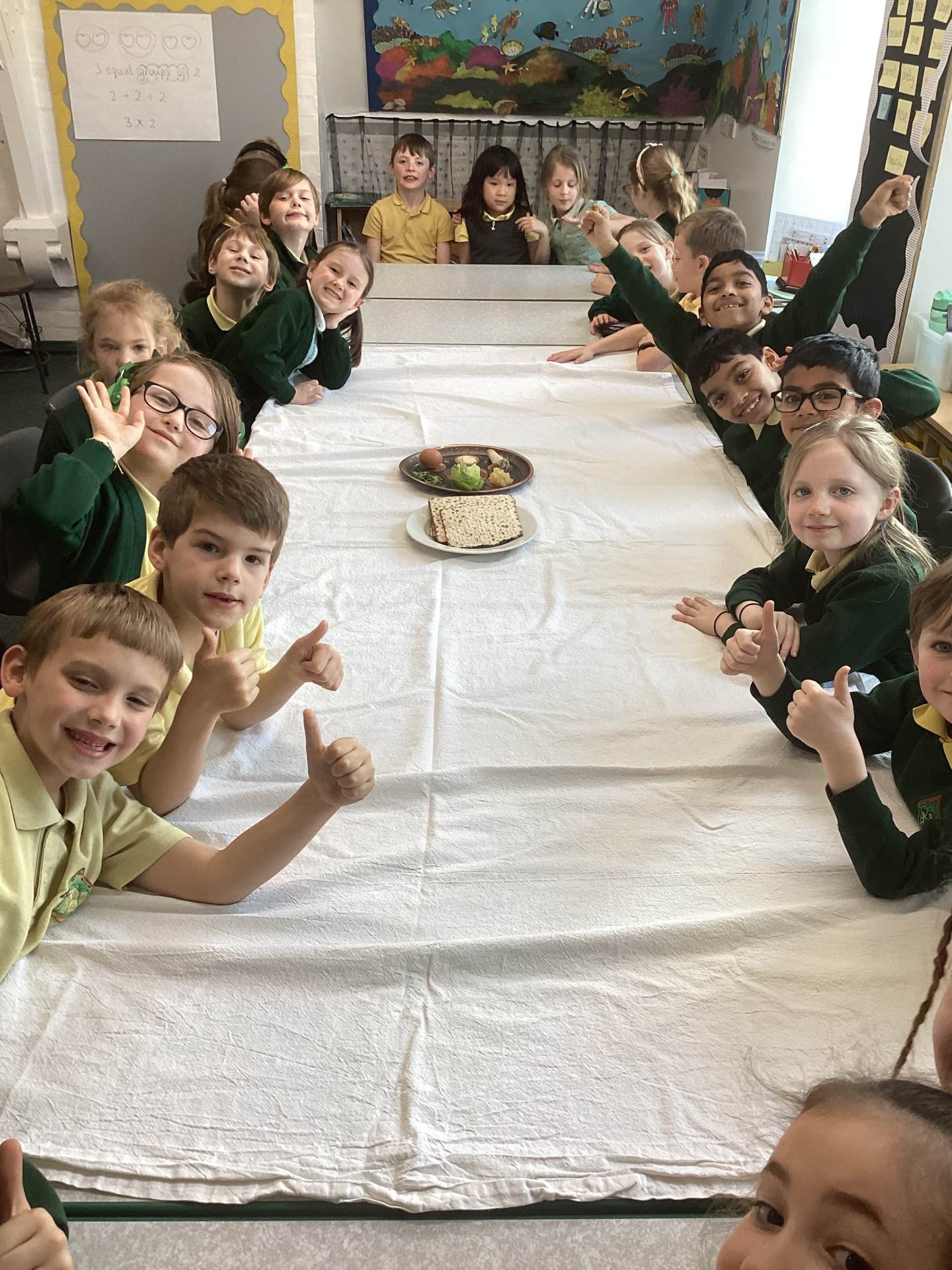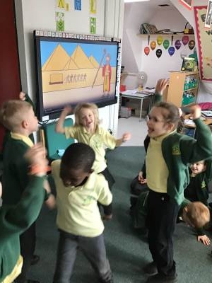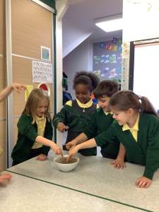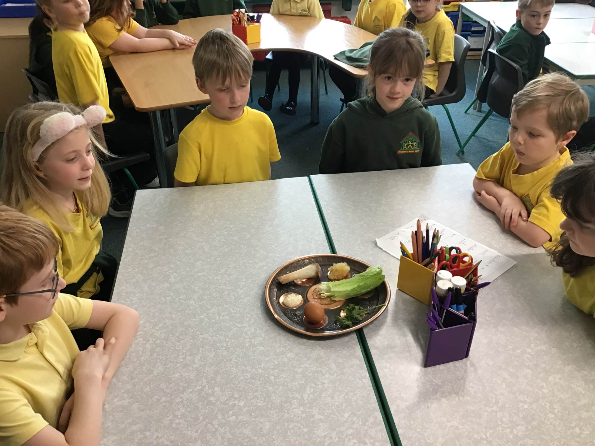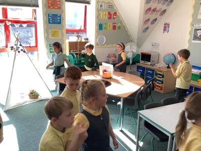 In RE one class started our new topic on ‘Passover’. They used drama to learn about the story. They learnt that Jews use a special Seder plate to help them remember all the parts of the story.