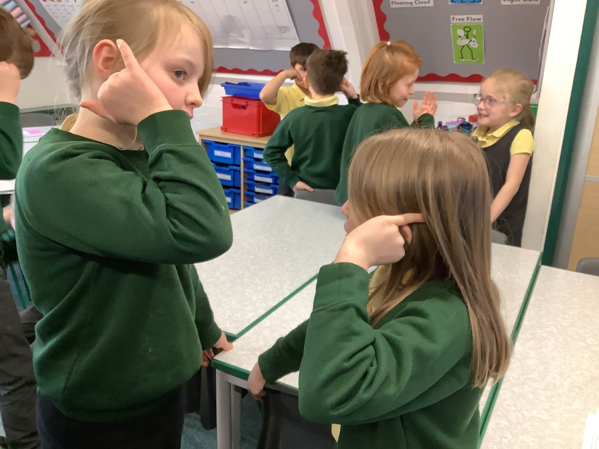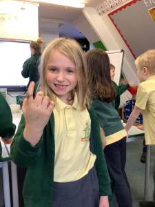 We were able to get outside for our science lesson this week as we were thinking about how exercise affects our heart beats. We carried out a variety of exercises – some slow and some fast, and measured our pulse to see how our heart beats differed. We did find taking our pulse difficult, but we were resilient and kept trying.