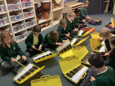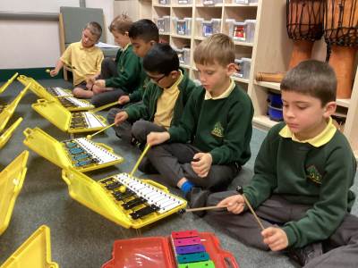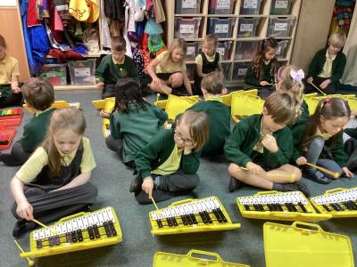 In Music, we were using glockenspiels to learn to play more musical notes. We are starting to learn how to play tunes using both high and low notes. As well as this we are practising for our Christmas concert!