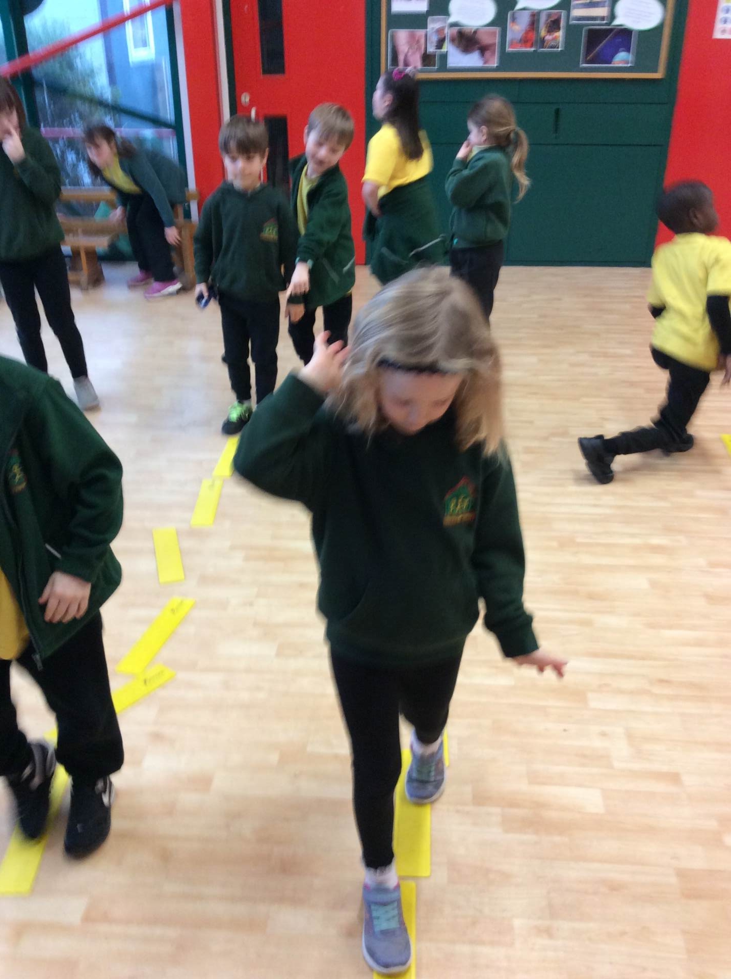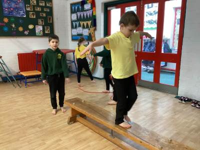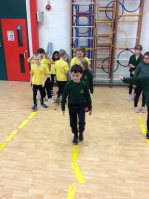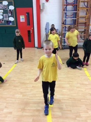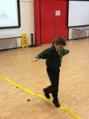 In P.E. we continued to learn about balance. We challenged ourselves to walk along the line backwards and forwards. We found walking backwards quite tricky.
