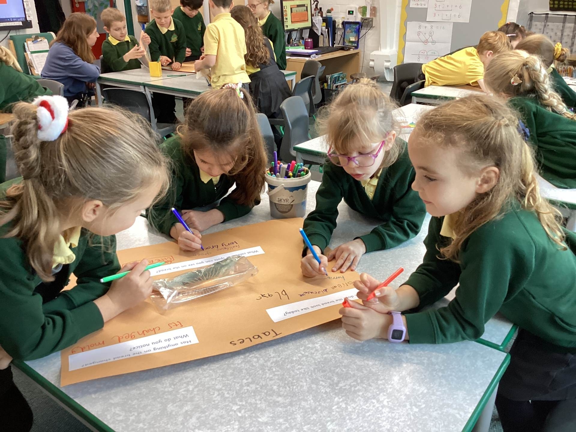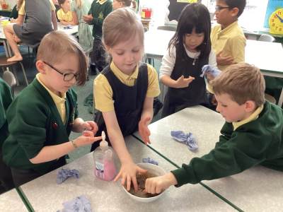 In science we checked our mouldy bread investigation to see where the most germs had grown. The children were amazed (and a little horrified!) to discover that the iPad and the classroom table were the “mouldiest”, which helped us talk about why washing our hands and cleaning shared equipment is so important.