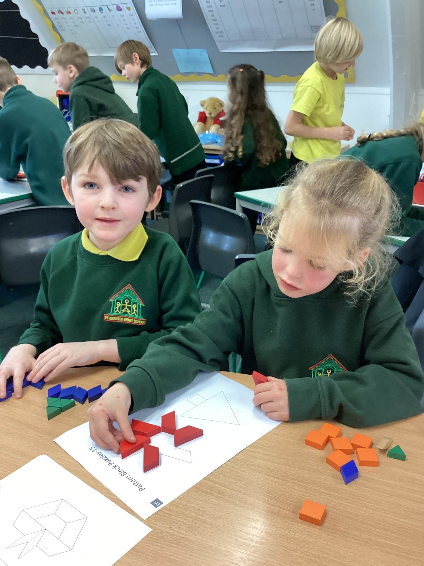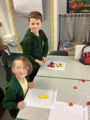 This week we looked at different 2D shapes in Maths. We have learned what they are all called and we can now name their properties. Ask us how many sides and how many vertices a shape has! We are sure you’ll be wowed by our knowledge!