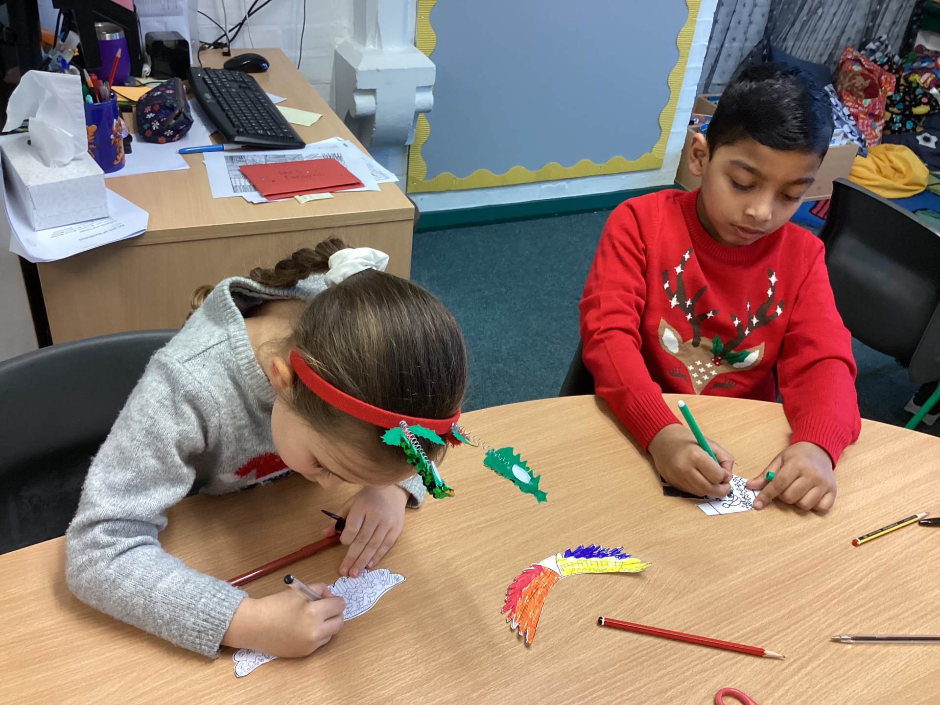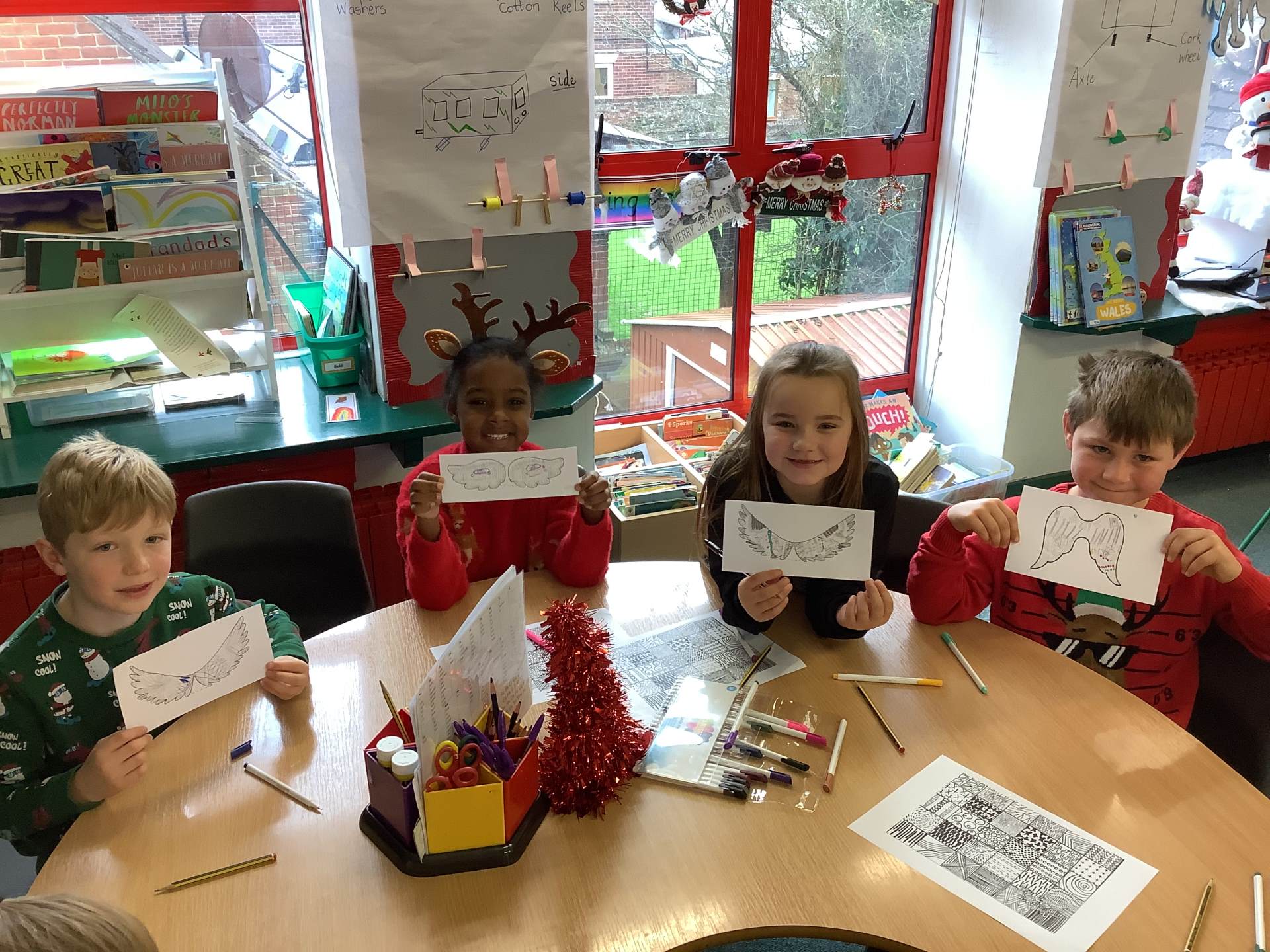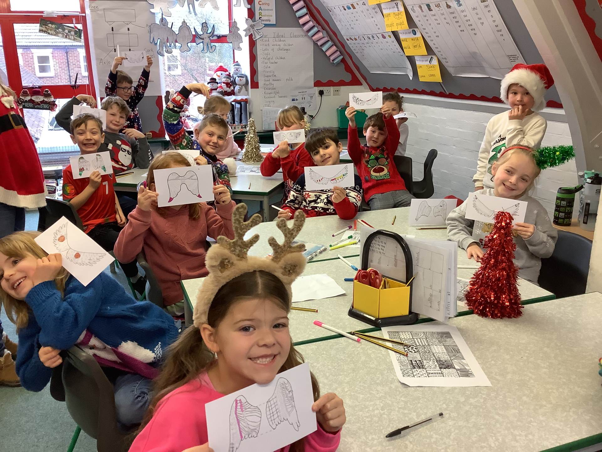 We thoroughly enjoyed Christmas Jumper Day and Art Day! In art, we revisited the paintings of Fra Angelico, particularly his colourful angel wings. We experimented with various materials to create 3D angel decorations, focusing on making them look like ourselves. When we bring them home, be sure to ask us why our angels look the way they do and how they represent us!