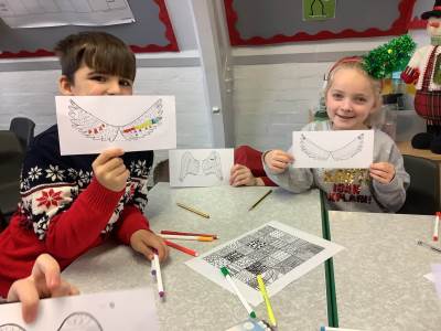 In Art, we have been using our mark-making and portrait skills to draw angels. We worked hard to ensure that our wings included lots of detail.