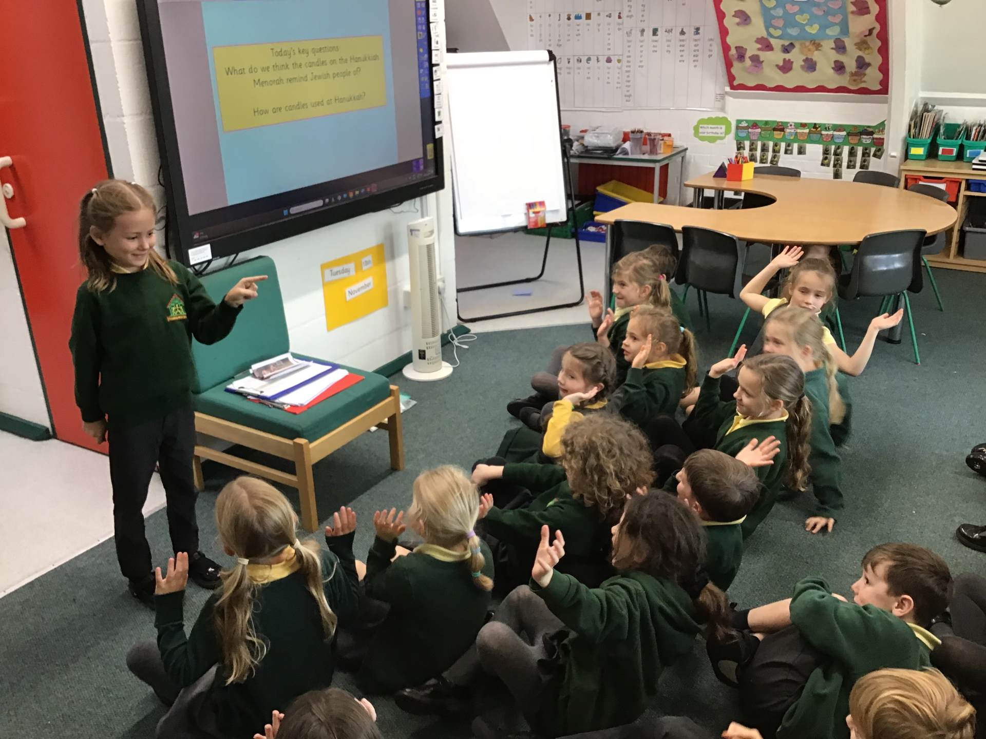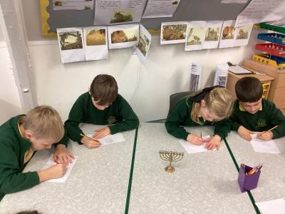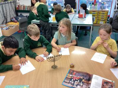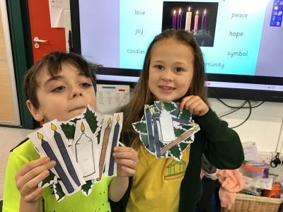 In RE we have been learning how candles are used as important symbols in different religions. We discovered that Jewish people celebrate Hanukkah by lighting a Hanukkiah to remember a special miracle, and that Christians use an Advent wreath to help them get ready for Christmas by thinking about hope, peace, love and joy. The children asked thoughtful questions and explored how different communities use candlelight to remember, celebrate and feel connected.