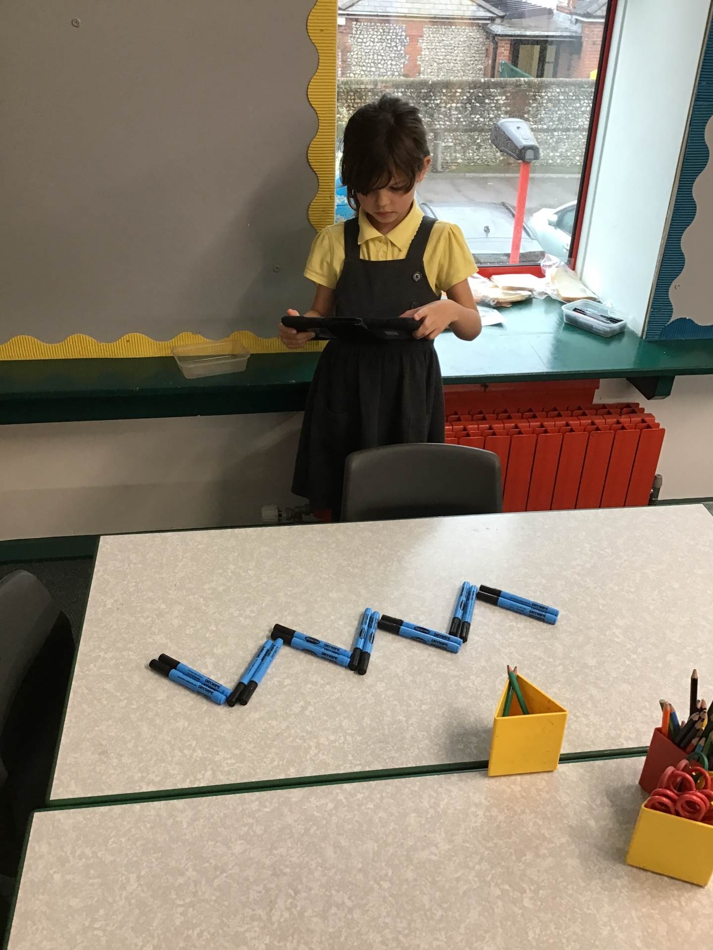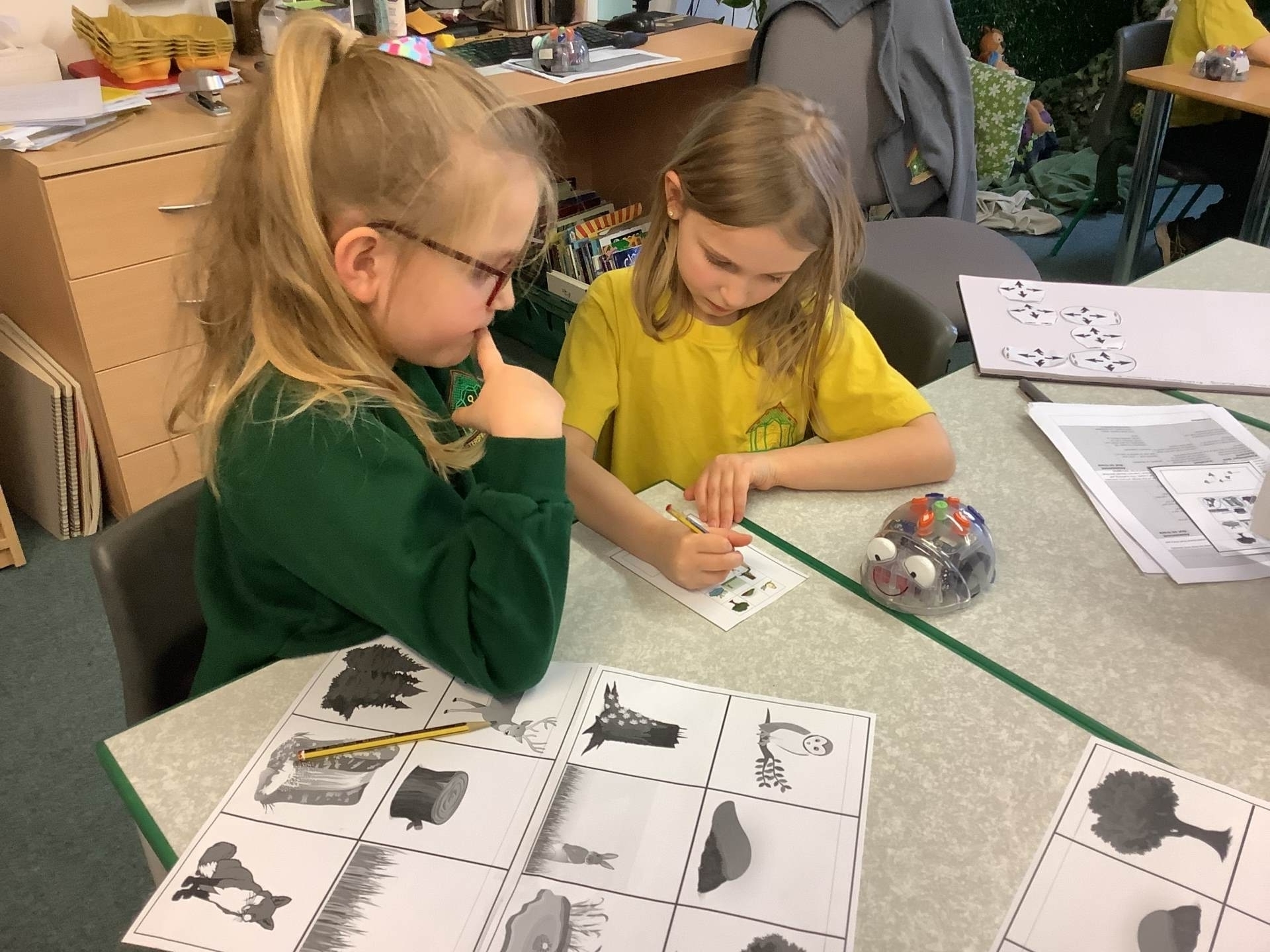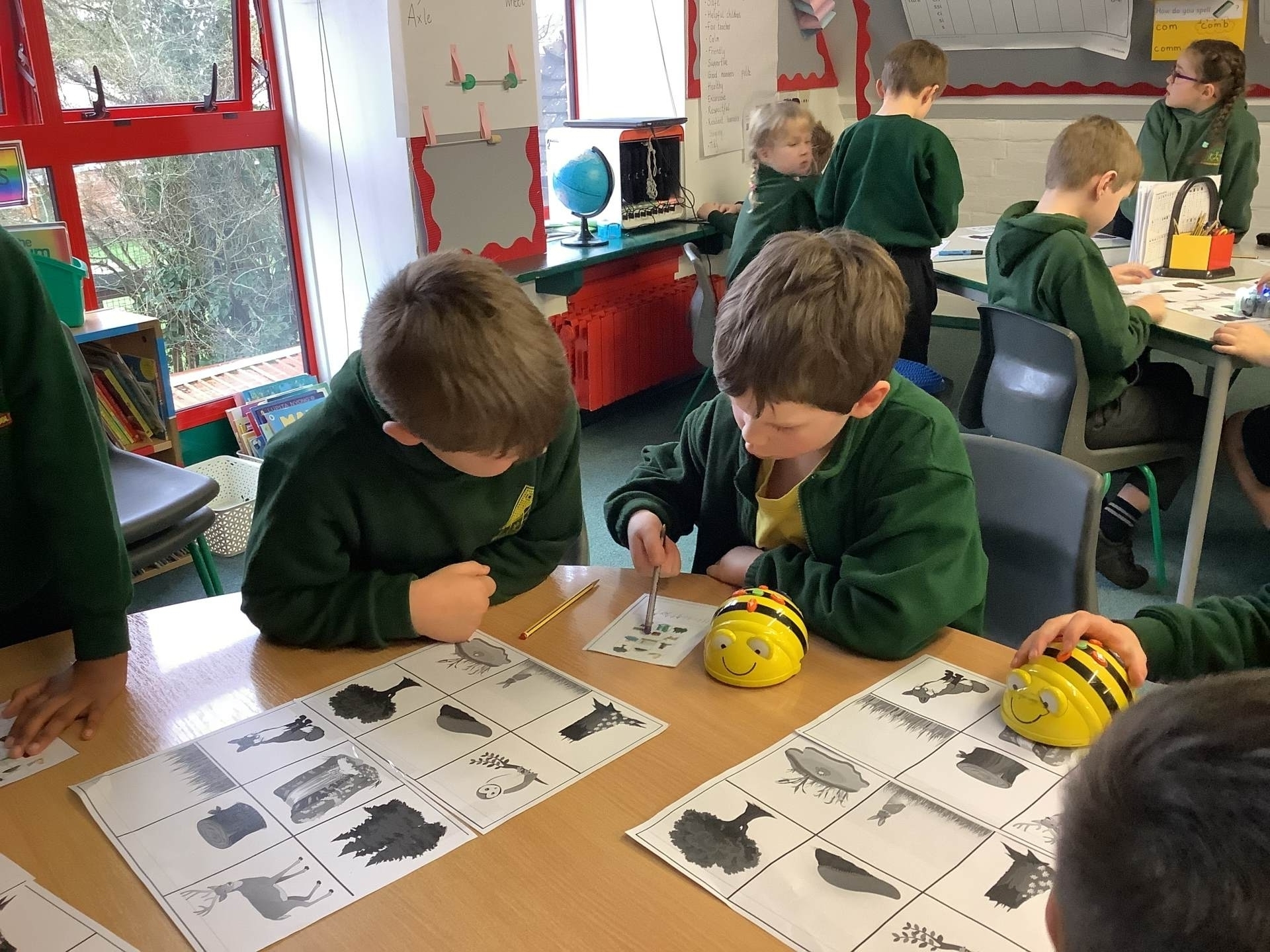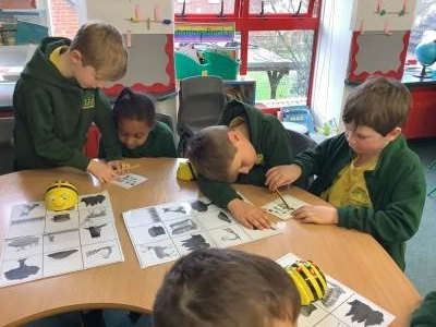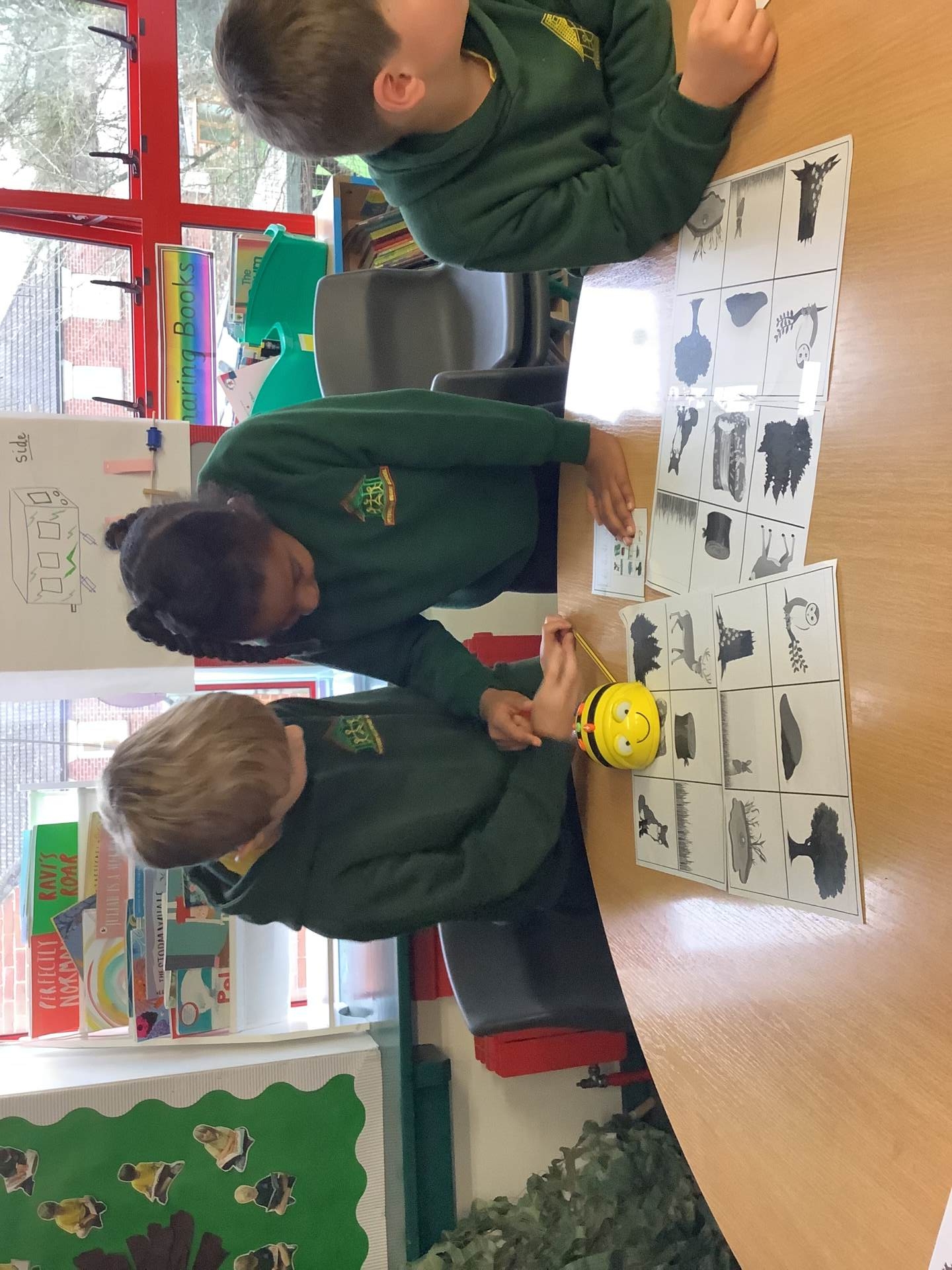 In Computing we have been making predictions. We drew an algorithm on paper using arrows before testing it out on the Bee-Bots.