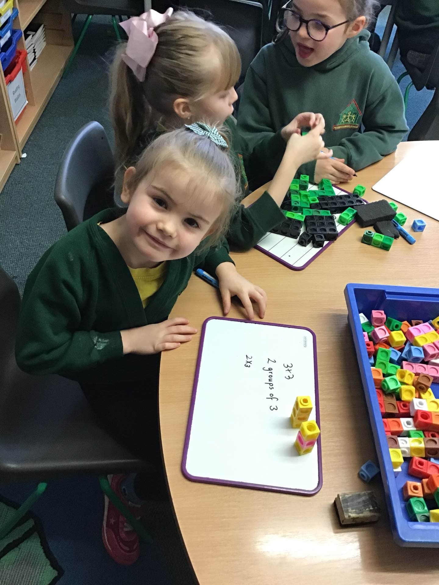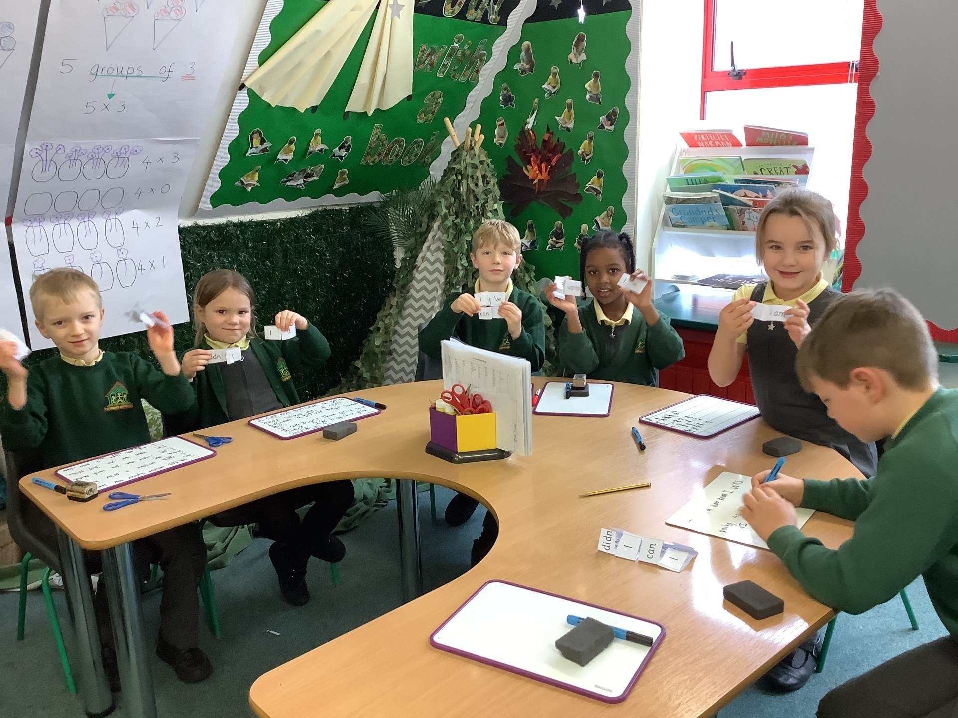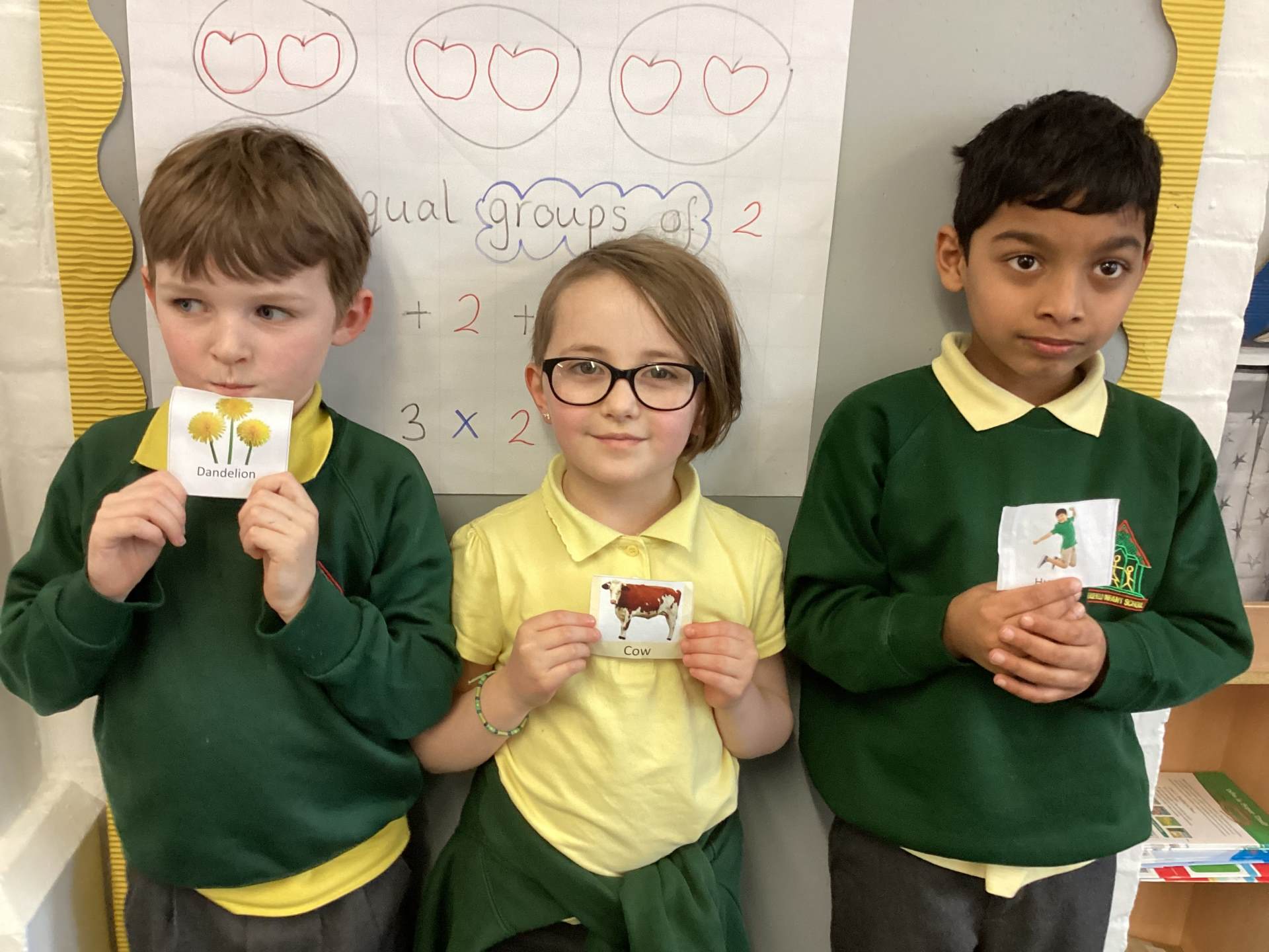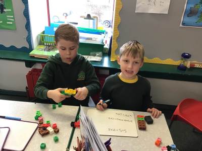 We were all very excited to start multiplication this week! We’ve learnt that multiplication is repeated addition and the X symbol means ‘groups of’. We have had fun making equal groups of things and then writing the multiplication expression. We’ve even used Cuisenaire rods to make number trains.