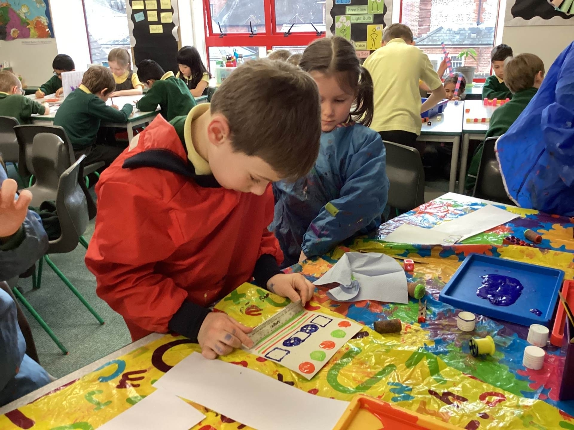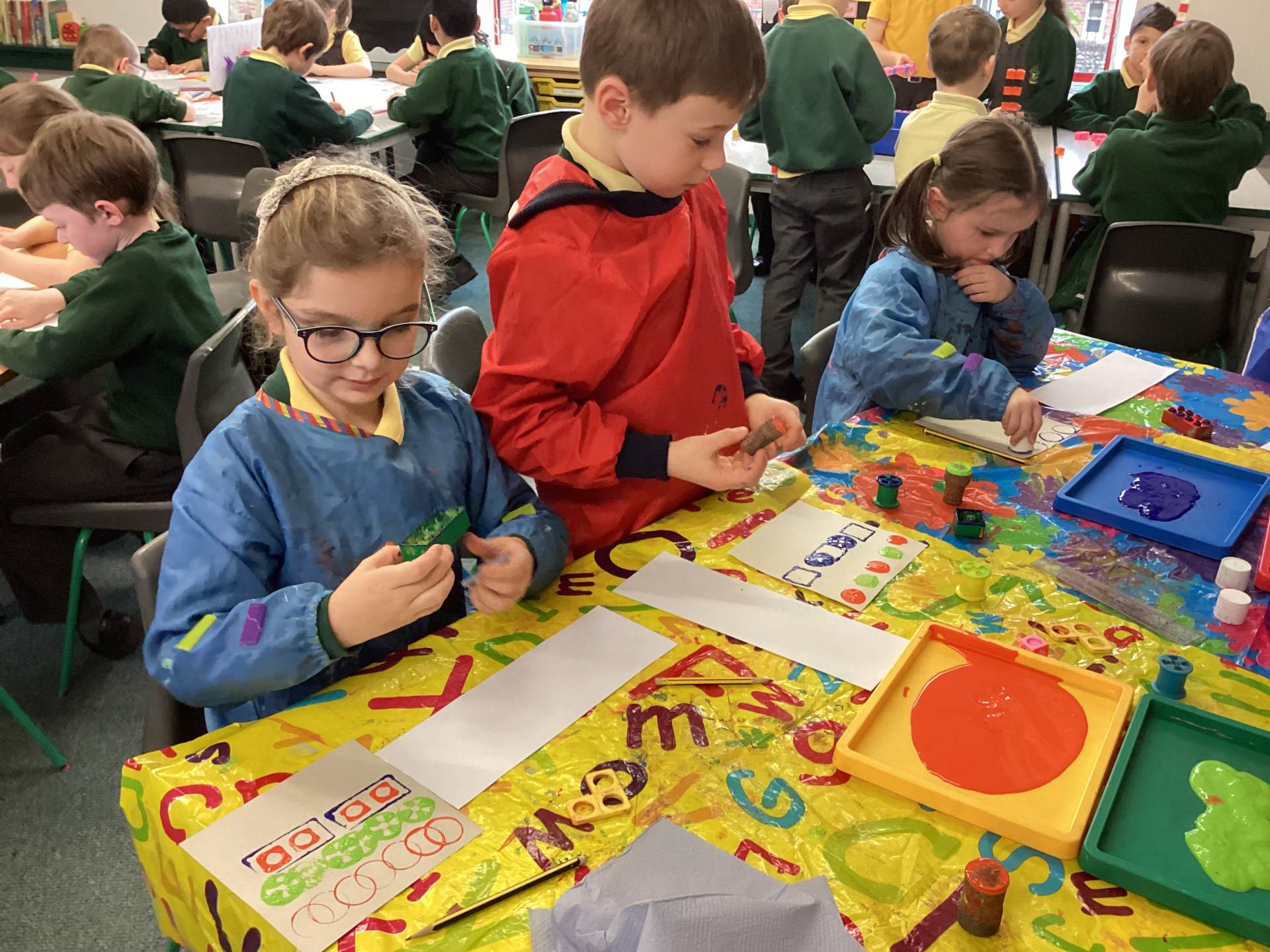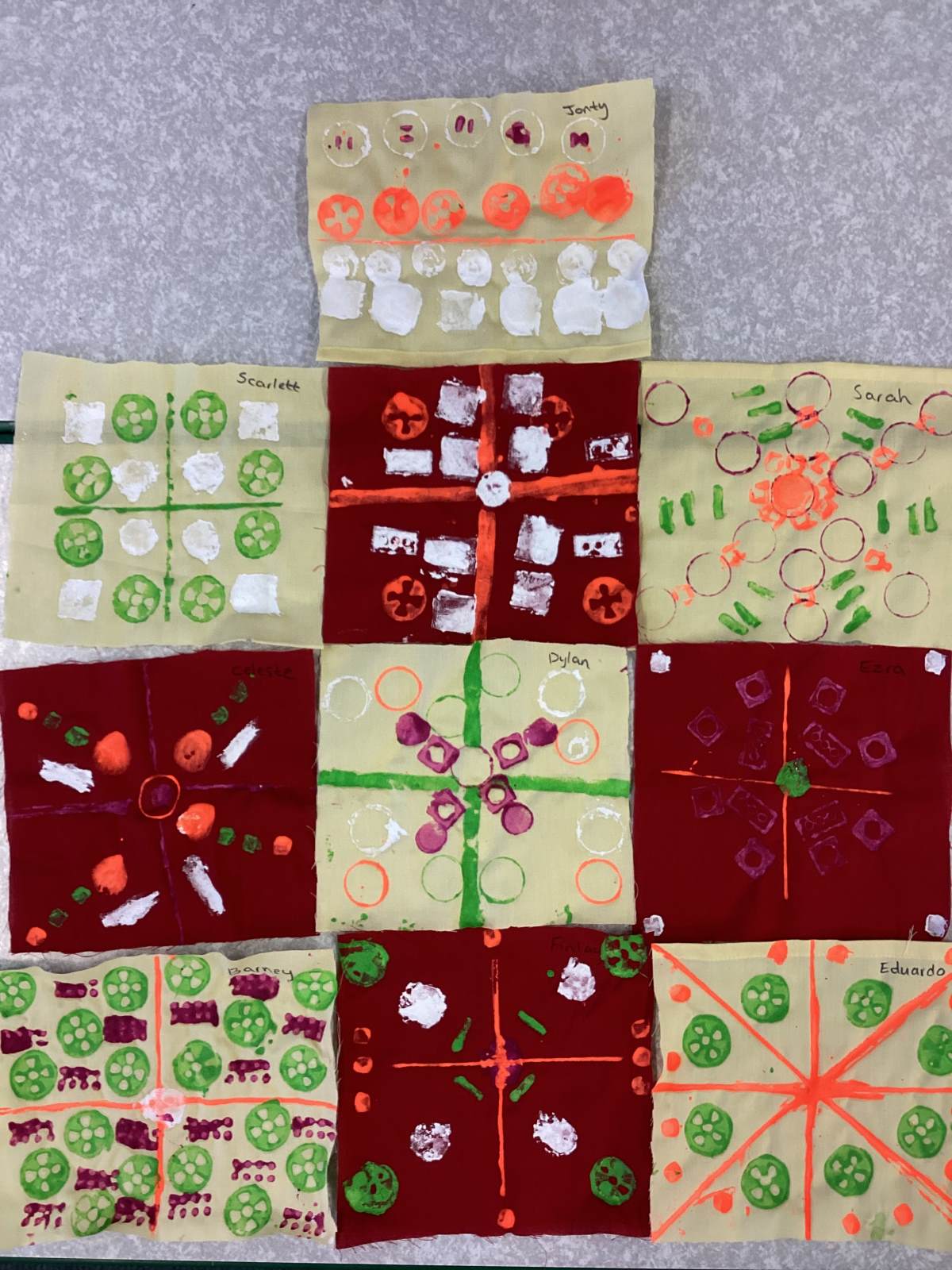 In Art we had the opportunity to print our repeating patterns on fabric with some fabulous results! We were really proud.