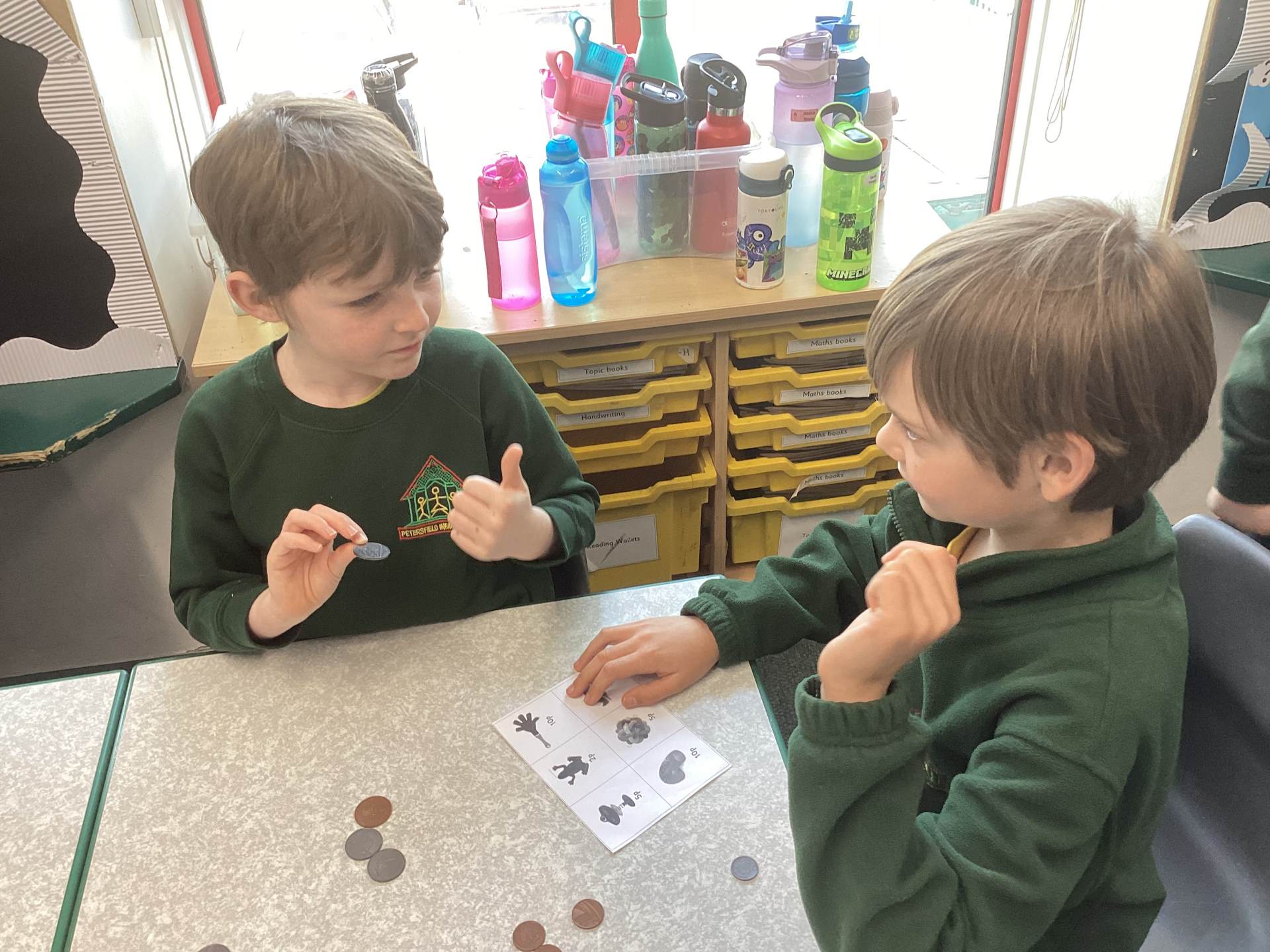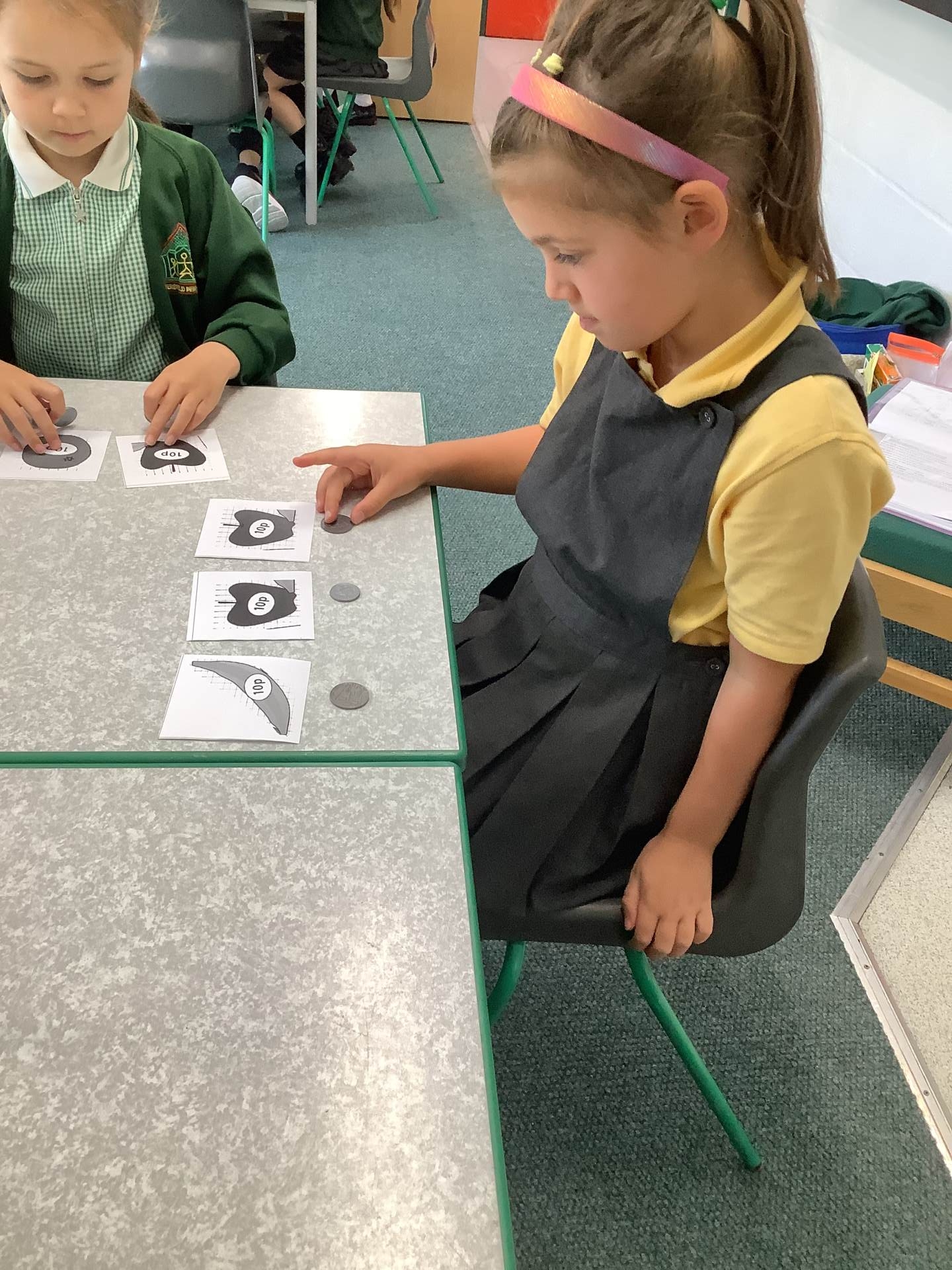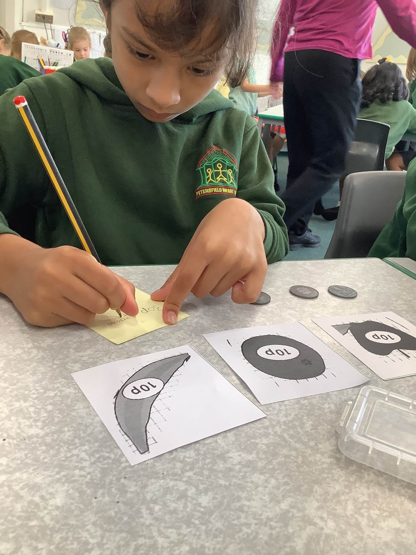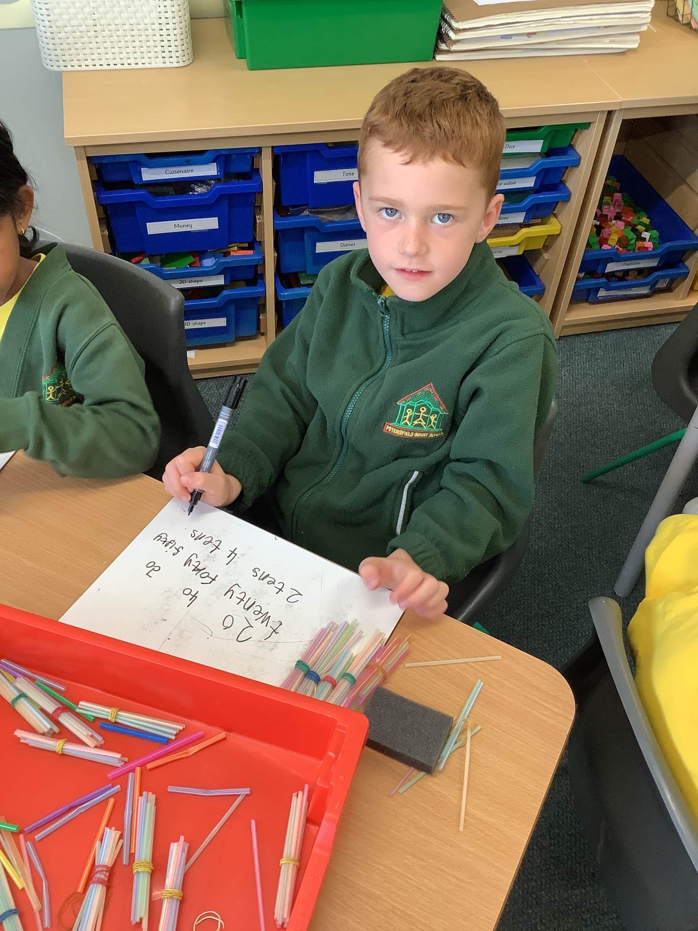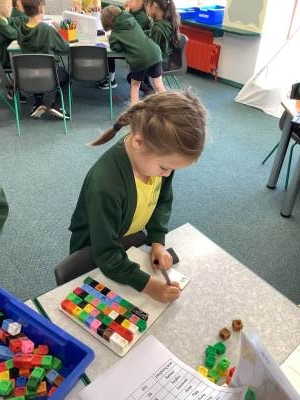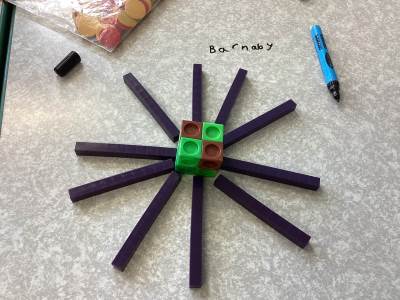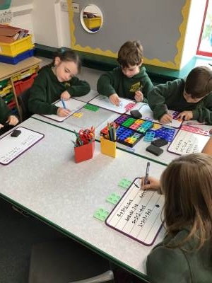 In Maths we have been thinking about what makes up a ten and our multiples of tens. We are starting to add and subtract a ten from a number.
